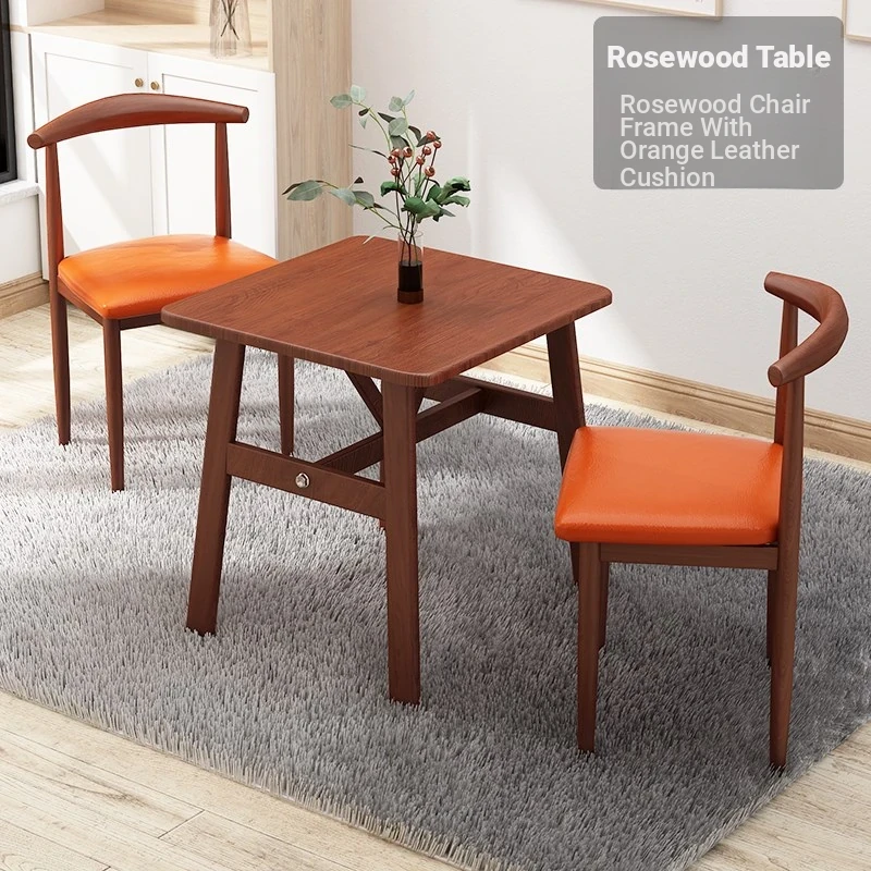 Safflower square table★Cushion in orange leather★One table and two chairs