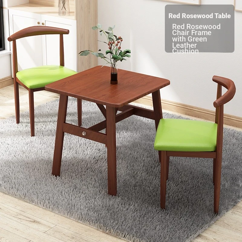 Safflower square table★Cushion in brown leather★One table and two chairs