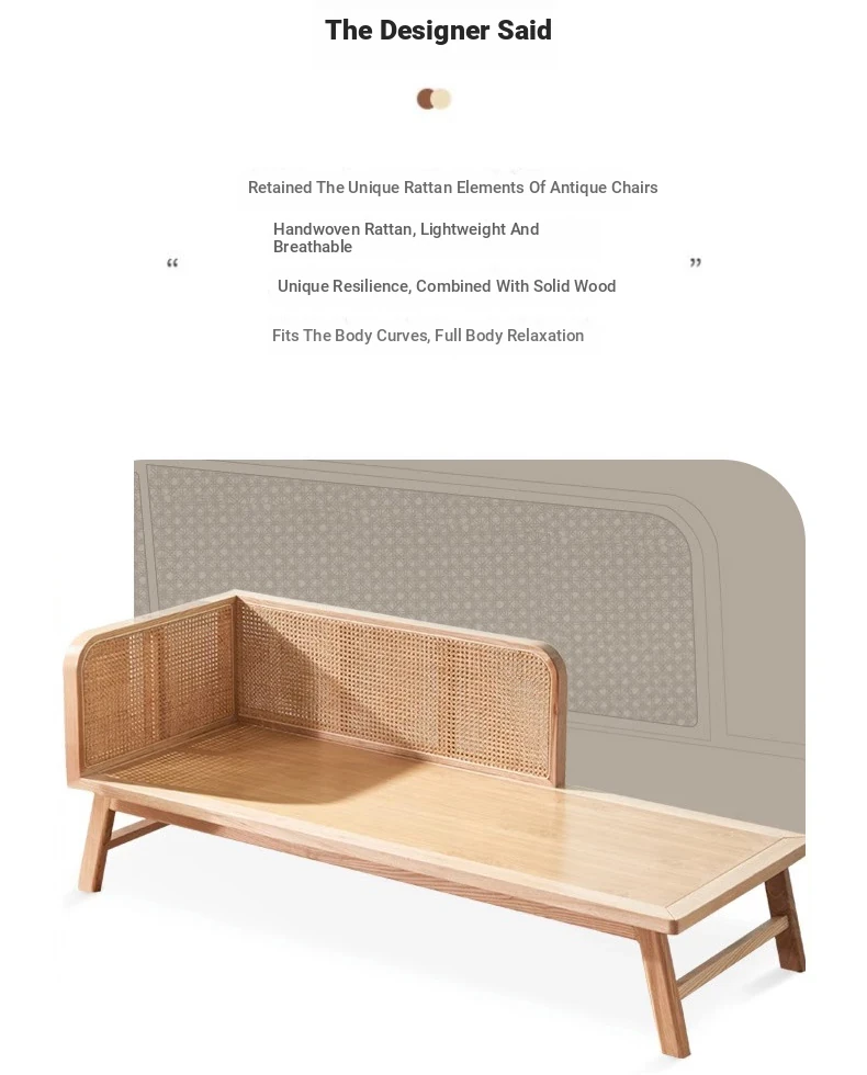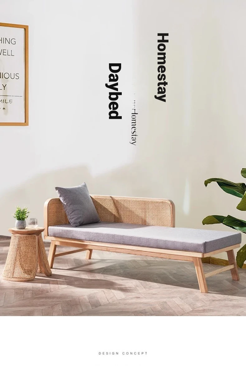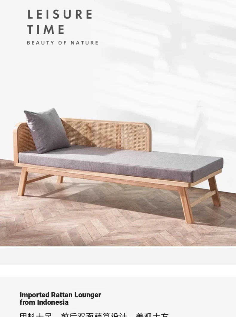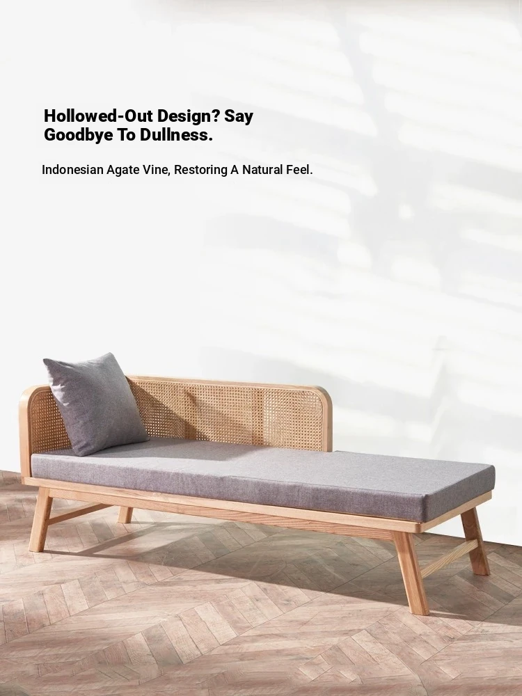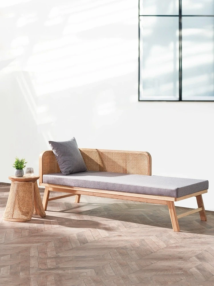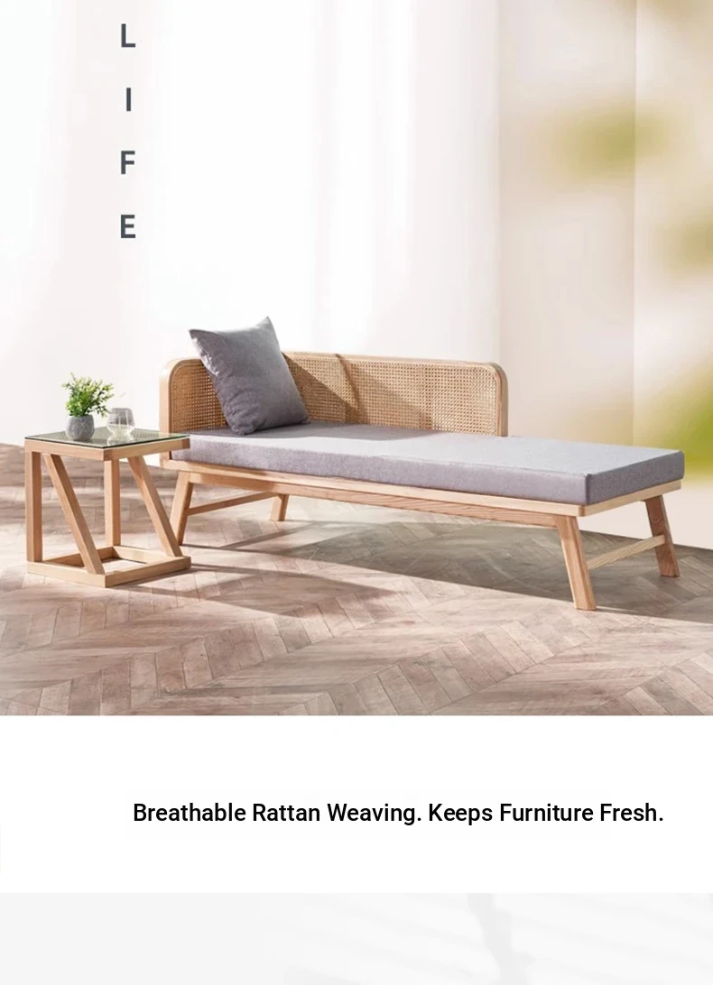 Nordic Style Solid Wood Chaise Lounge - Elegant Rattan Sofa for Living Room, Luxurious Daybed for Small Bedrooms, Perfect for Relaxation and Chic Décor