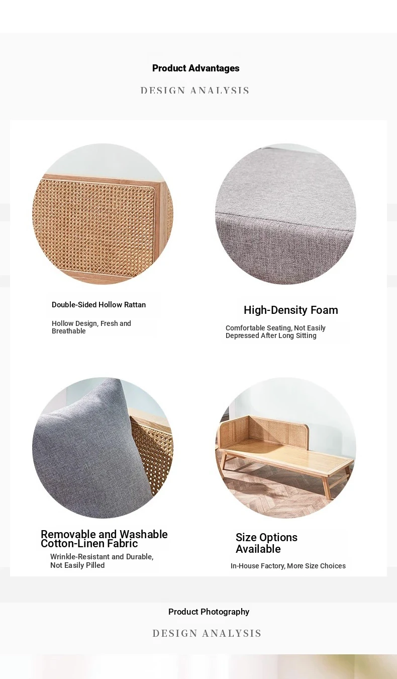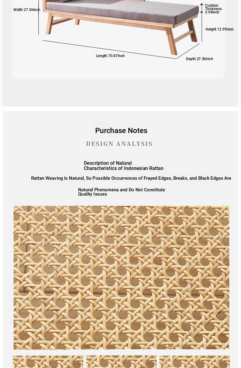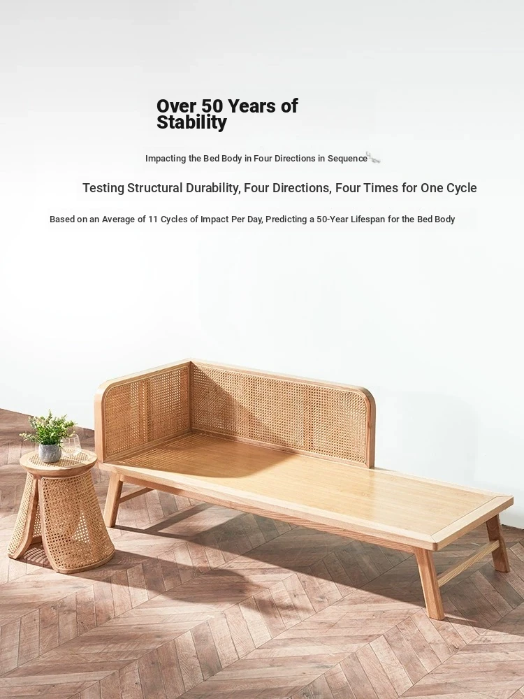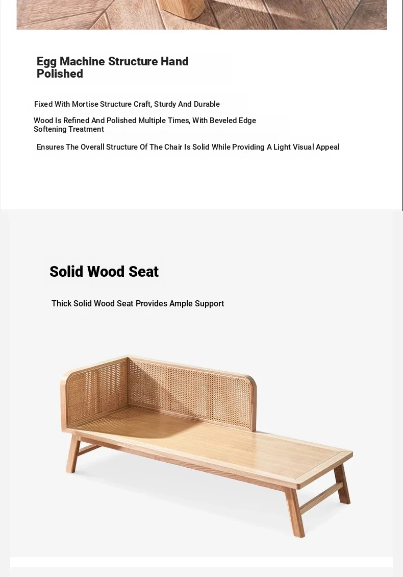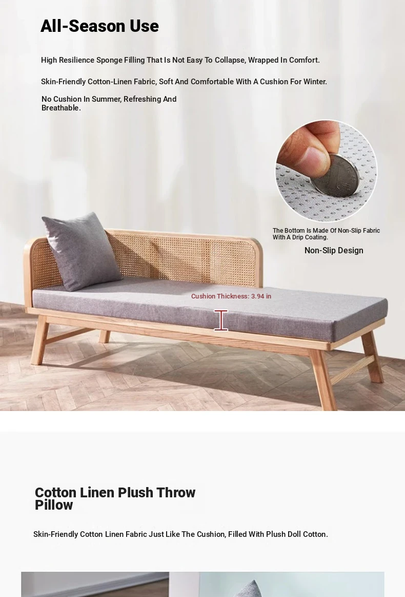 Nordic Style Solid Wood Chaise Lounge - Elegant Rattan Sofa for Living Room, Luxurious Daybed for Small Bedrooms, Perfect for Relaxation and Chic Décor