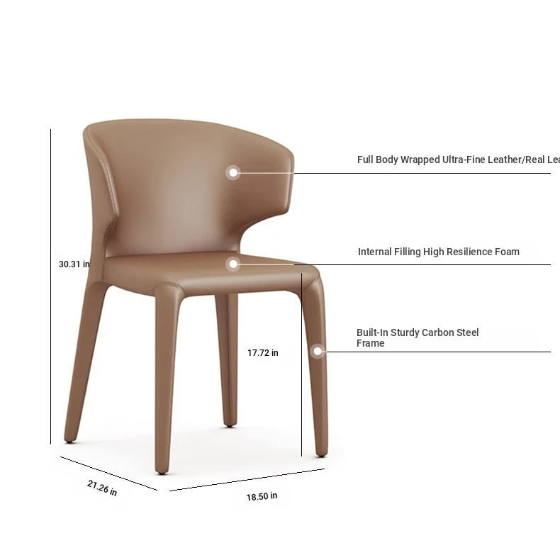 Nordic Ultra-Fine Leather Luxury Dining Chair - Trendy Minimalist Designer Armchair for Home, Perfect for Relaxation and Style