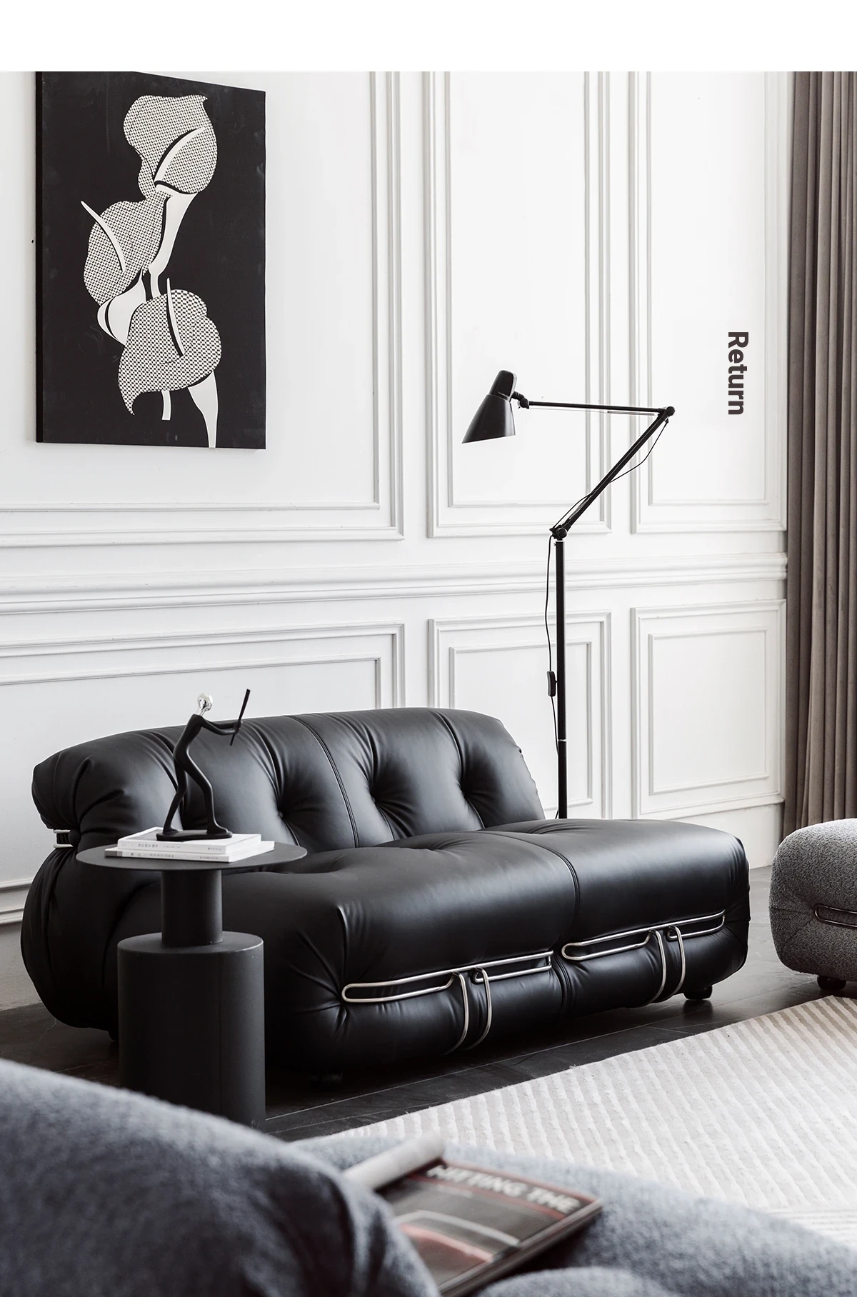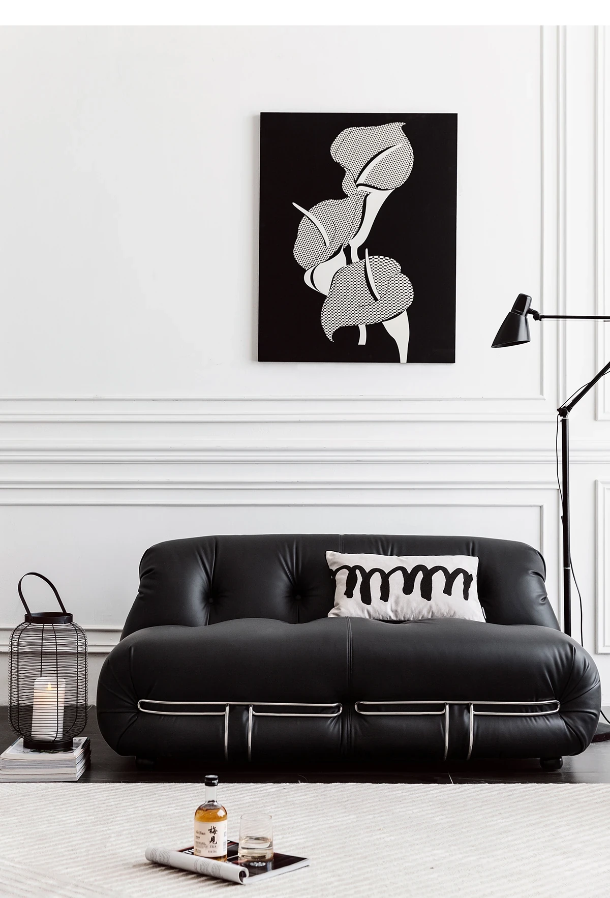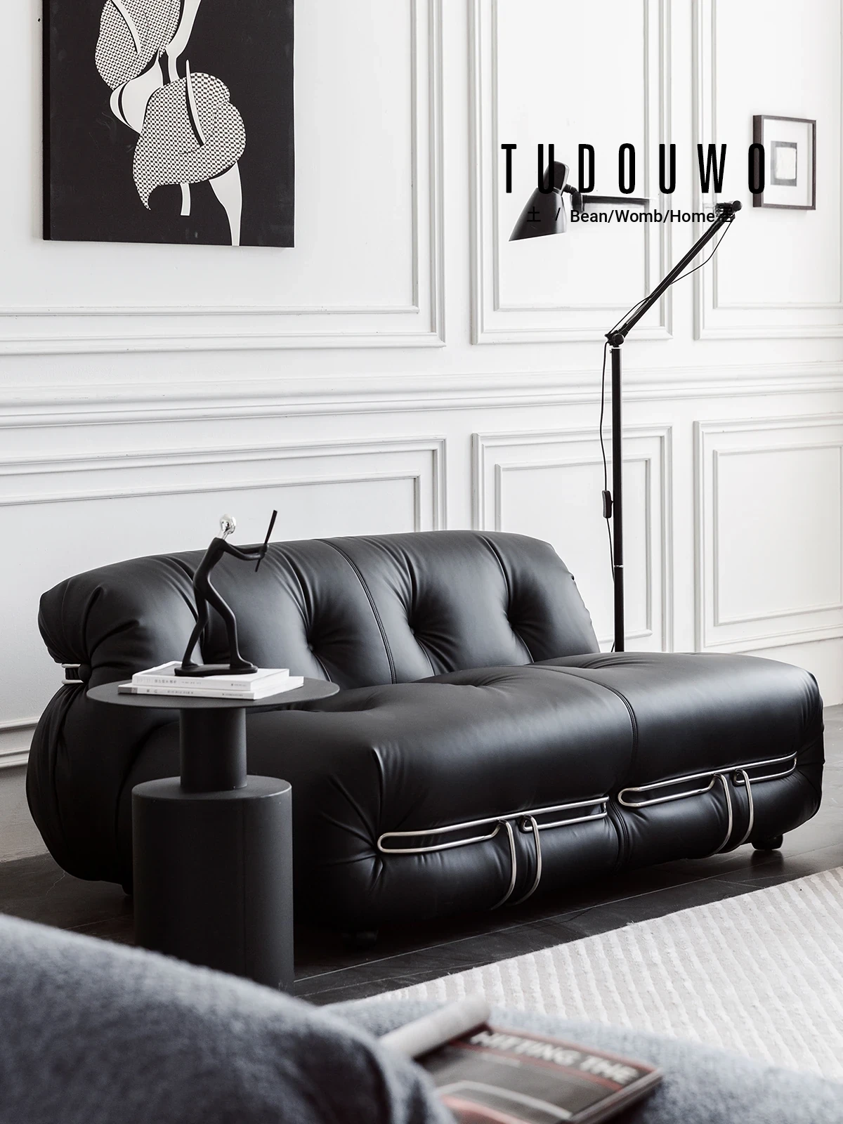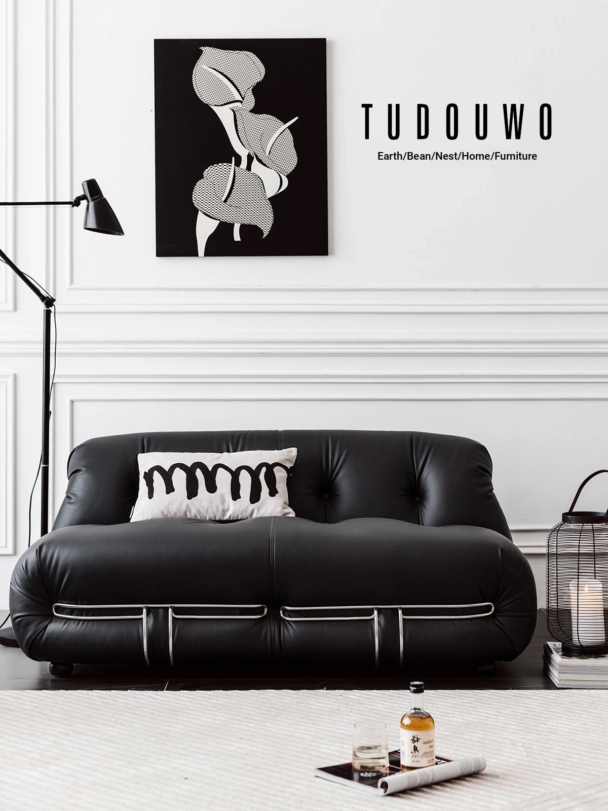 Potato Nest Bauhaus-Inspired Hippo Designer Black Genuine Leather Steel-Tooth Lamb Fleece Floor Lazy Sofa - Ultimate Comfort for Modern Living Spaces
