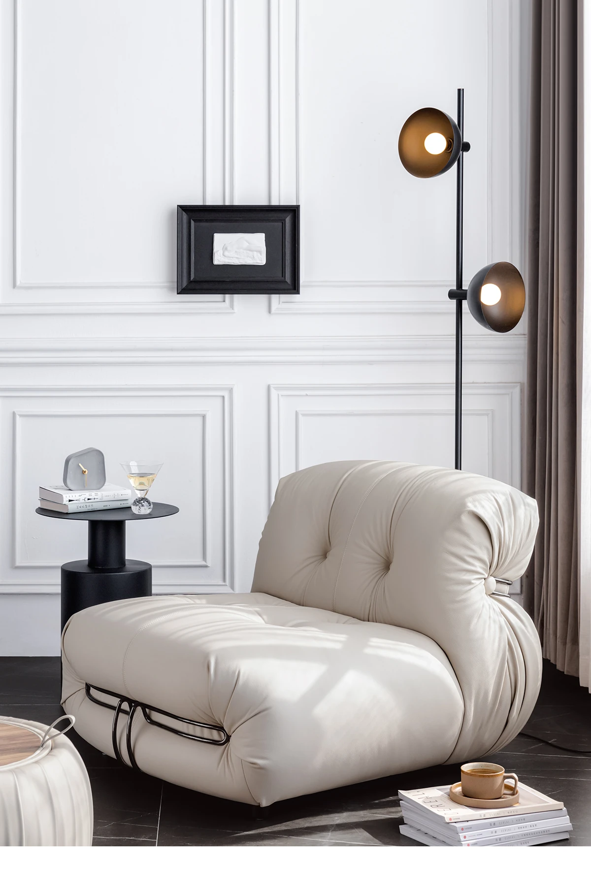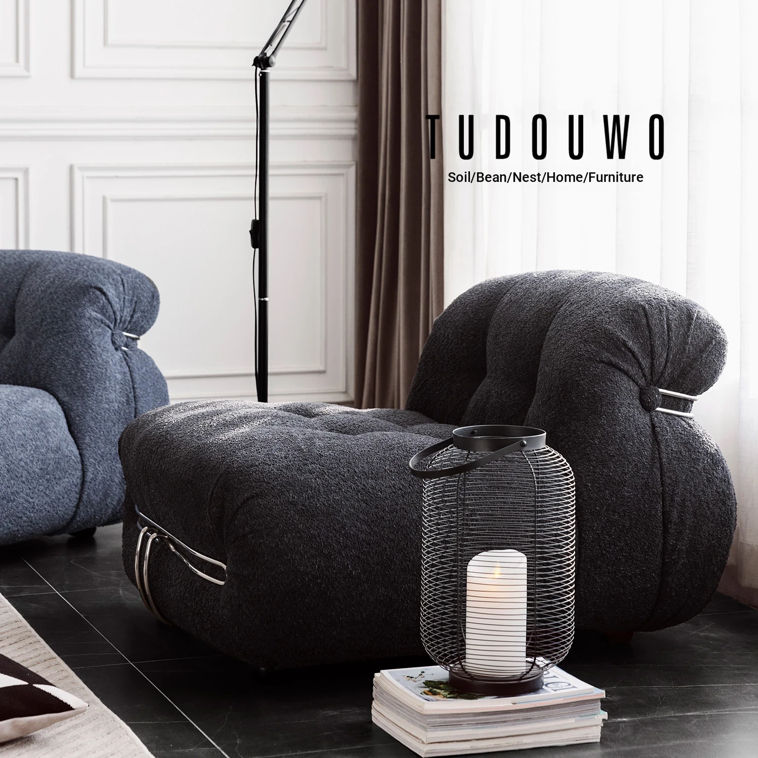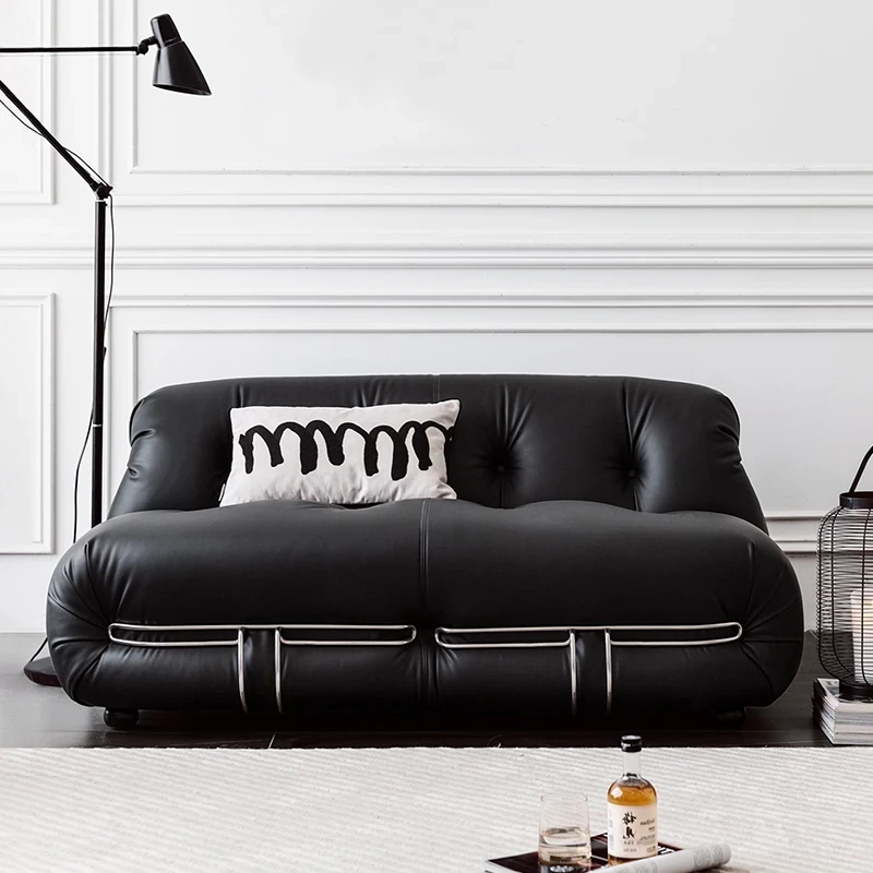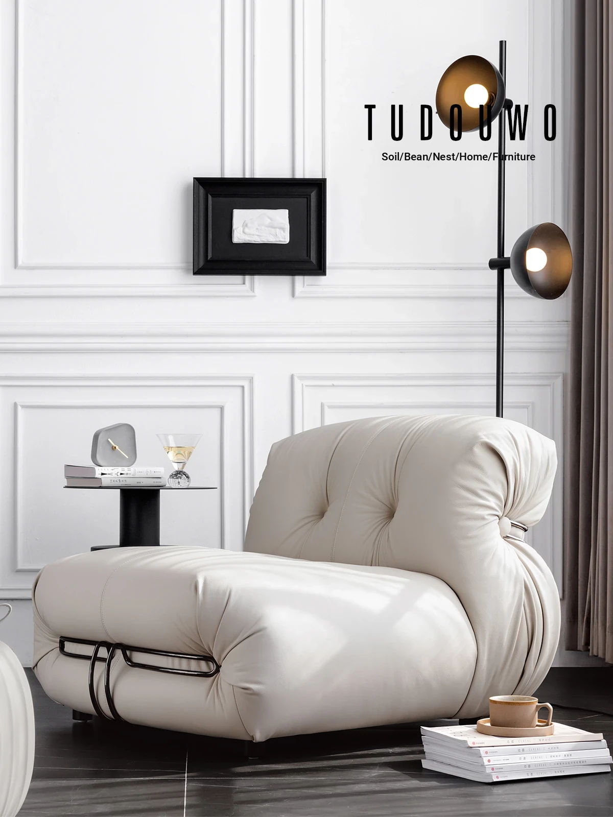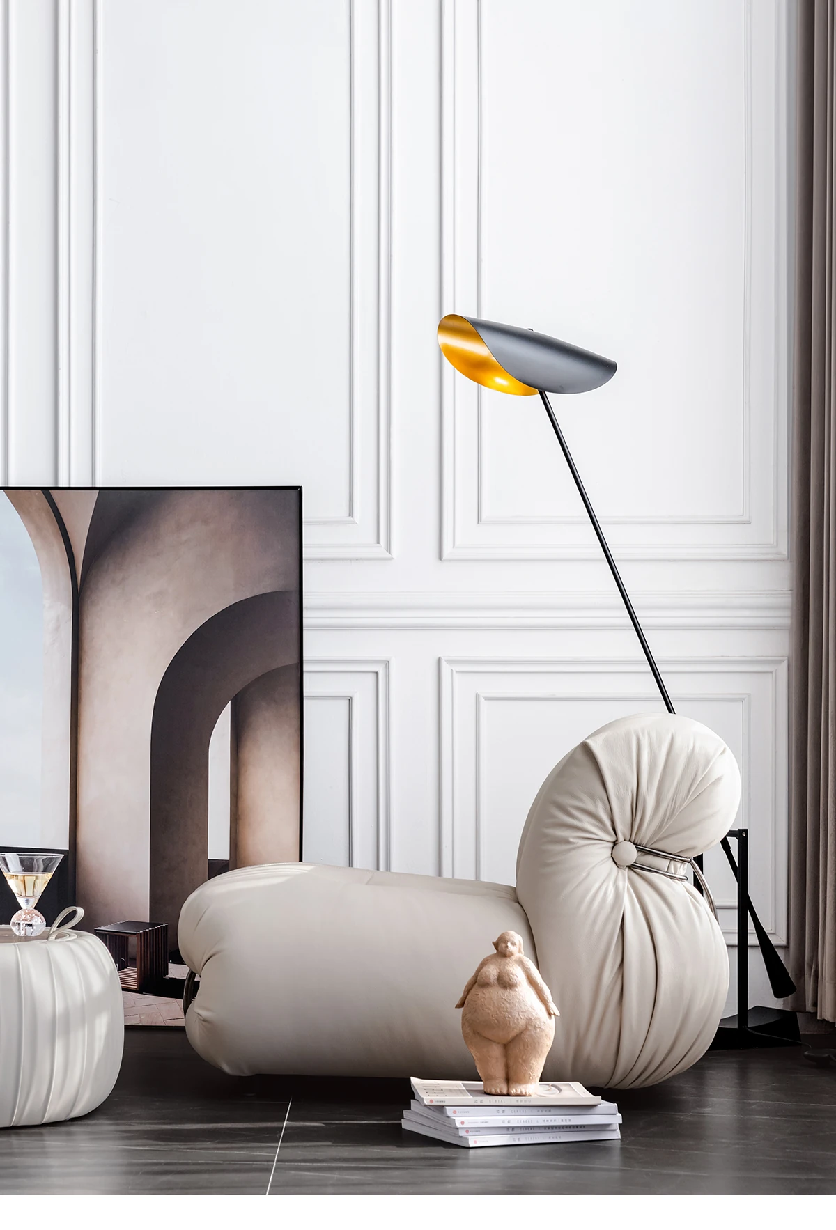 Potato Nest Bauhaus-Inspired Hippo Designer Black Genuine Leather Steel-Tooth Lamb Fleece Floor Lazy Sofa - Ultimate Comfort for Modern Living Spaces