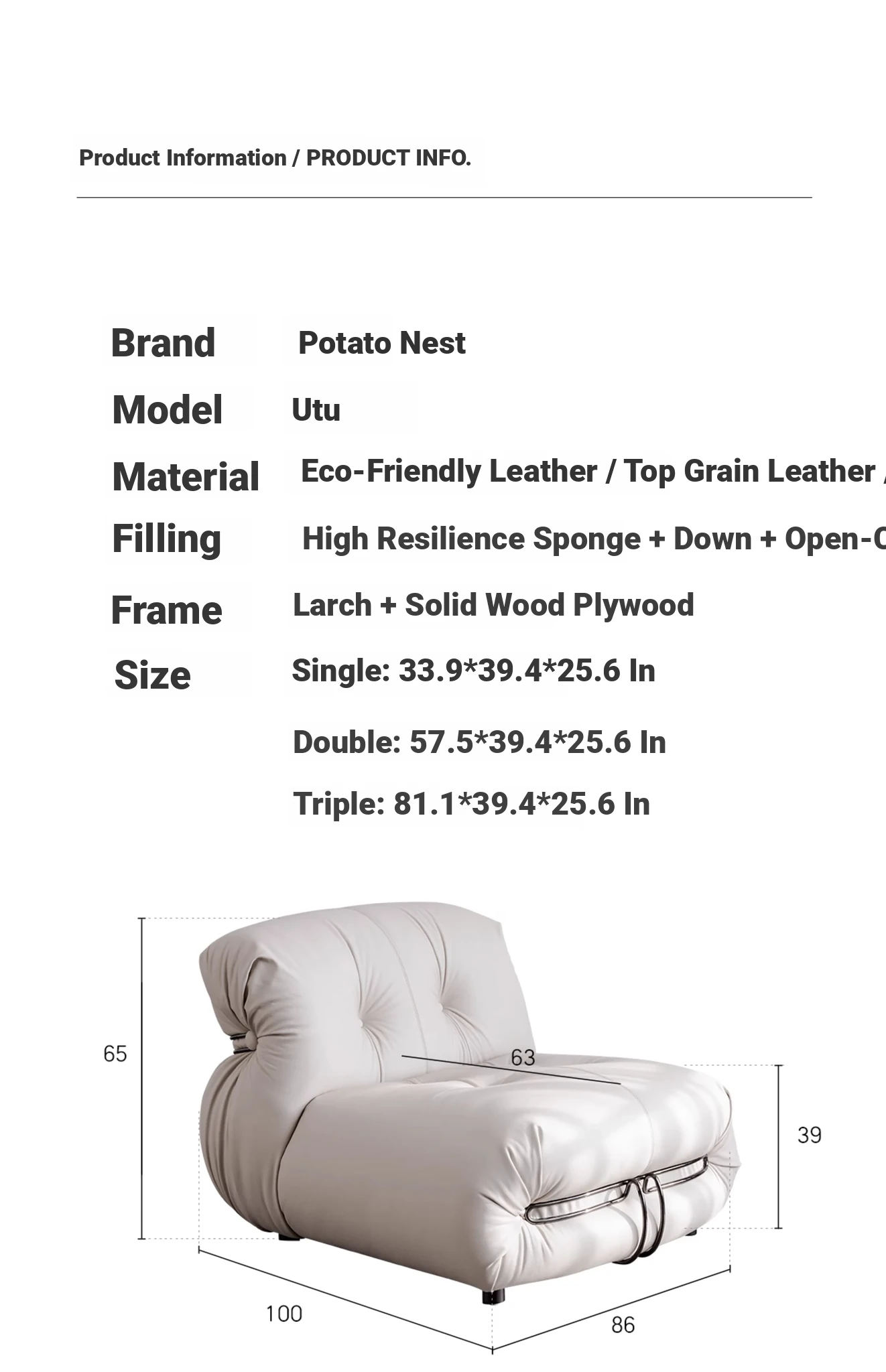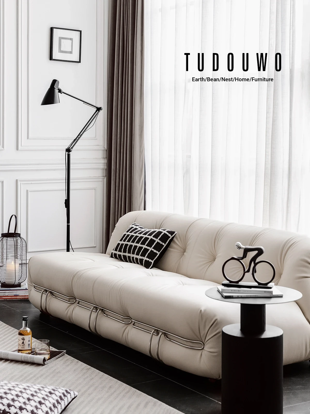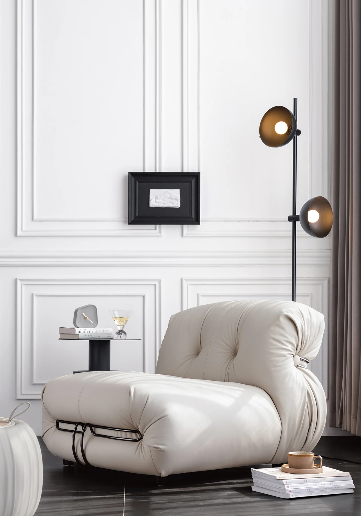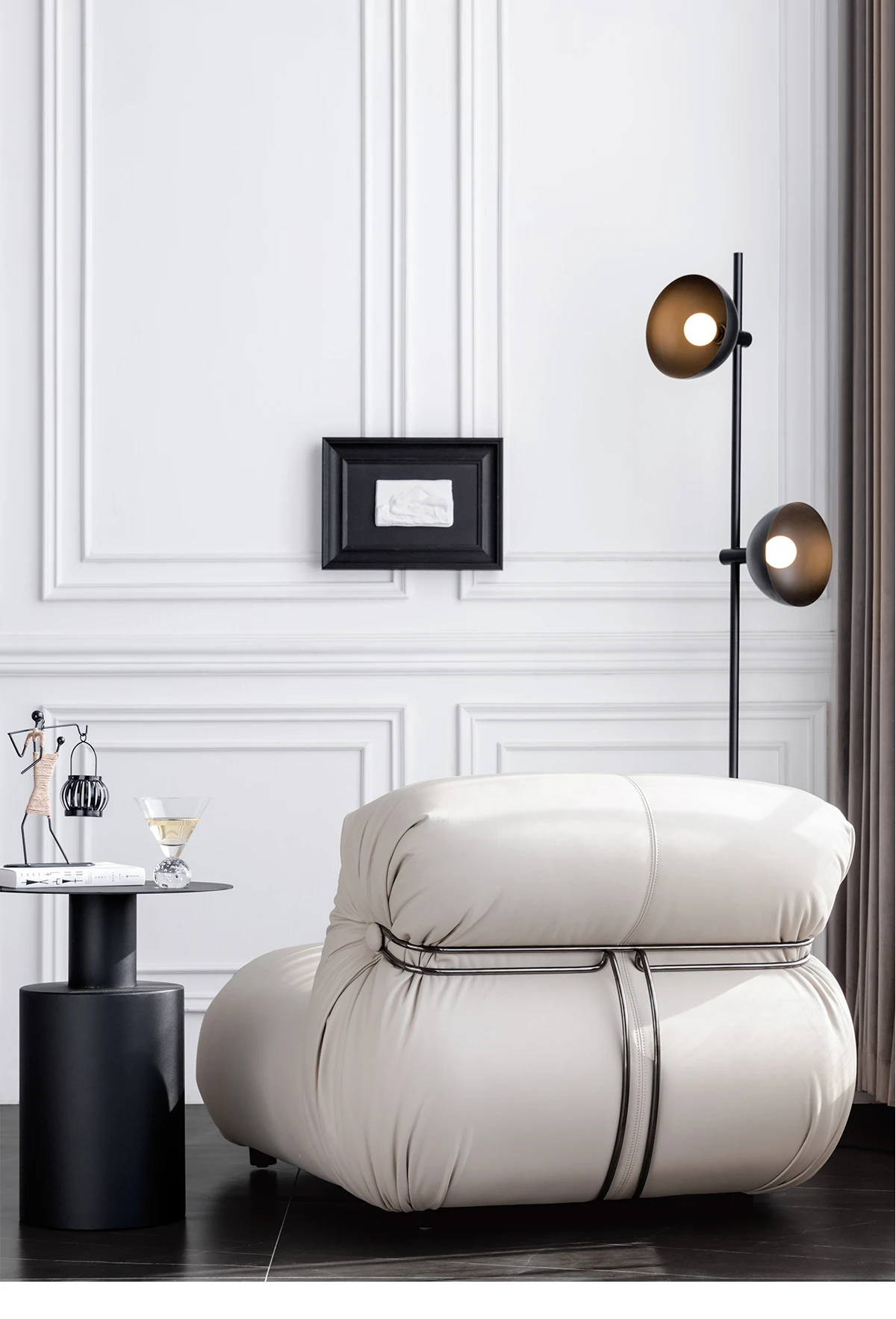 Potato Nest Bauhaus-Inspired Hippo Designer Black Genuine Leather Steel-Tooth Lamb Fleece Floor Lazy Sofa - Ultimate Comfort for Modern Living Spaces