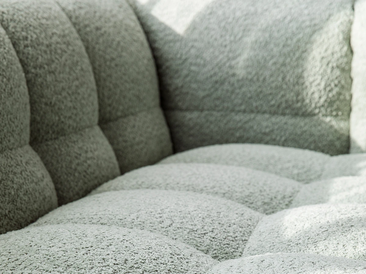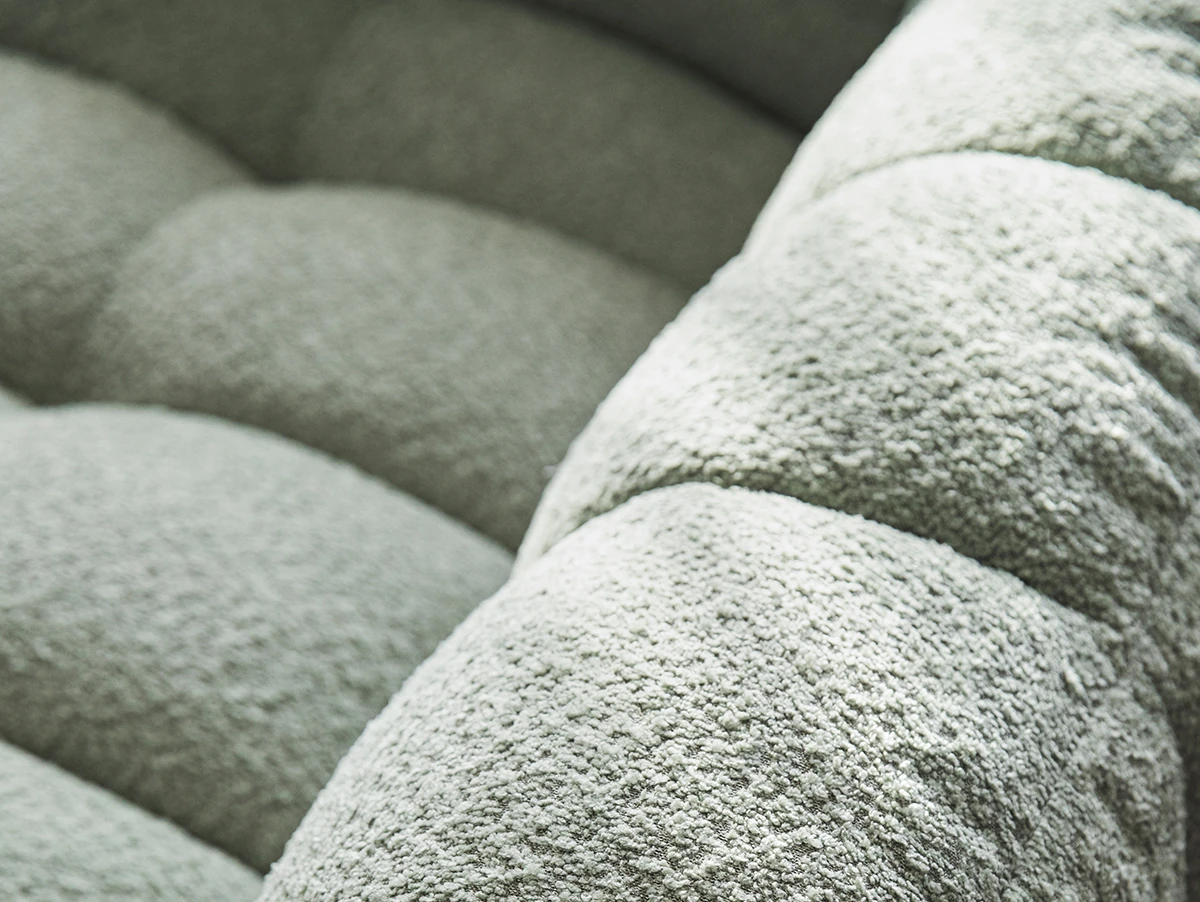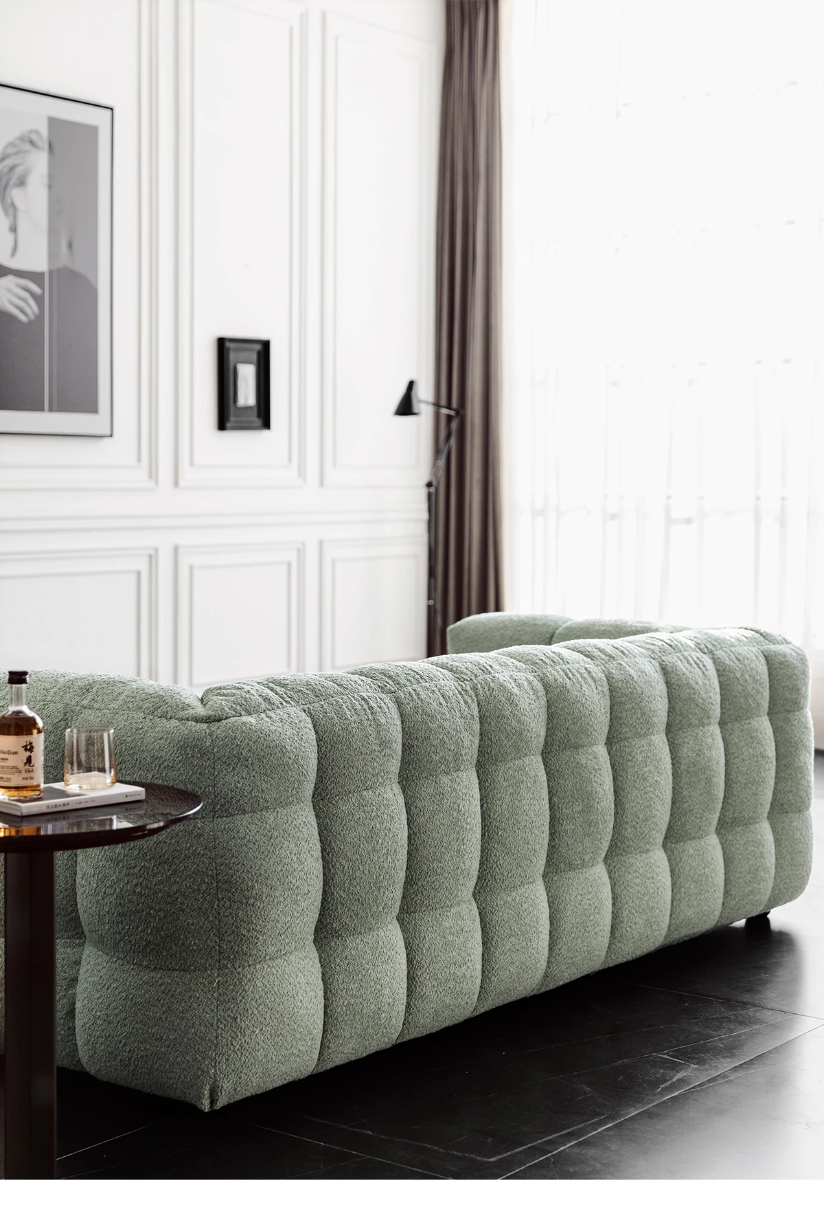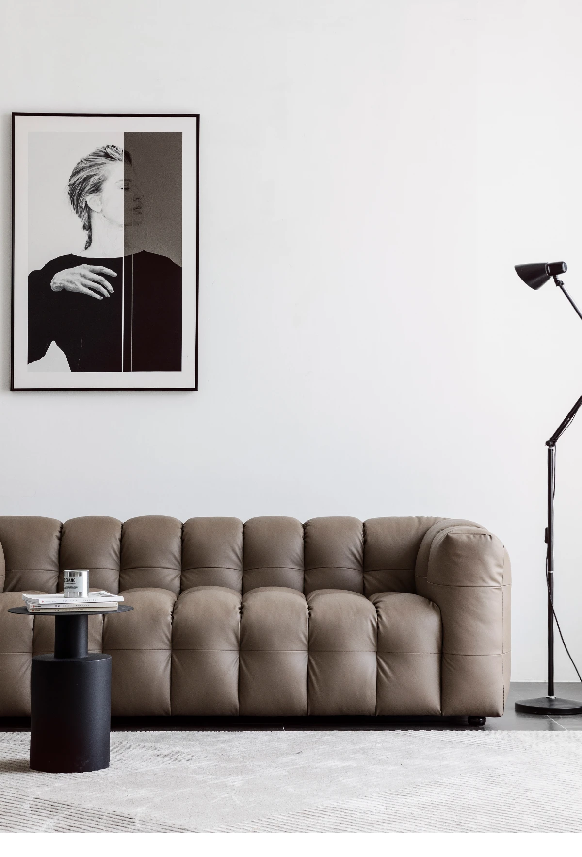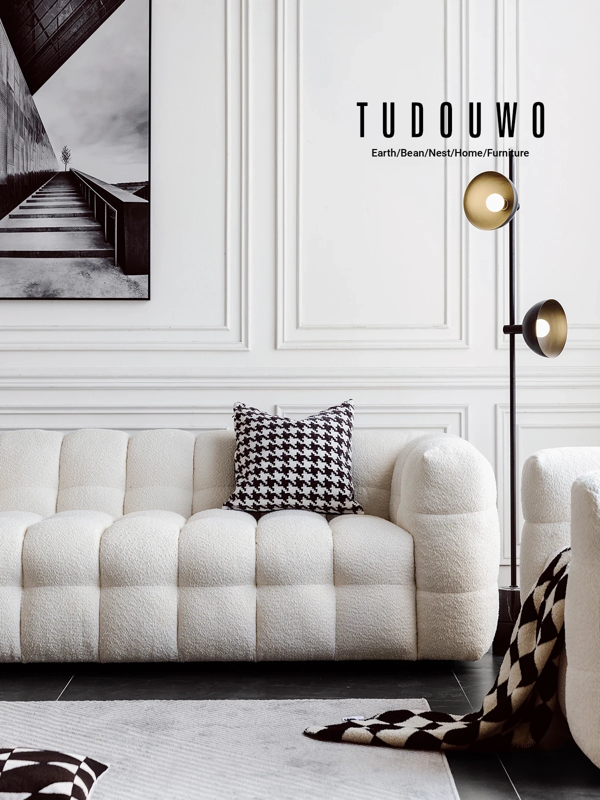 Potato Nest: Creamy White Boba Fabric Sofa for Three, Minimalist Tofu-Block Design; Black Leather Armchair for One – Perfect Blend of Comfort and Style!