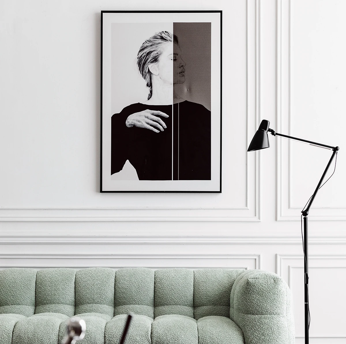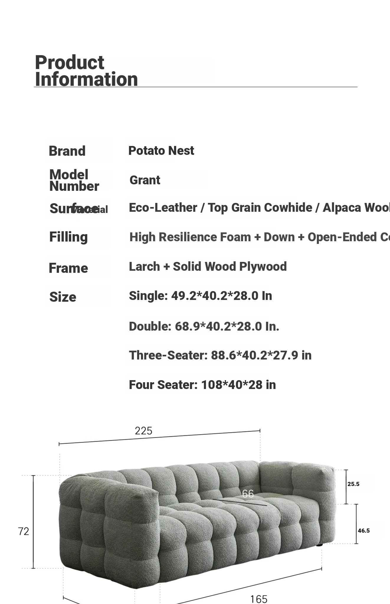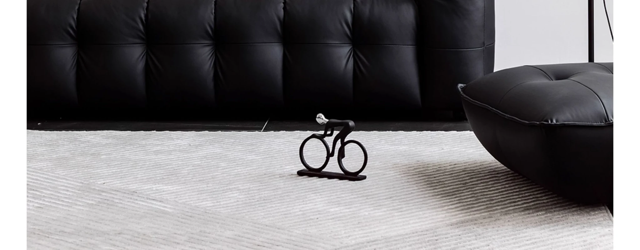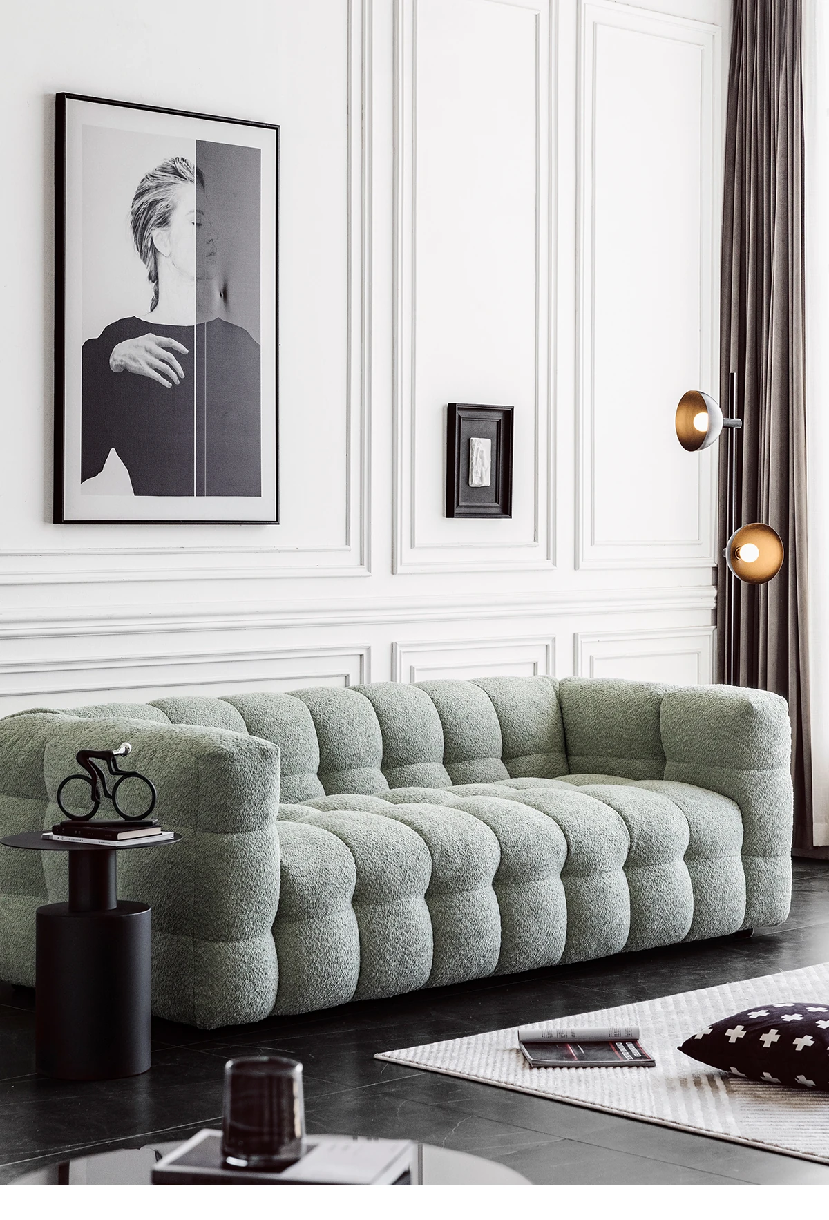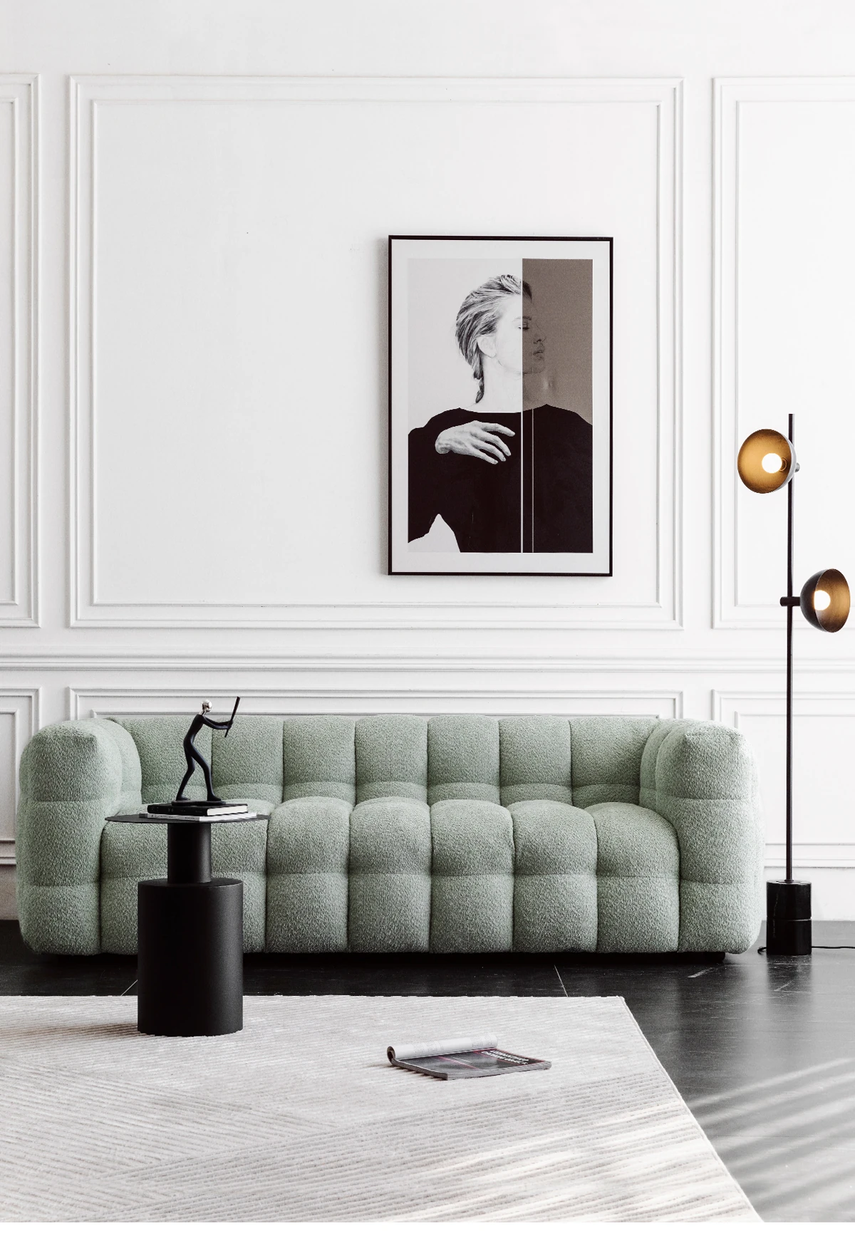 Potato Nest: Creamy White Boba Fabric Sofa for Three, Minimalist Tofu-Block Design; Black Leather Armchair for One – Perfect Blend of Comfort and Style!