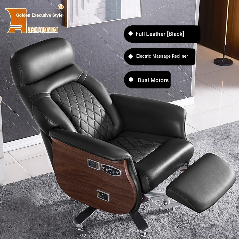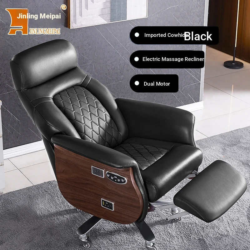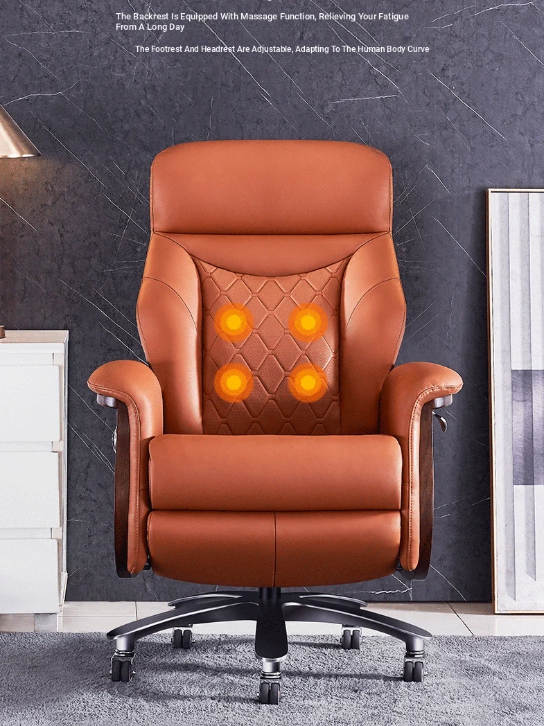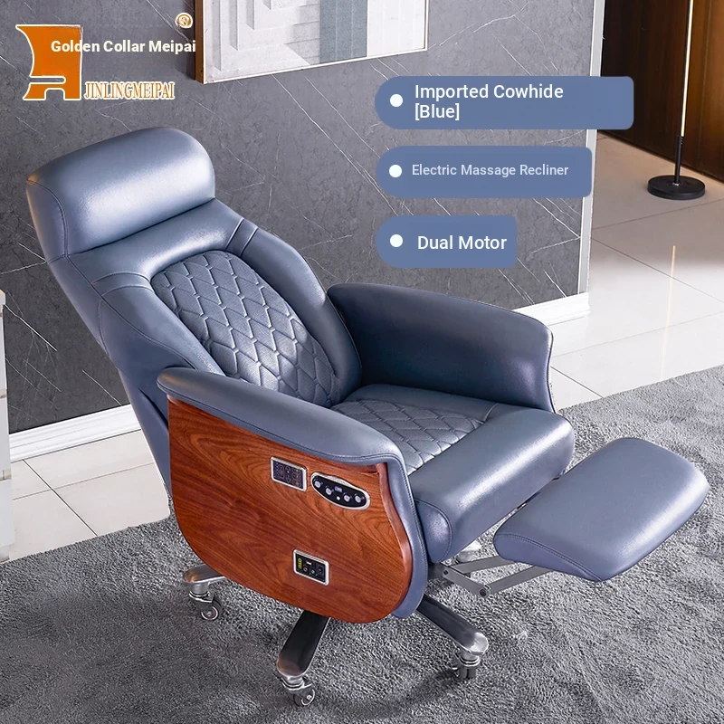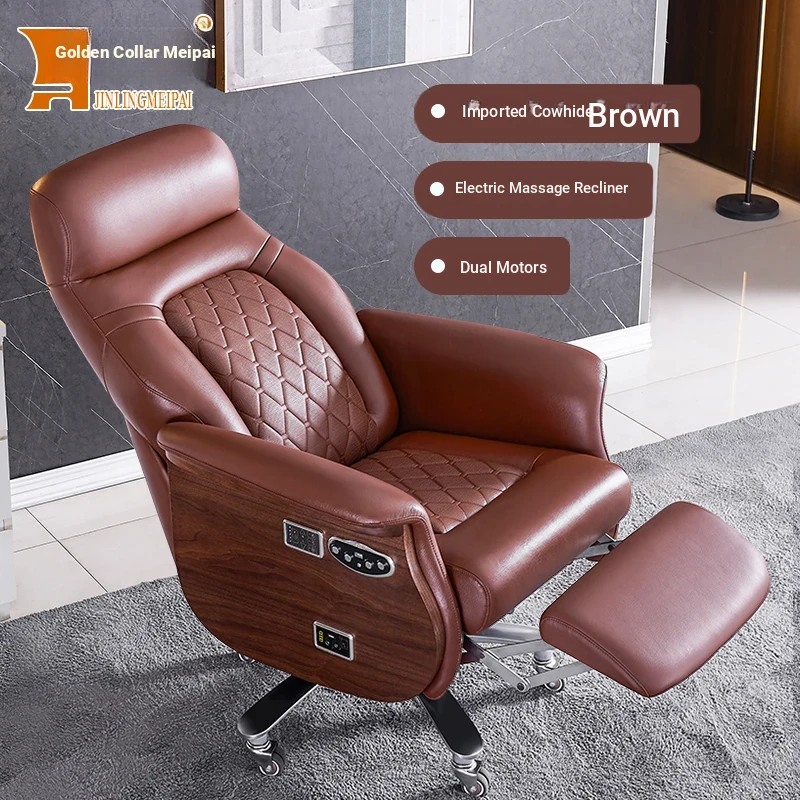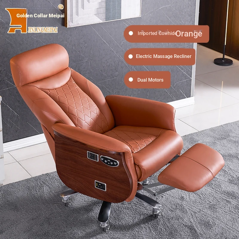Premium Imported Genuine Leather Executive Reclining Massage Chair with Heating - Luxurious Cowhide Office Sofa for Home and Office Use