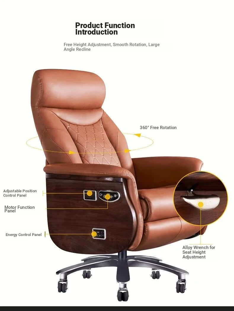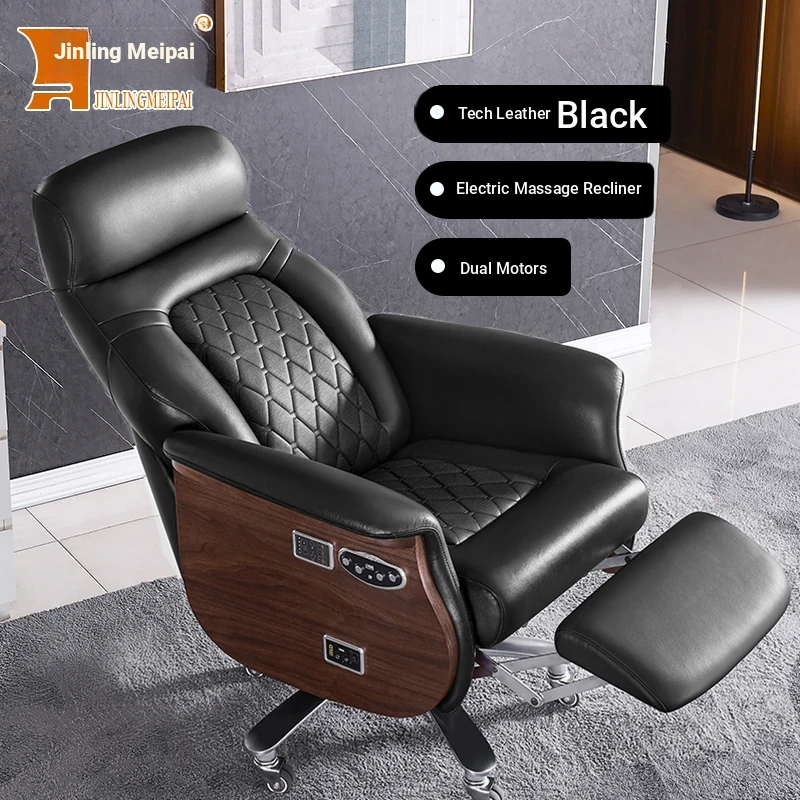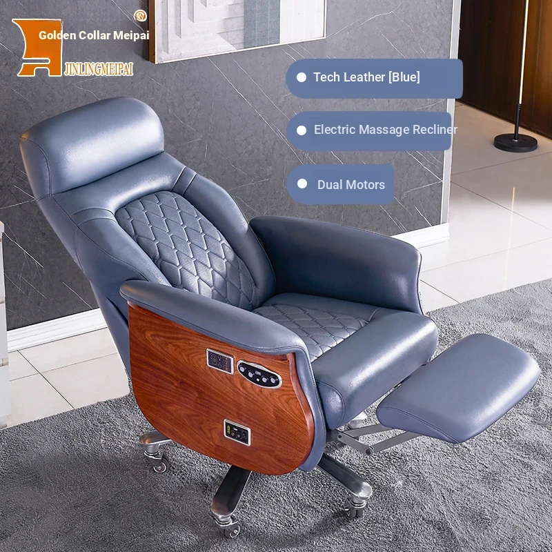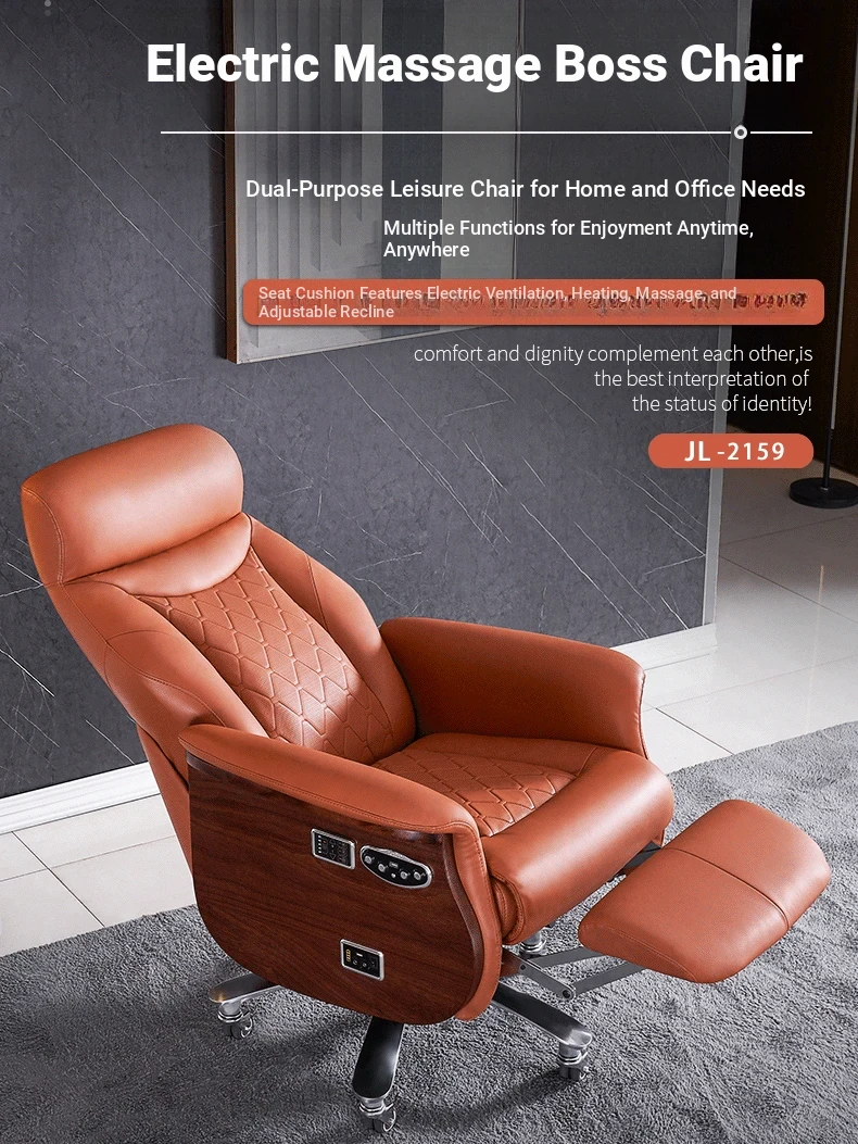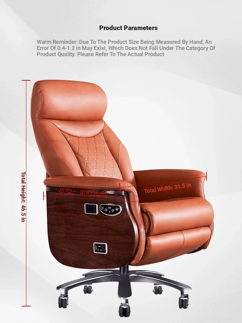 Premium Imported Genuine Leather Executive Reclining Massage Chair with Heating - Luxurious Cowhide Office Sofa for Home and Office Use