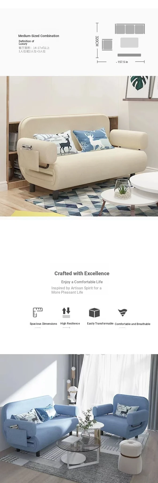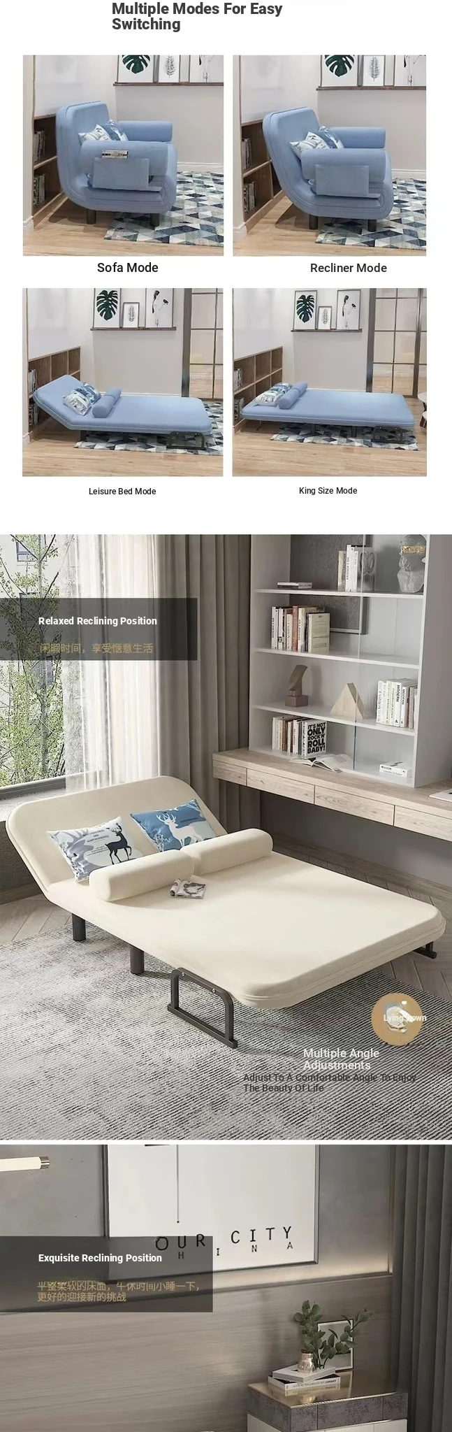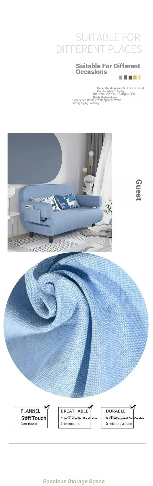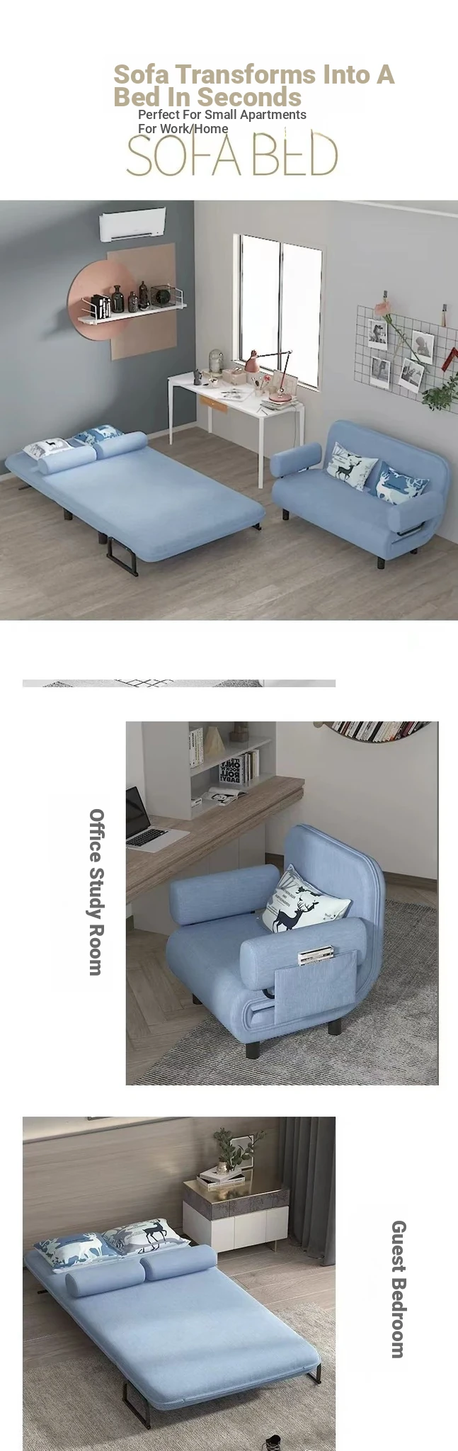 Q8 Versatile Sofa Bed - Foldable and Multi-Functional for Balconies, Ideal for Small Spaces, Trendy Design for Single and Double Use, Stylish Fabric Upholstery