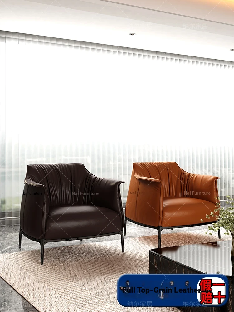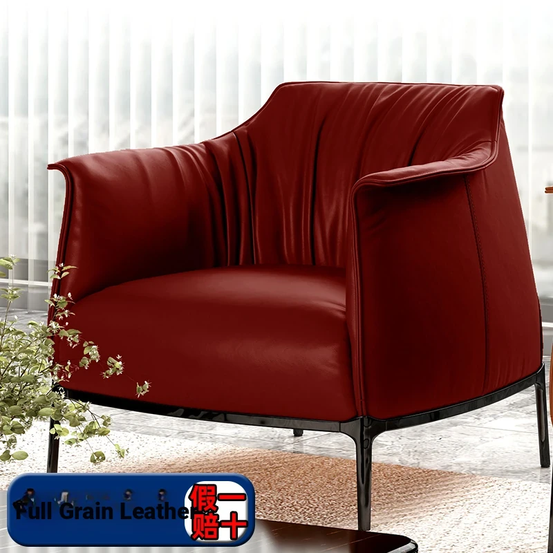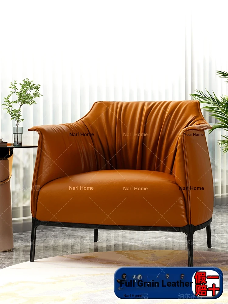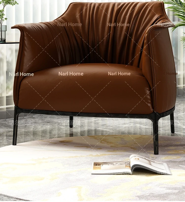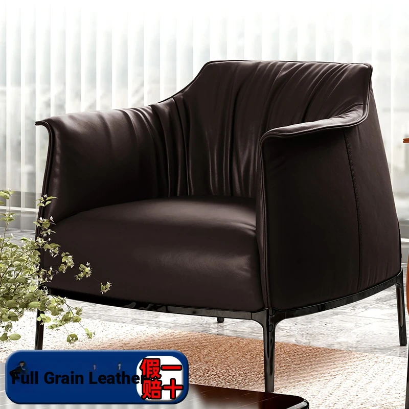 Retro Italian Style Single Sofa - Designer Leather Accent Chair for Balcony, Living Room, and Master Bedroom - Perfect for Relaxation and Chic Decor!