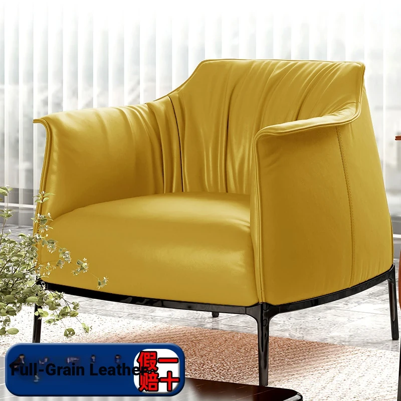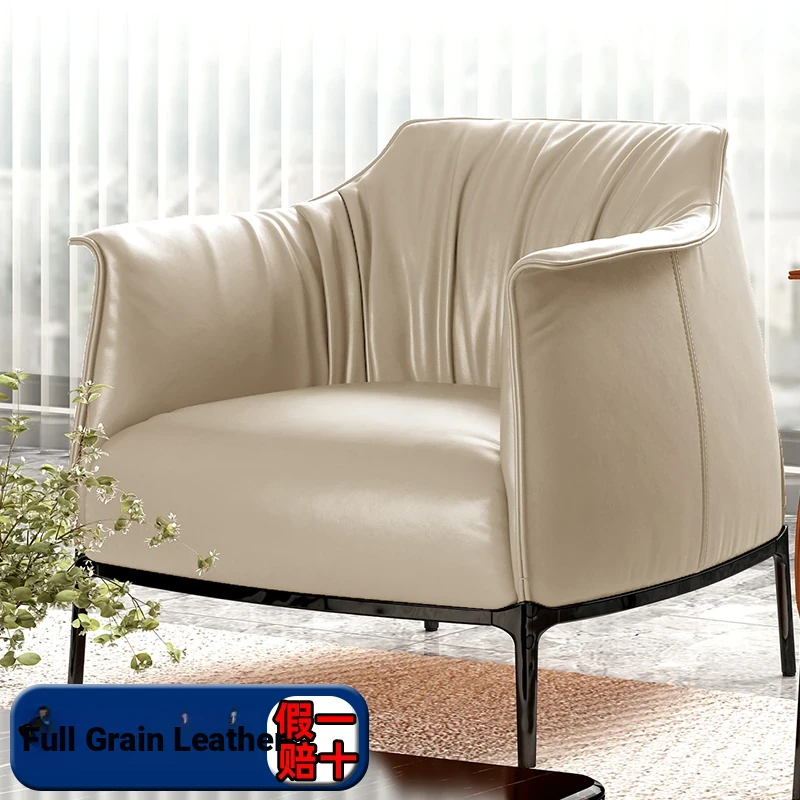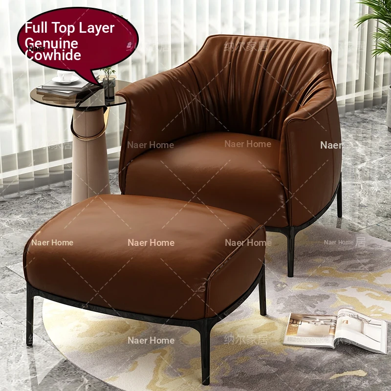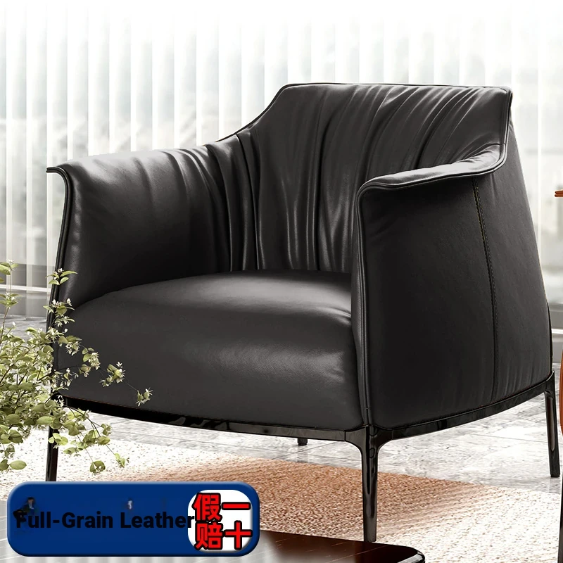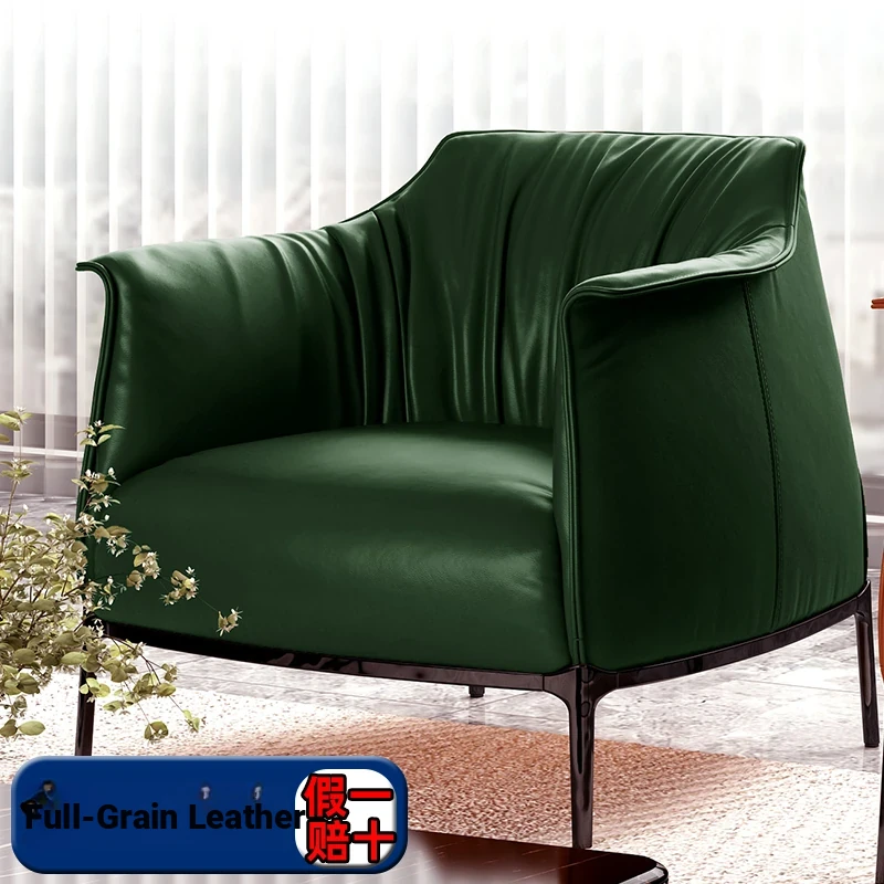 Retro Italian Style Single Sofa - Designer Leather Accent Chair for Balcony, Living Room, and Master Bedroom - Perfect for Relaxation and Chic Decor!
