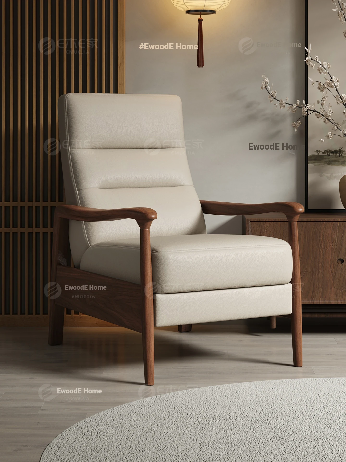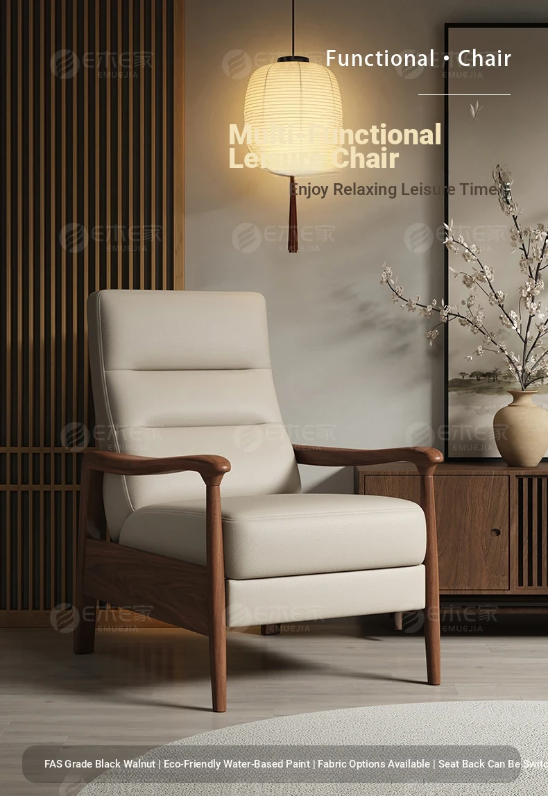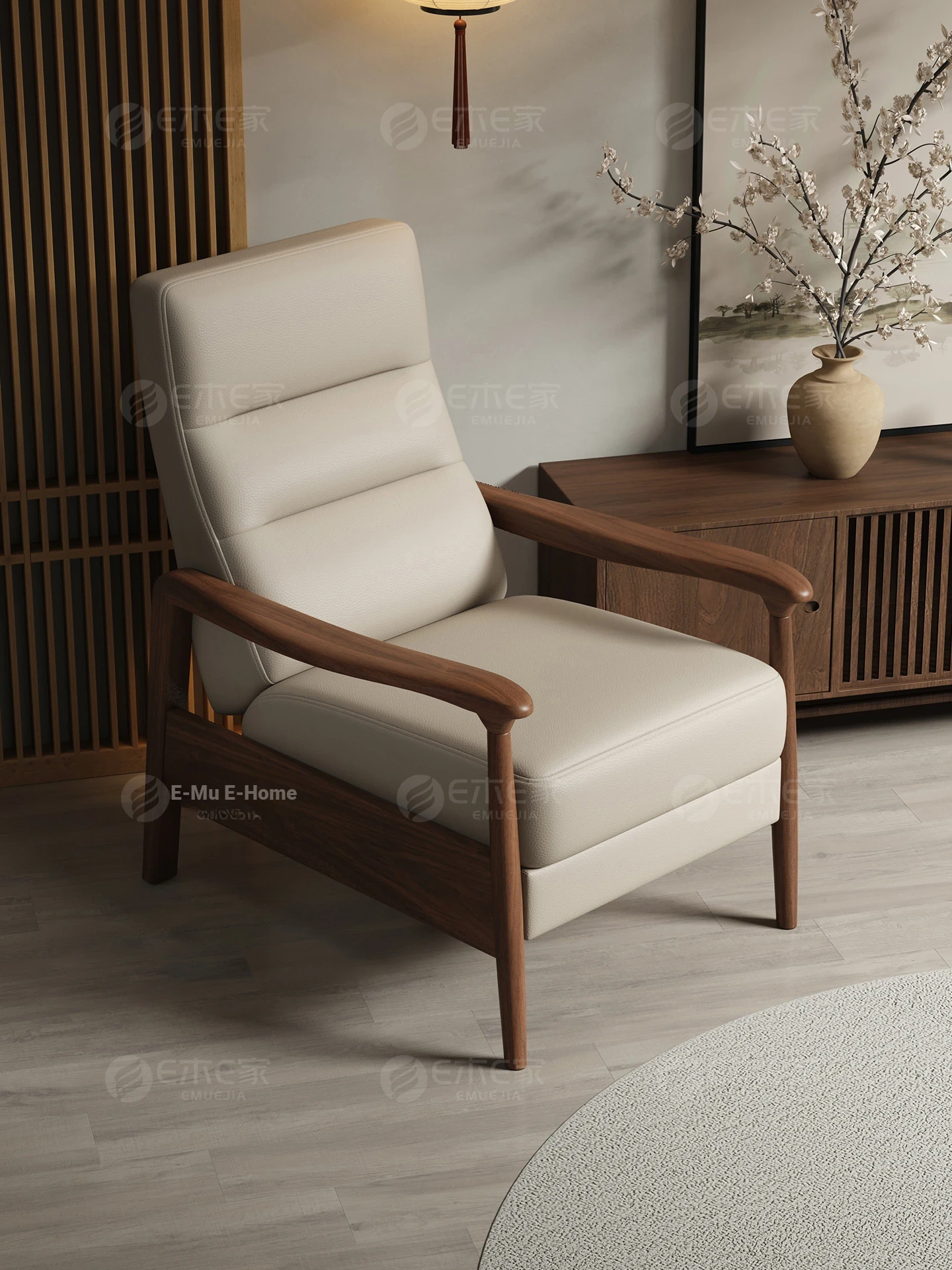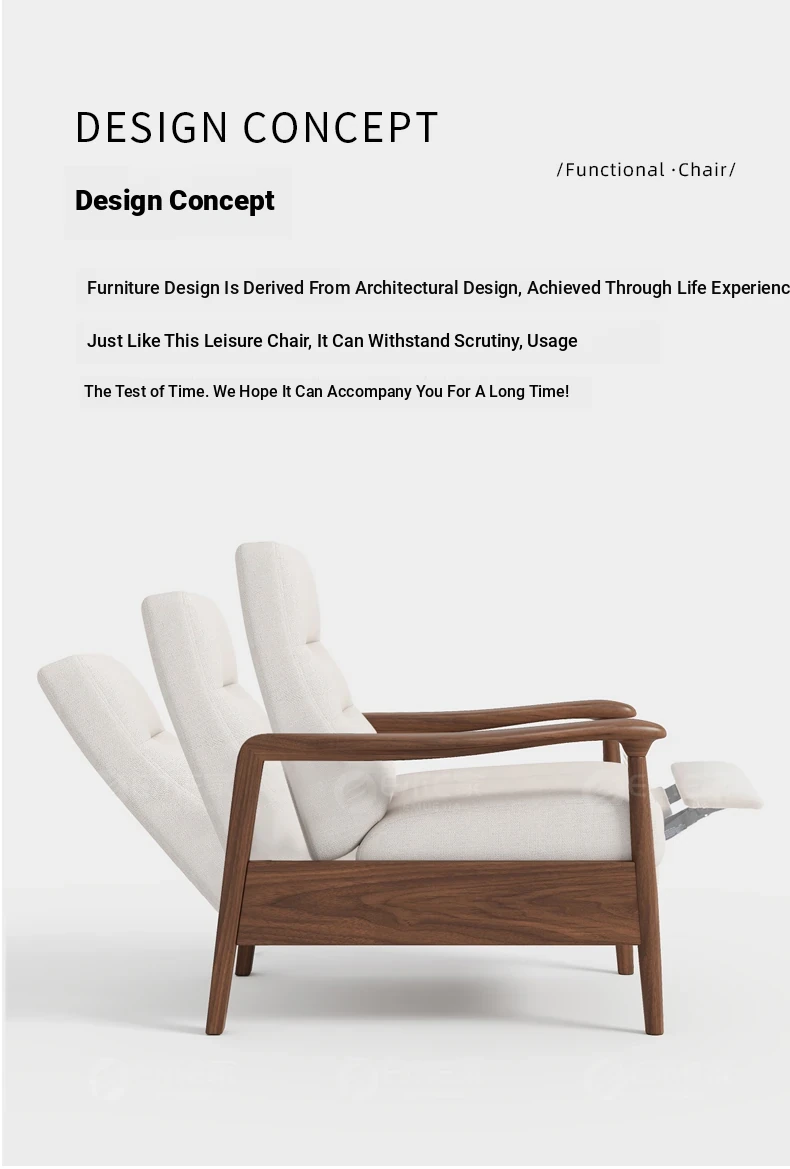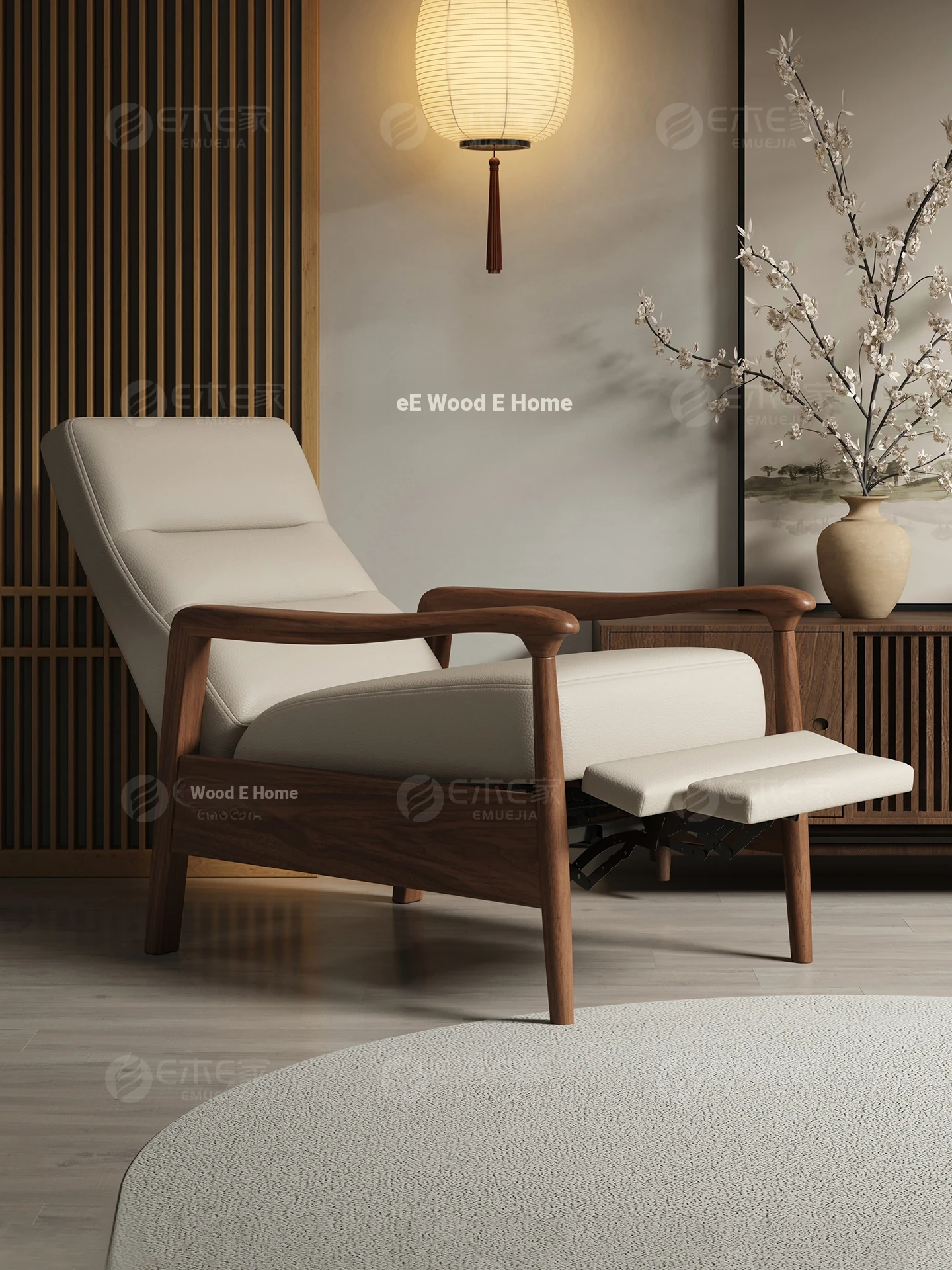 Sofa Chair in Song Style Aesthetics - Solid Wood, Walnut Single Lounge Chair for Living Room and Balcony, Perfect for Relaxation and Comfort, Versatile Sitting and Lying Design