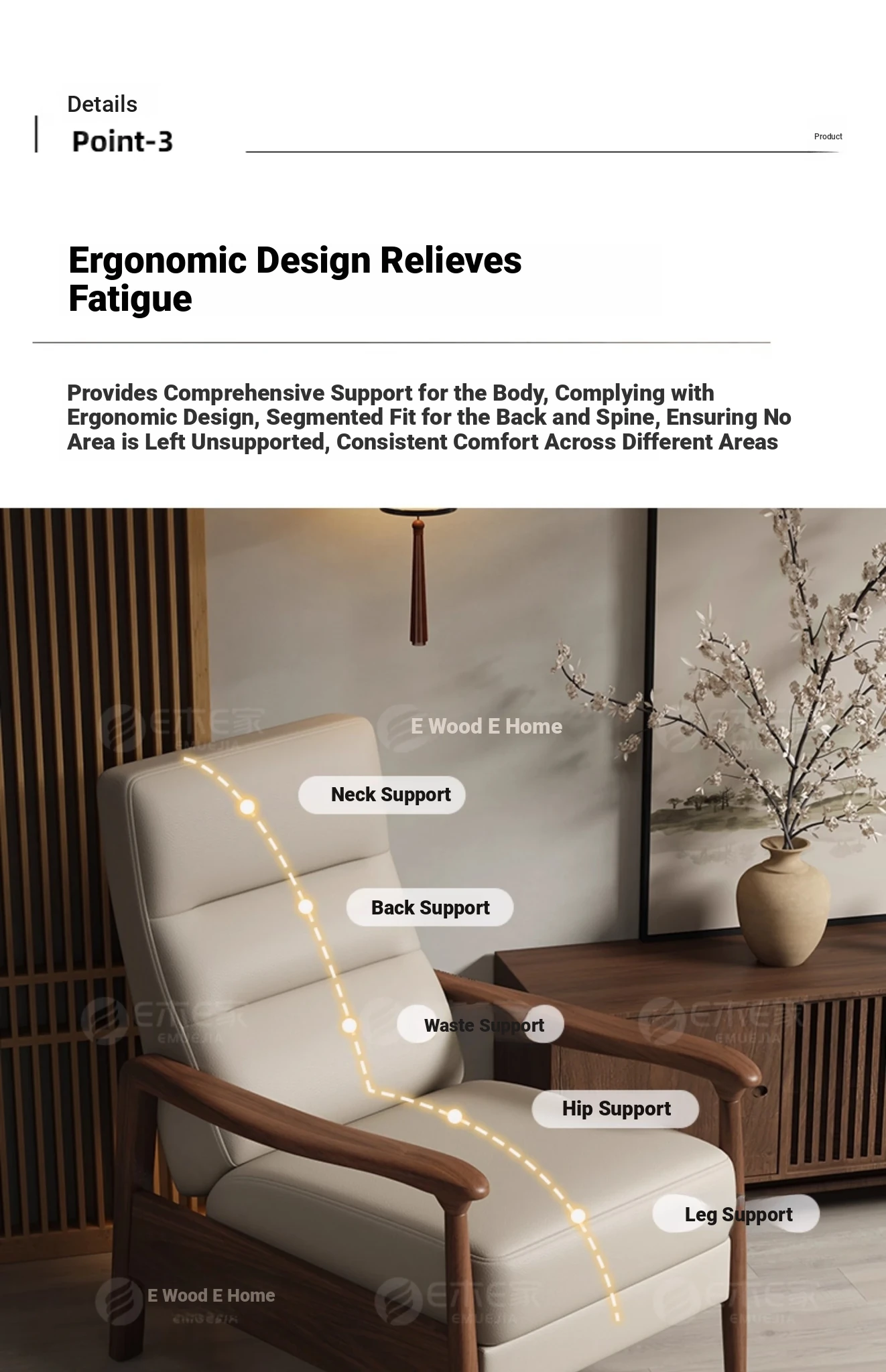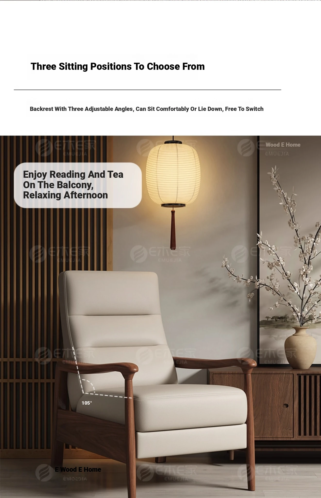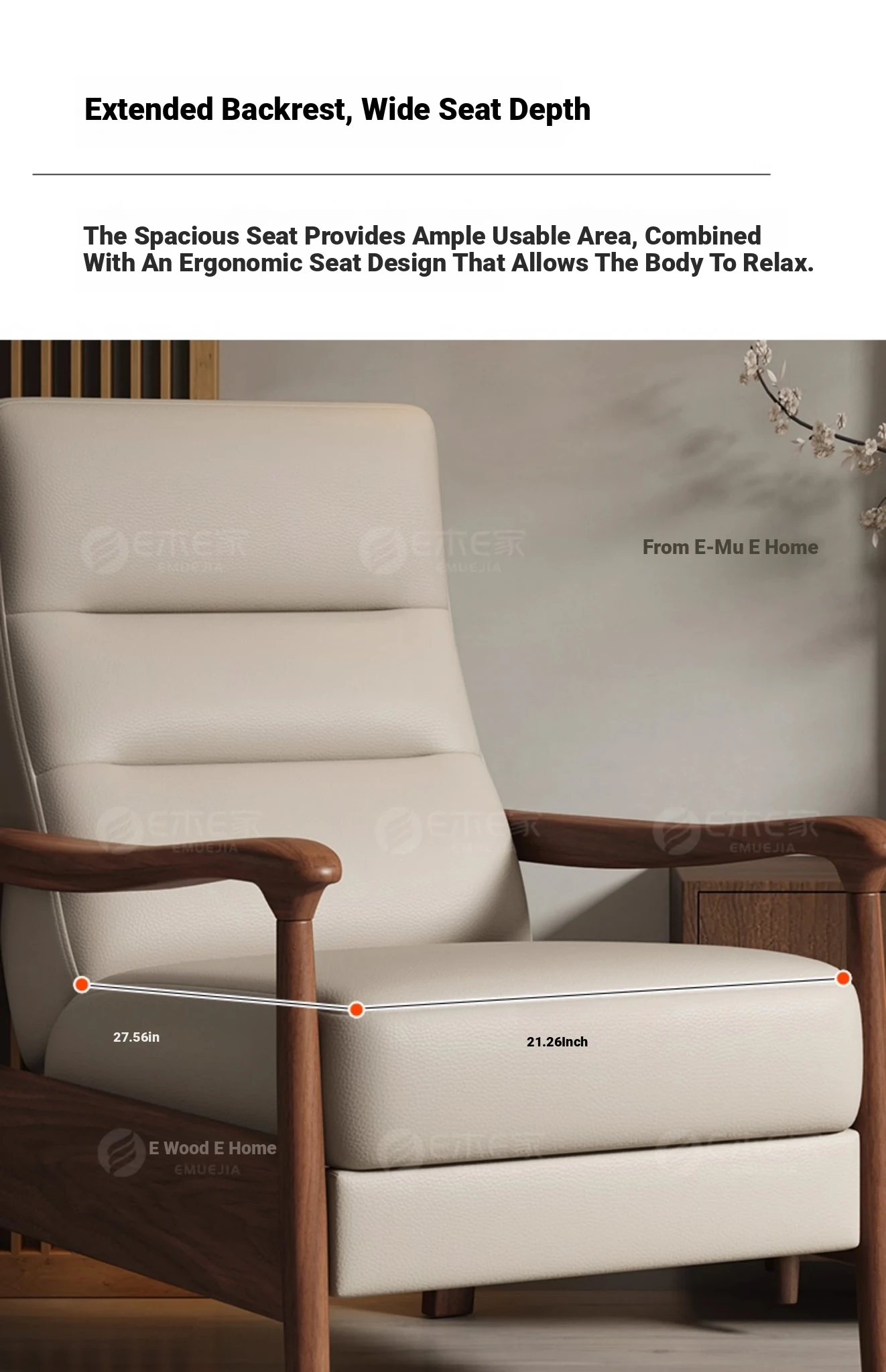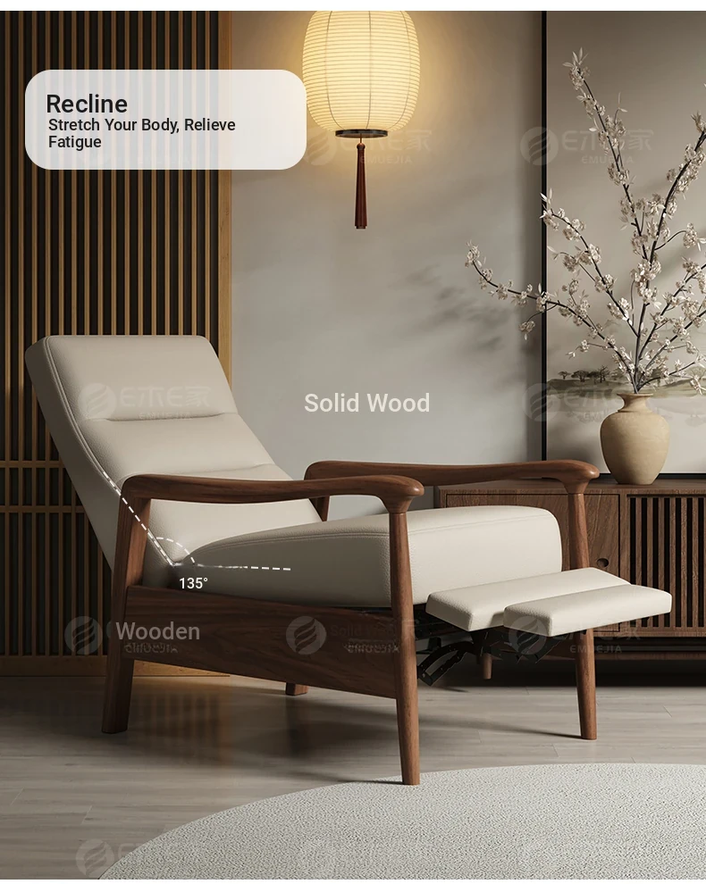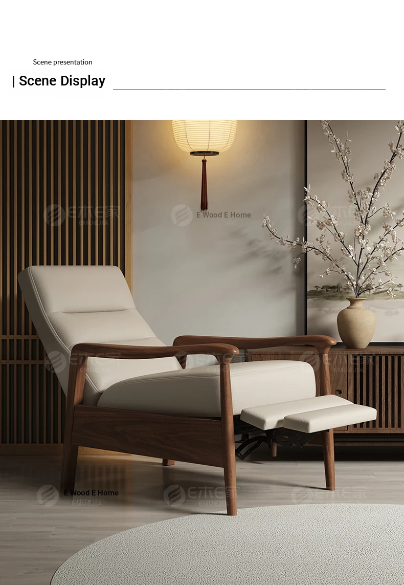 Sofa Chair in Song Style Aesthetics - Solid Wood, Walnut Single Lounge Chair for Living Room and Balcony, Perfect for Relaxation and Comfort, Versatile Sitting and Lying Design
