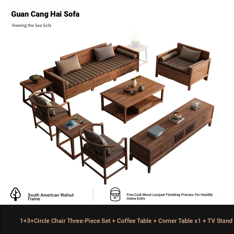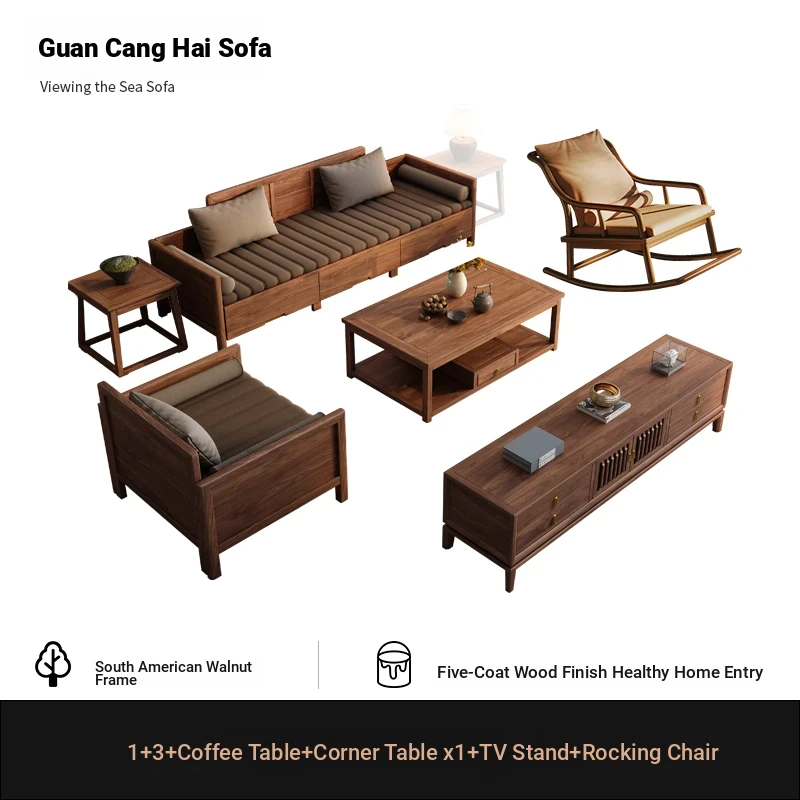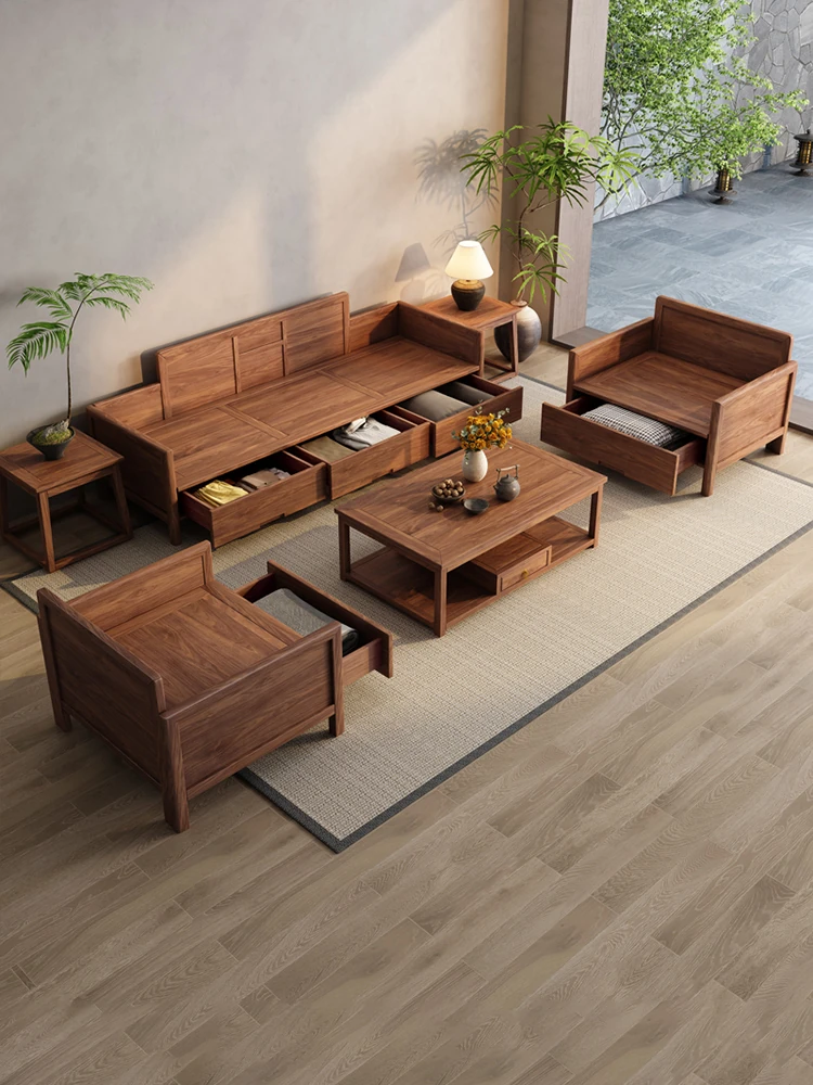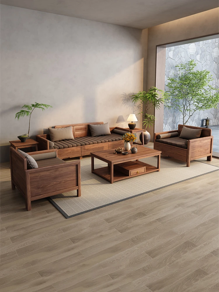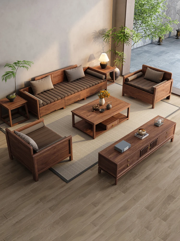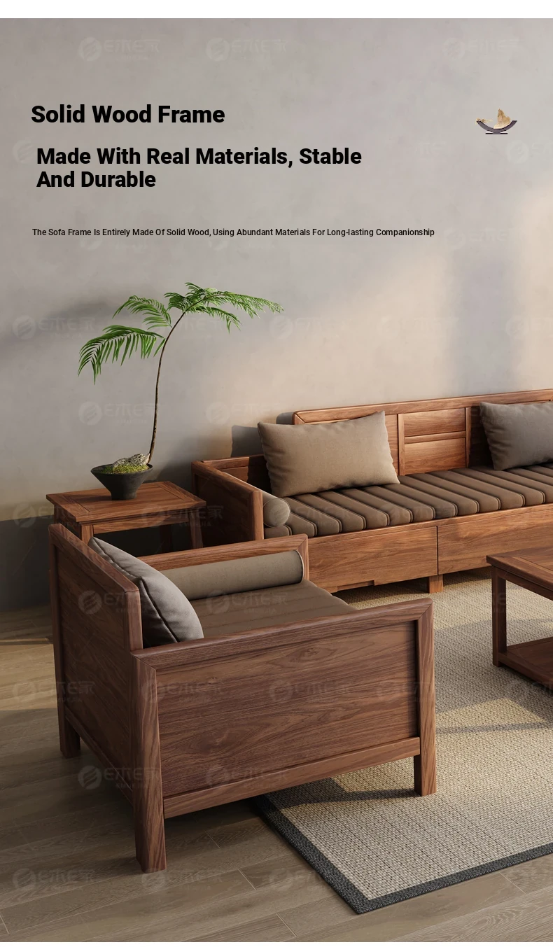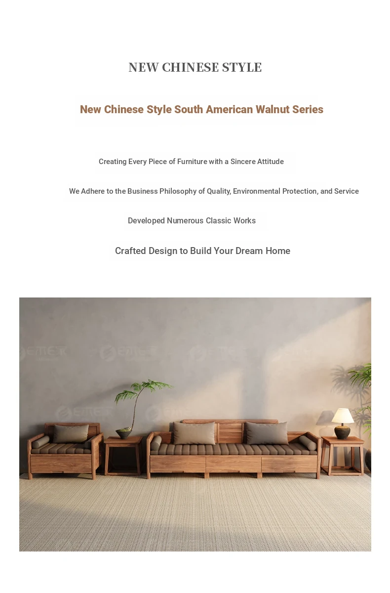 South American Walnut New Chinese Style Solid Wood Sofa Set - Elegant Living Room Storage Solution for Small to Medium Homes and High-End Villas
