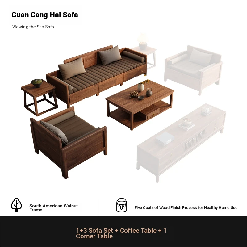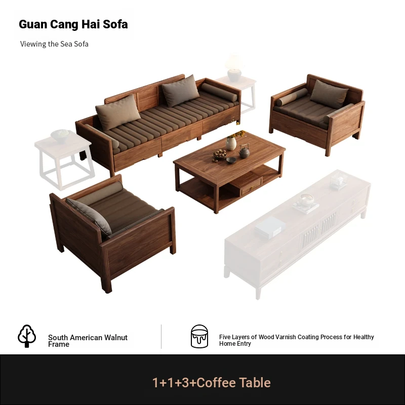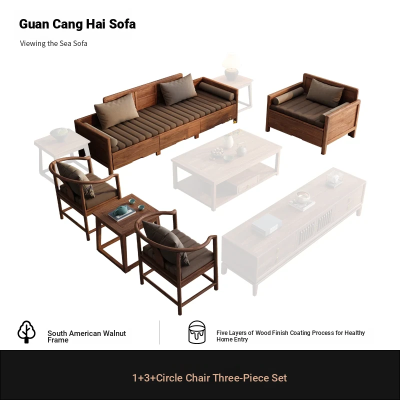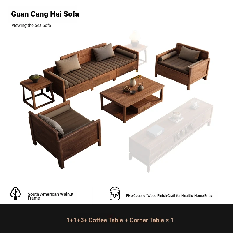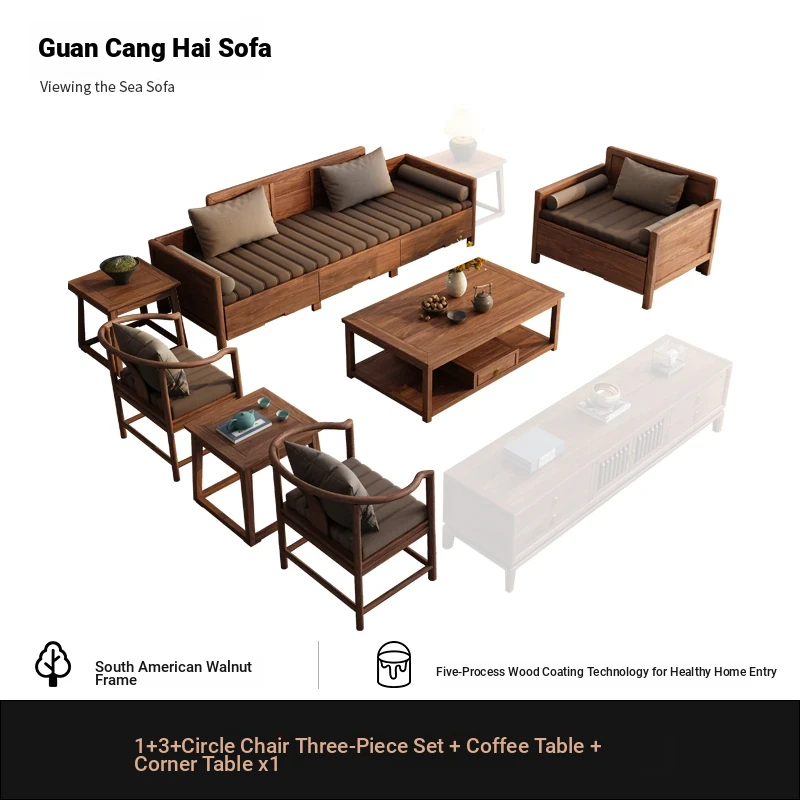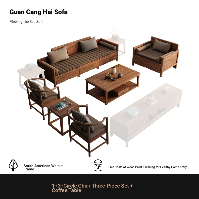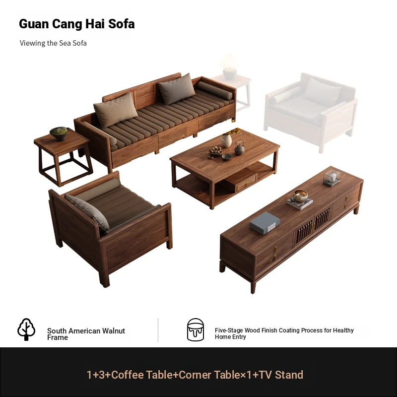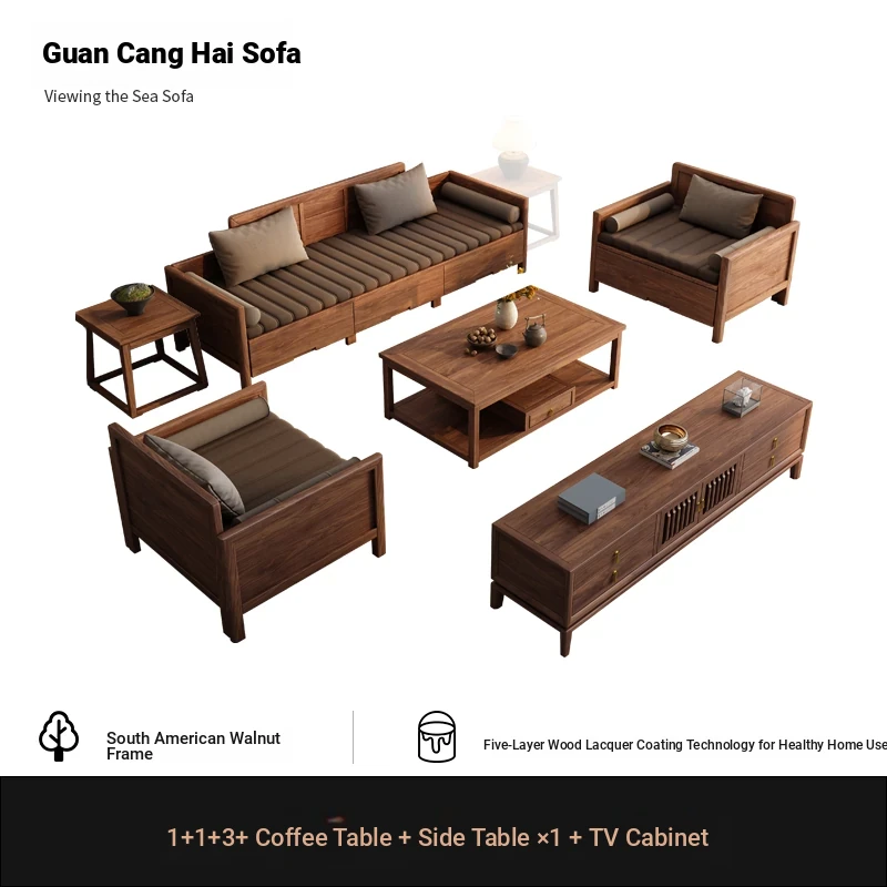South American Walnut New Chinese Style Solid Wood Sofa Set - Elegant Living Room Storage Solution for Small to Medium Homes and High-End Villas
