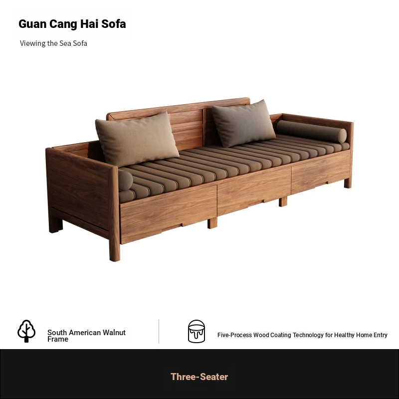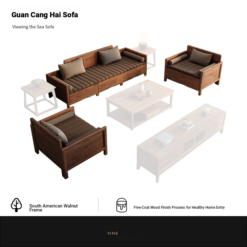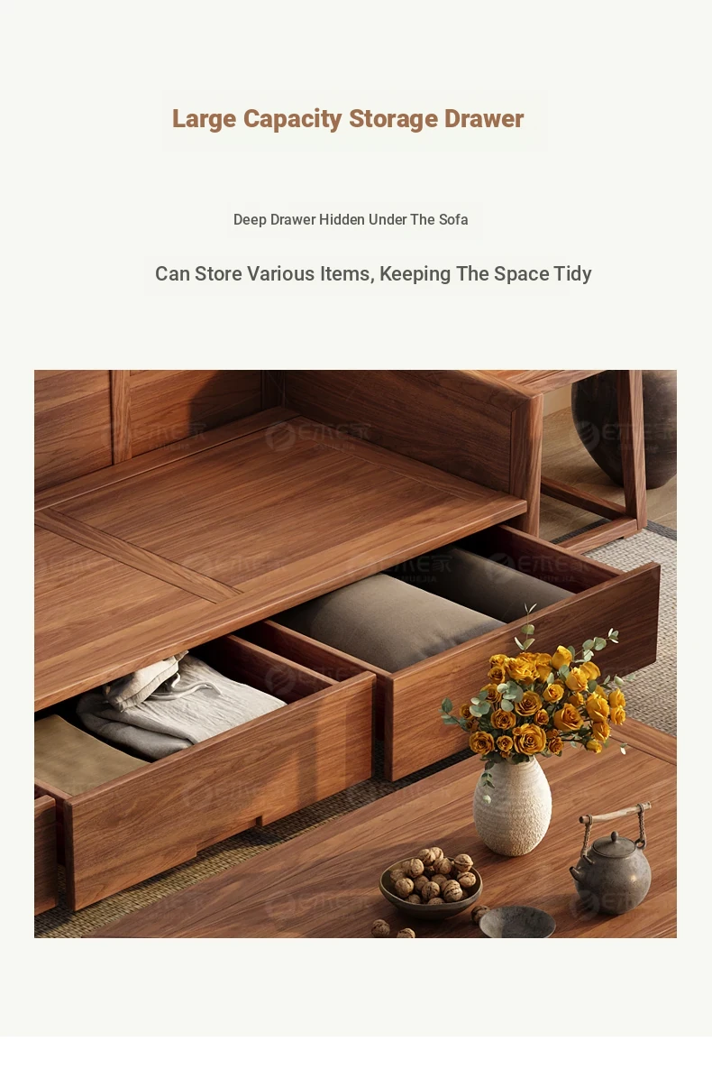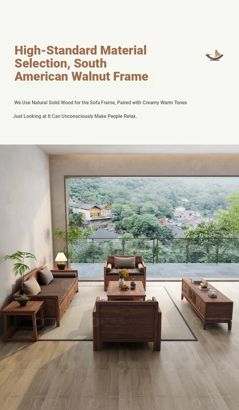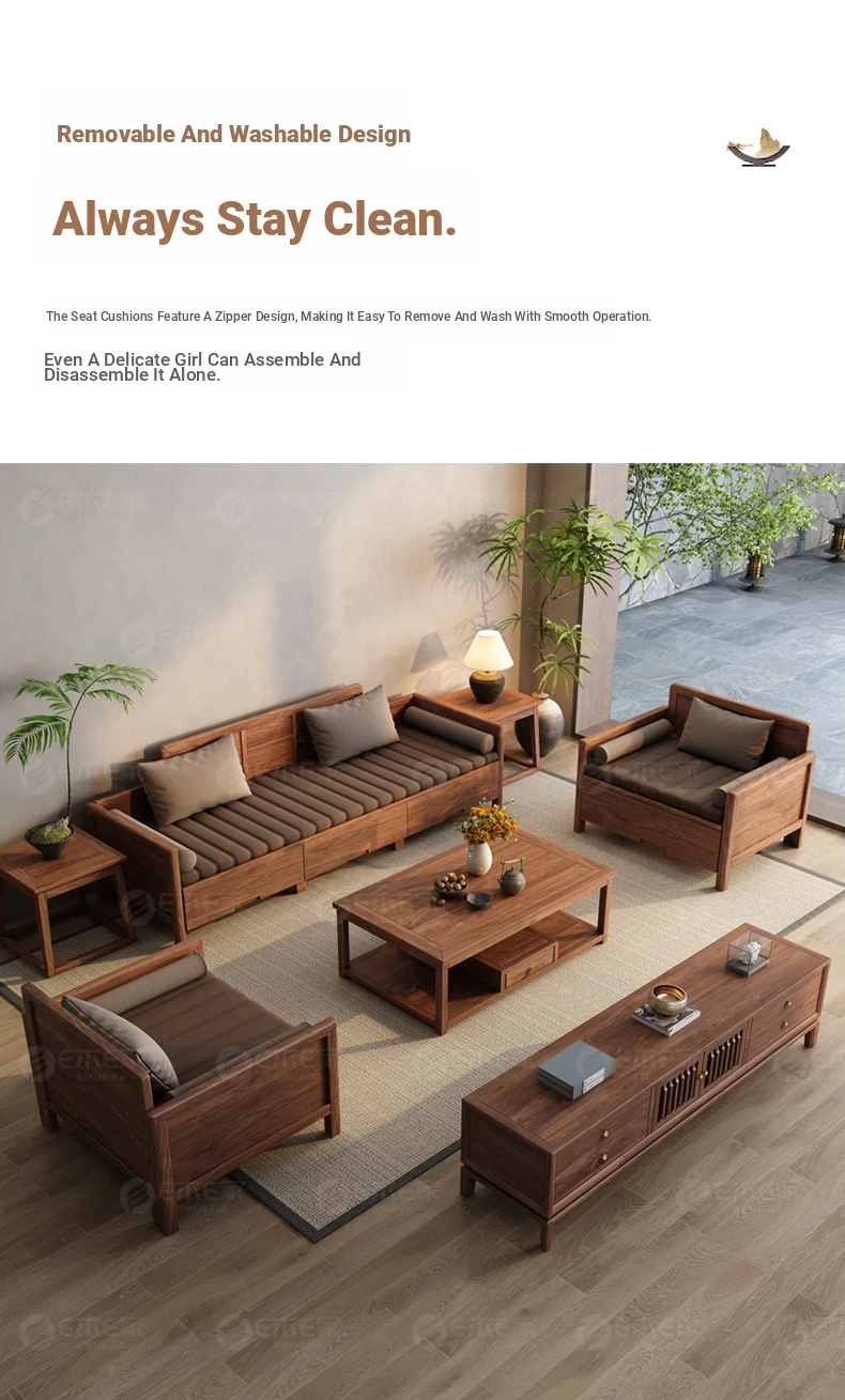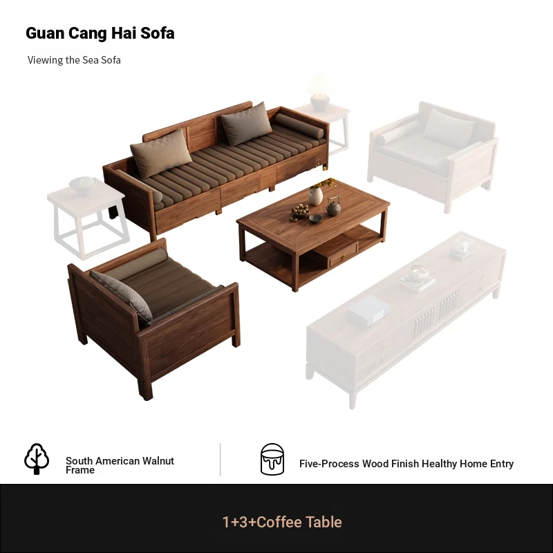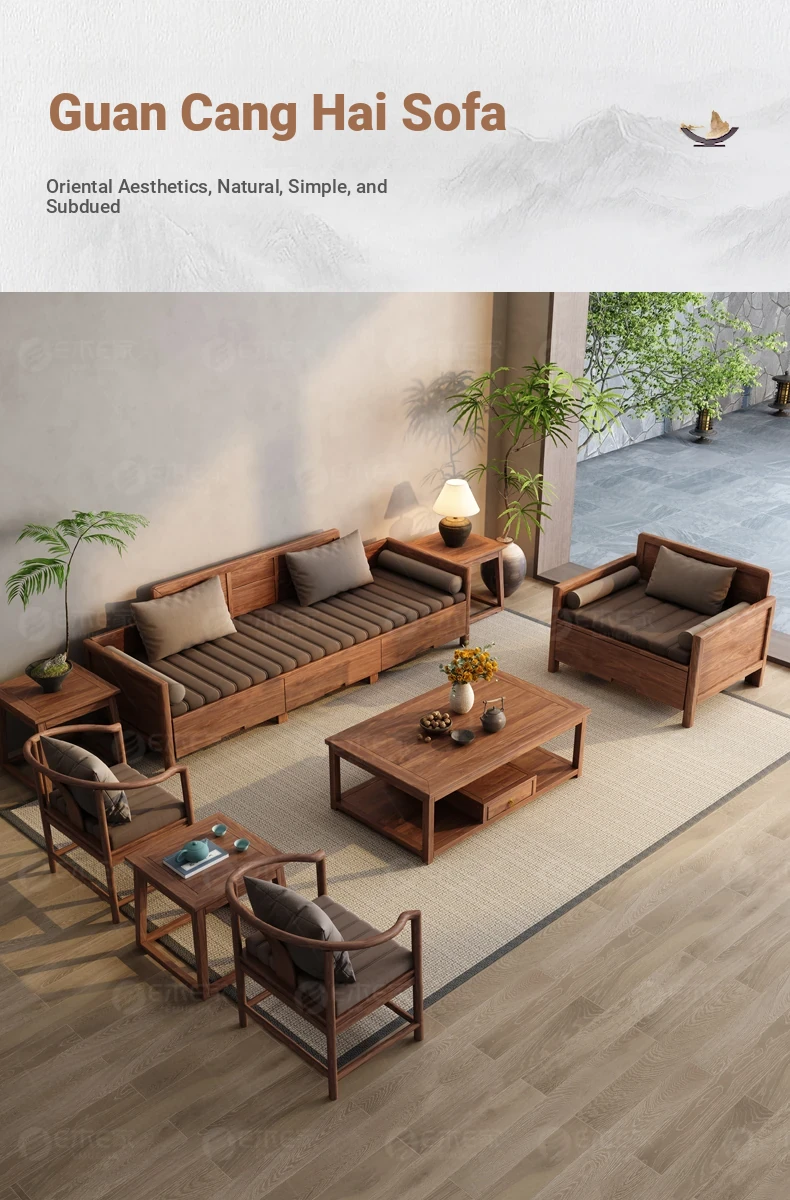 South American Walnut New Chinese Style Solid Wood Sofa Set - Elegant Living Room Storage Solution for Small to Medium Homes and High-End Villas