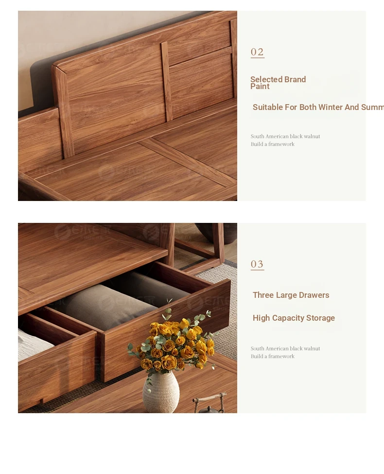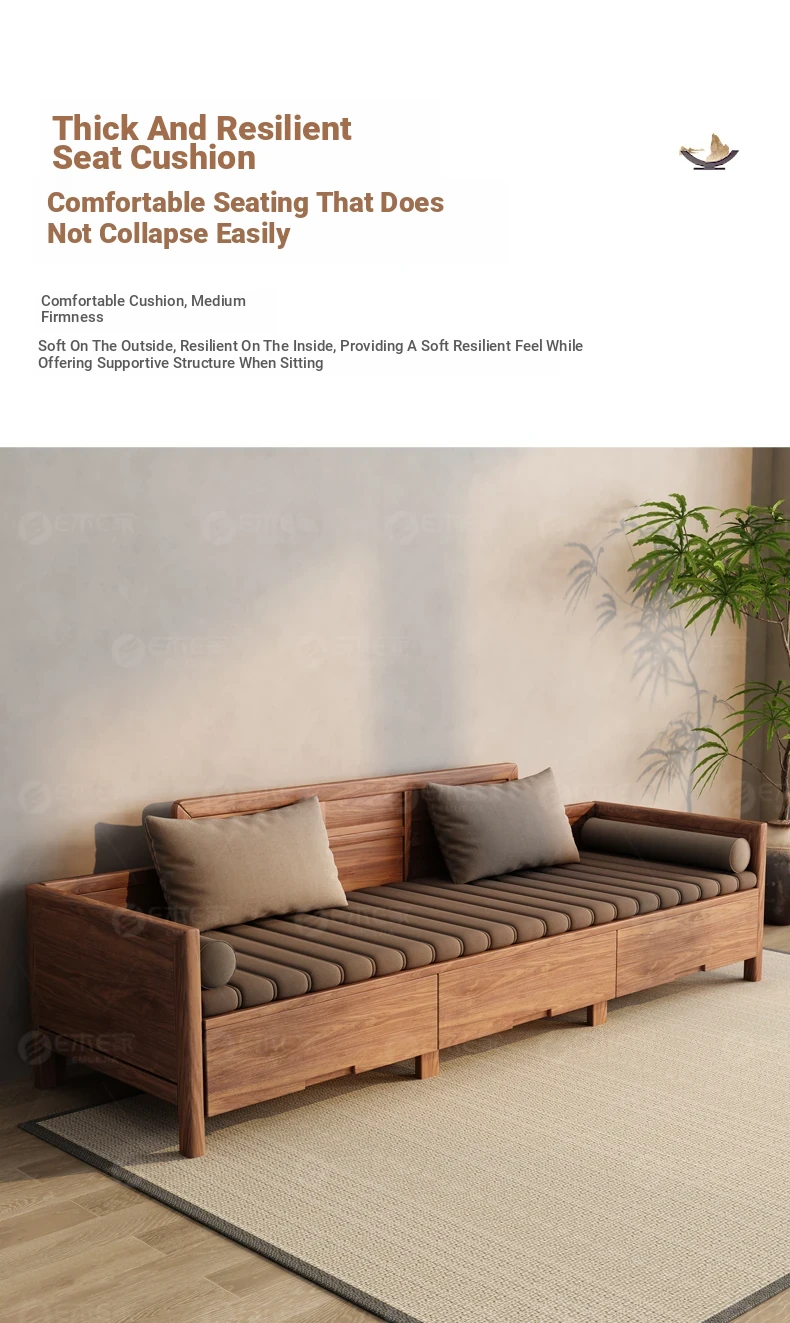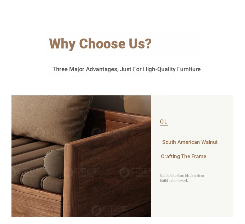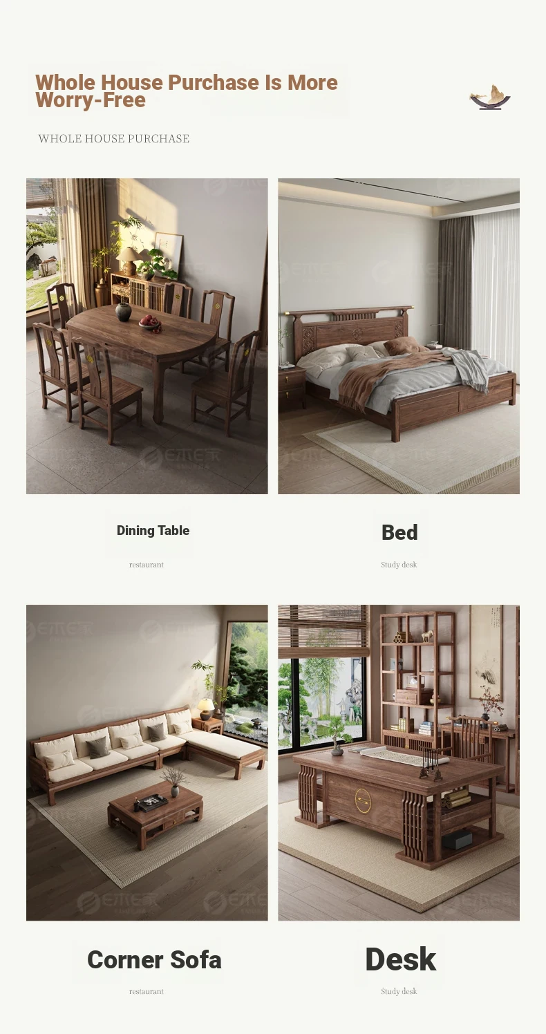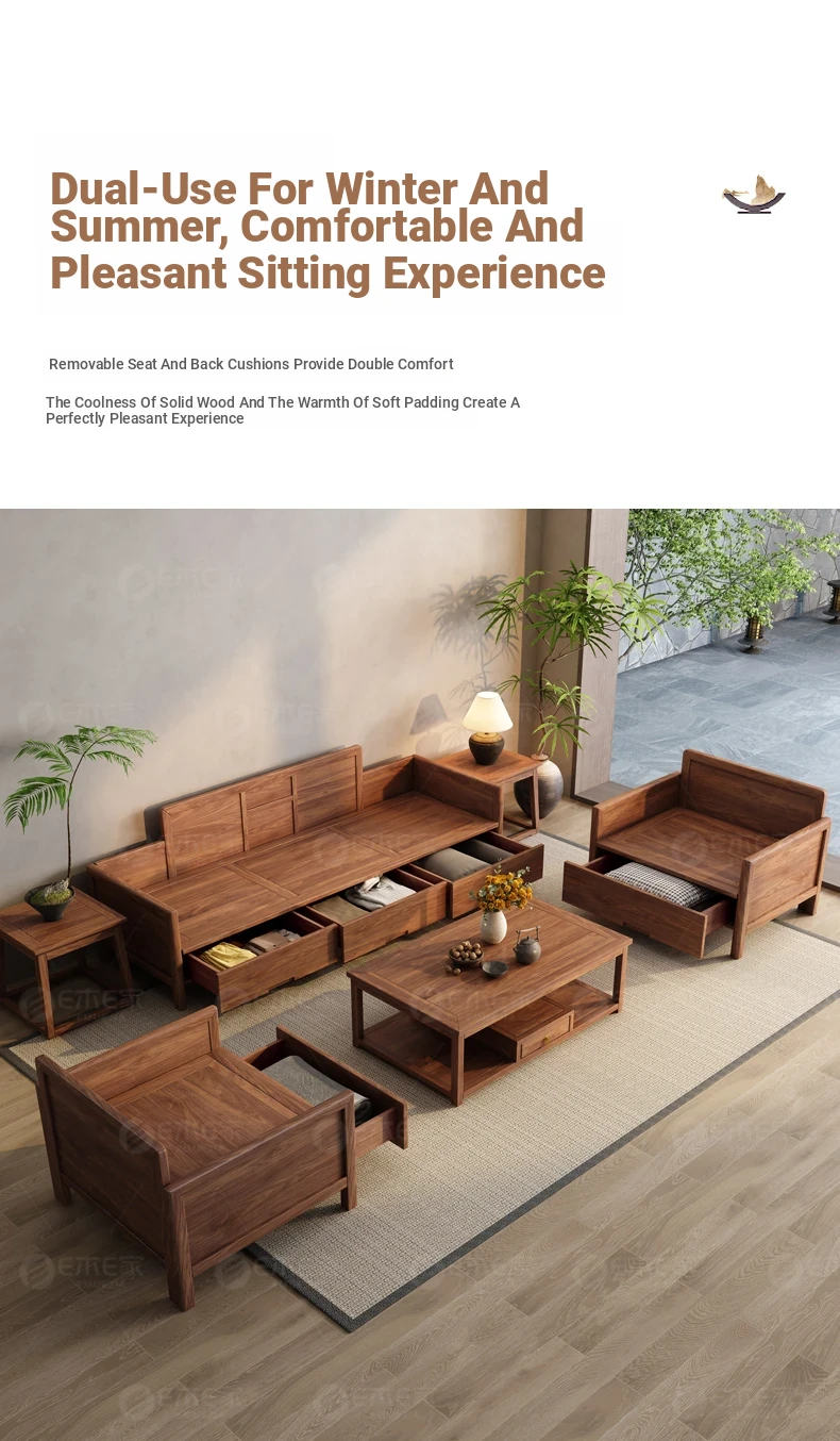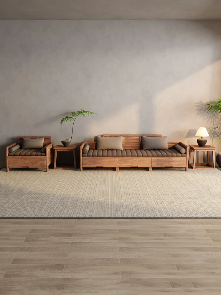 South American Walnut New Chinese Style Solid Wood Sofa Set - Elegant Living Room Storage Solution for Small to Medium Homes and High-End Villas