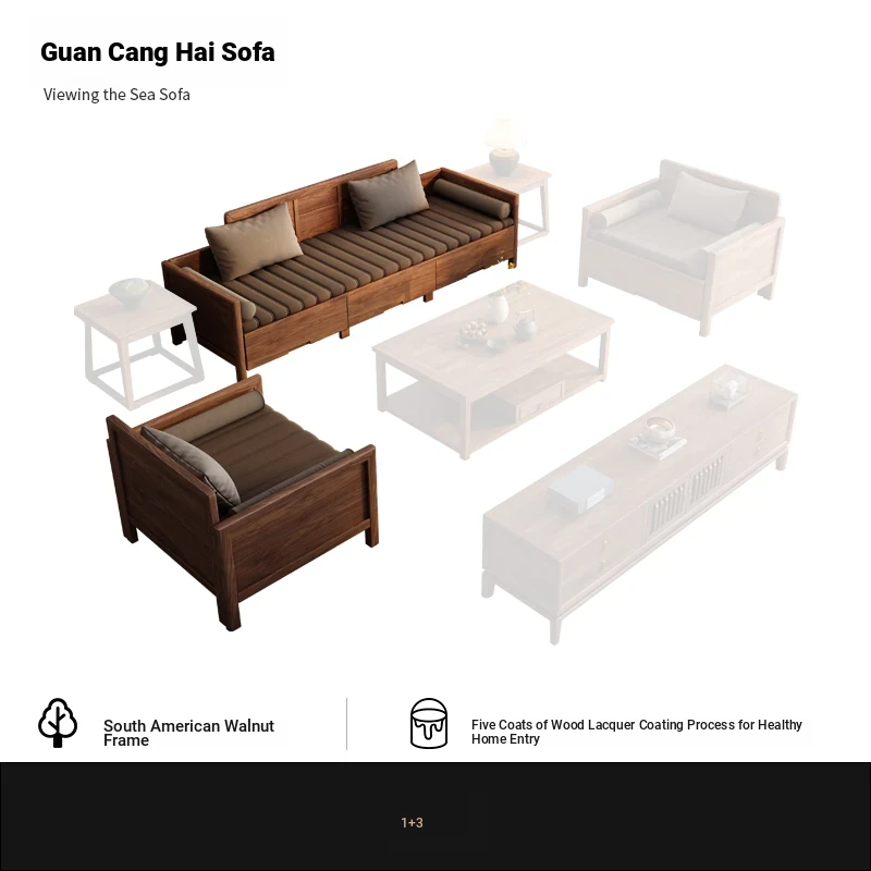1+3 + coffee table + corner table * 1 + TV cabinet [FAS Walnut]]