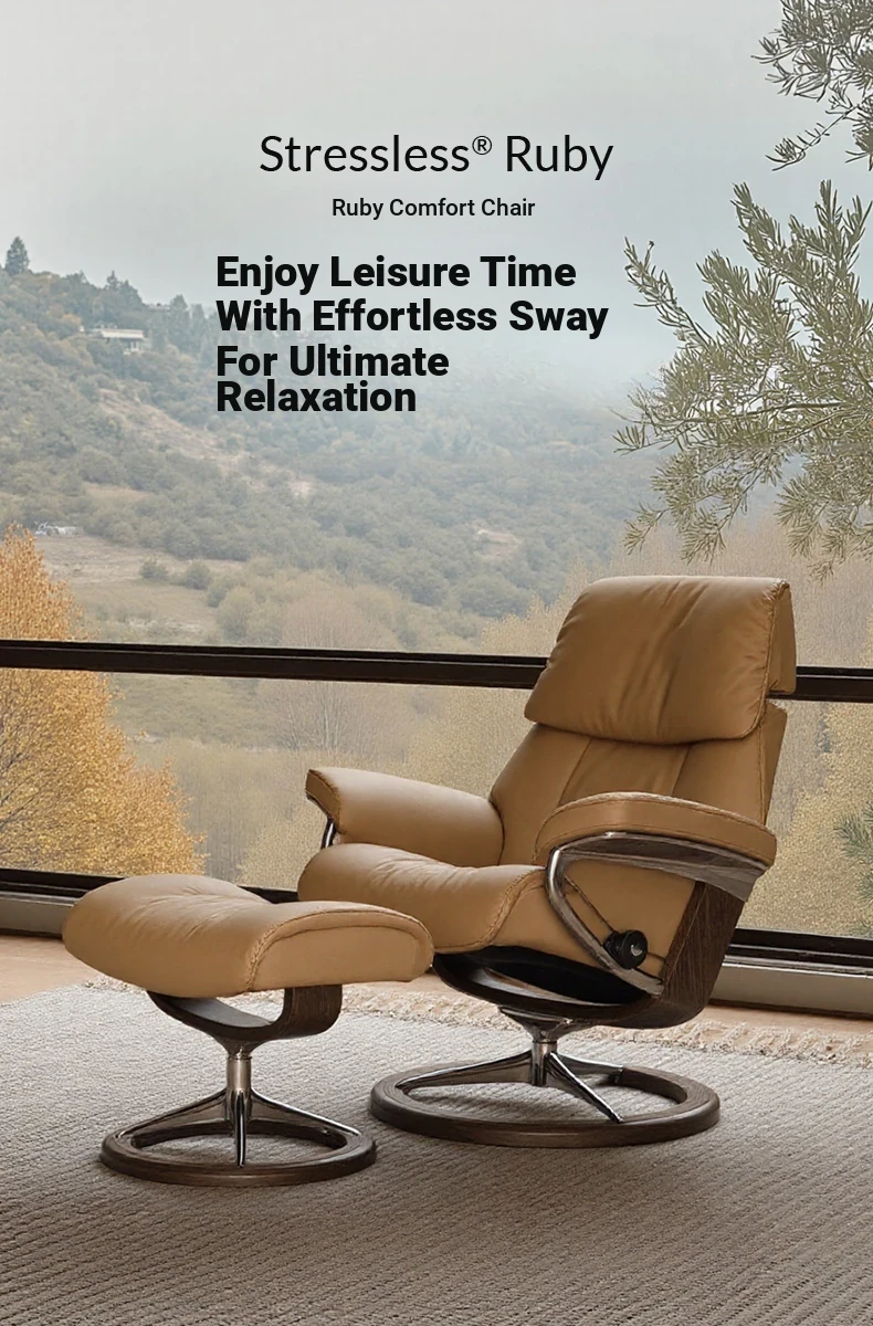 Stressless Ruby Recliner Chair - Premium Norwegian Leather, Single-Seat Lounge Chair for Ultimate Comfort and Relaxation