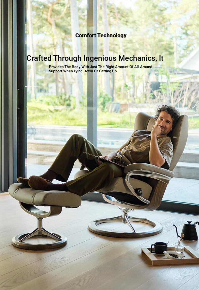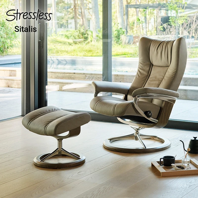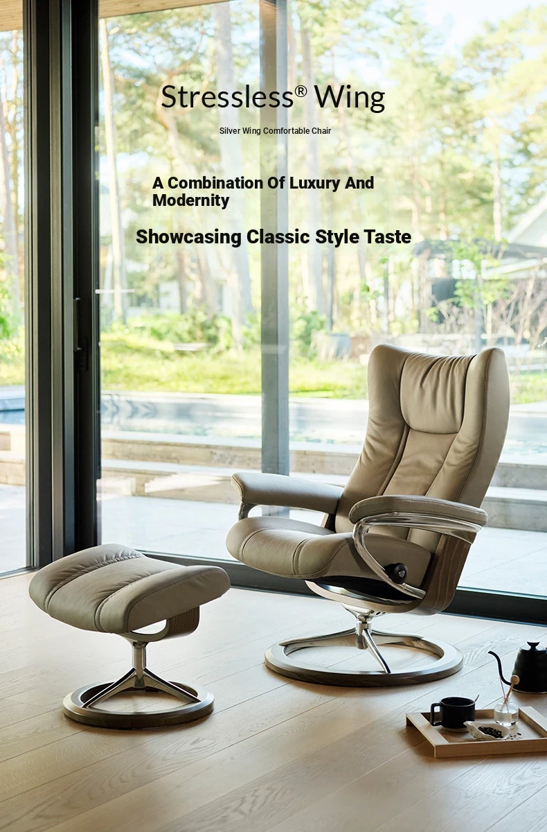 Stressless Silver Wing Recliner Chair – Premium Norwegian Leather Lounge Chair for Living Room, Perfect for Relaxation and Comfort.
