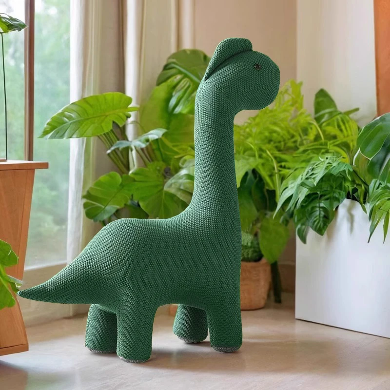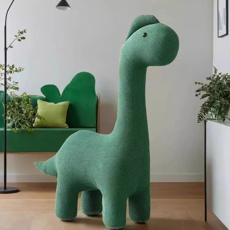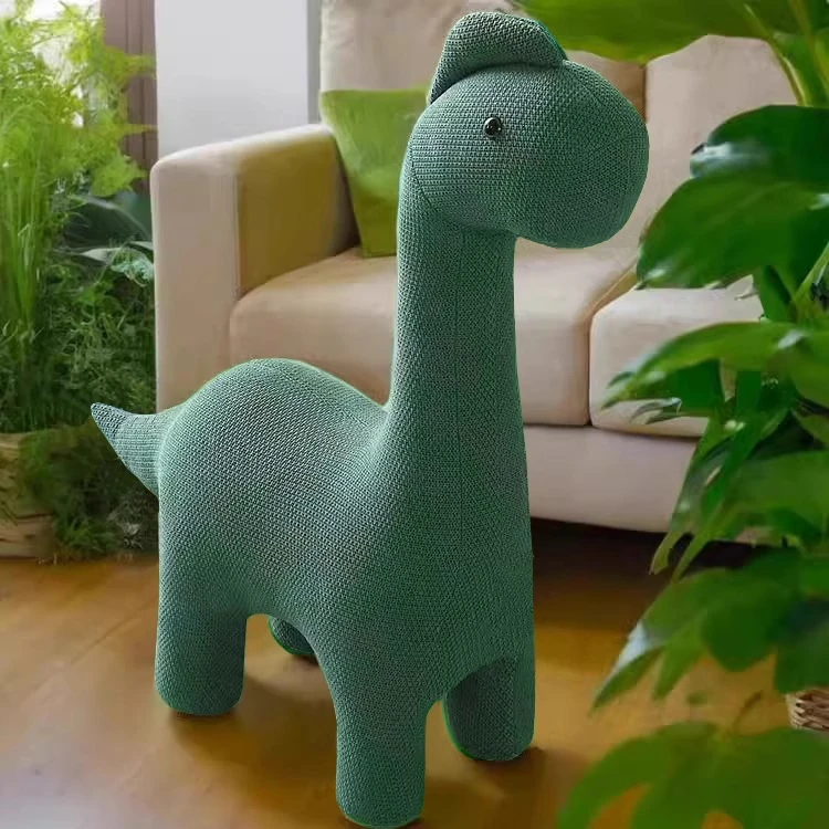 Trendy Dinosaur Stool - Plush Knitted Cartoon Chair for Living Room, Green Shoe Bench, Adorable Animal Seat, Perfect Kids Gift!