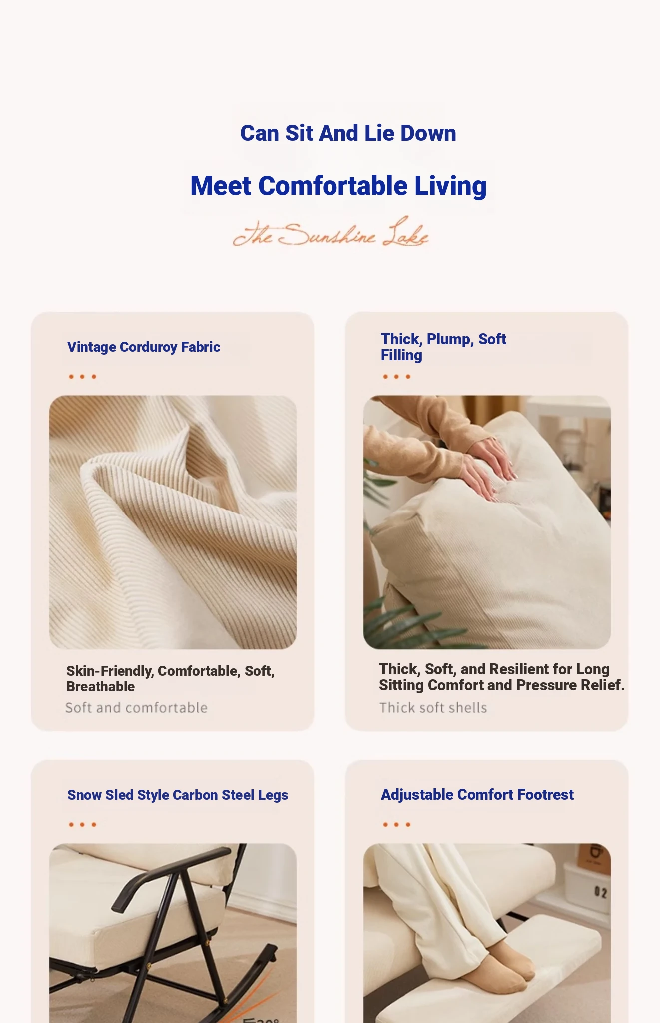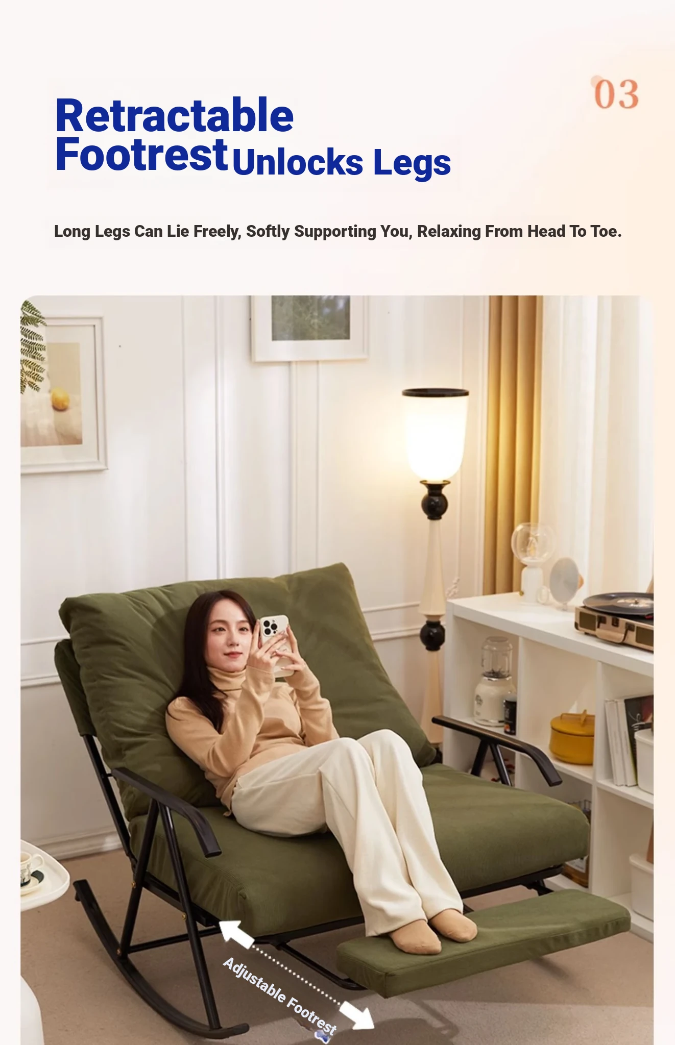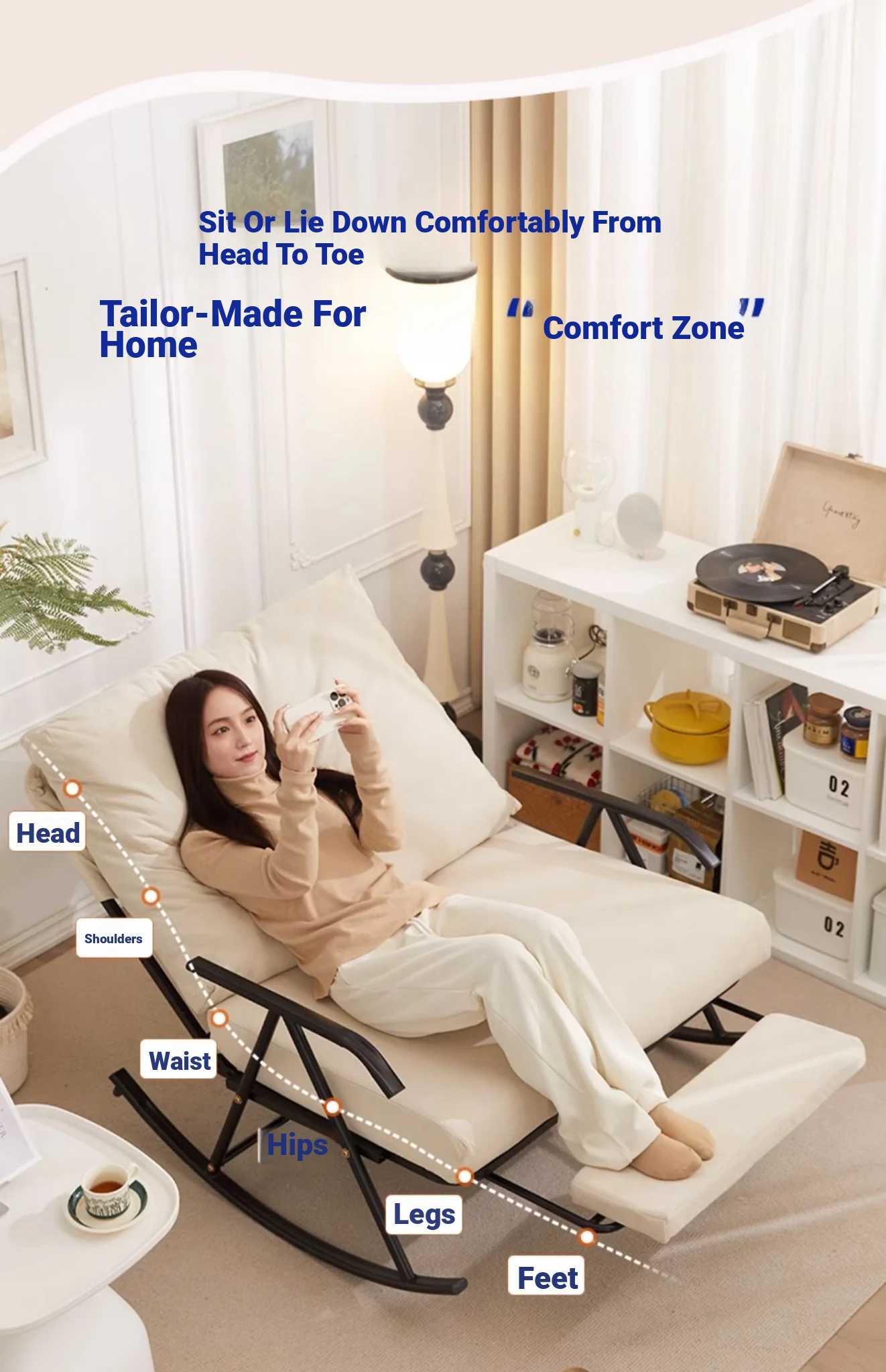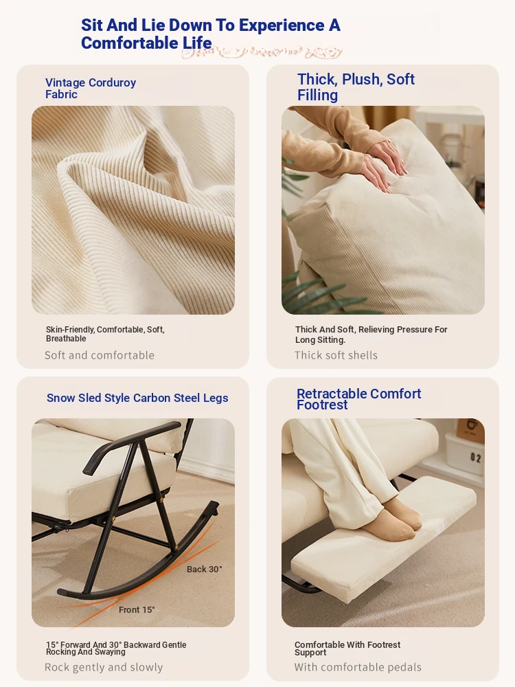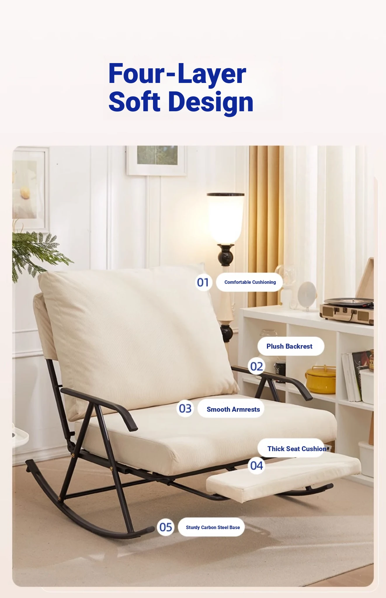 Trendy Rocking Chair for Living Room - Luxury Lazy Lounge Chair for Balcony, Comfortable Sofa Chair for Home, Stylish Double Rocker for Adults – Perfect for Relaxation!