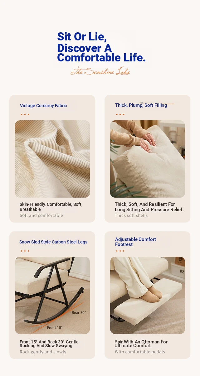 Trendy Rocking Chair for Living Room - Luxury Lazy Sofa for Balcony - Cozy Recliner for Home - Comfortable Double Rocking Chair for Adults - Perfect for Relaxation and Style