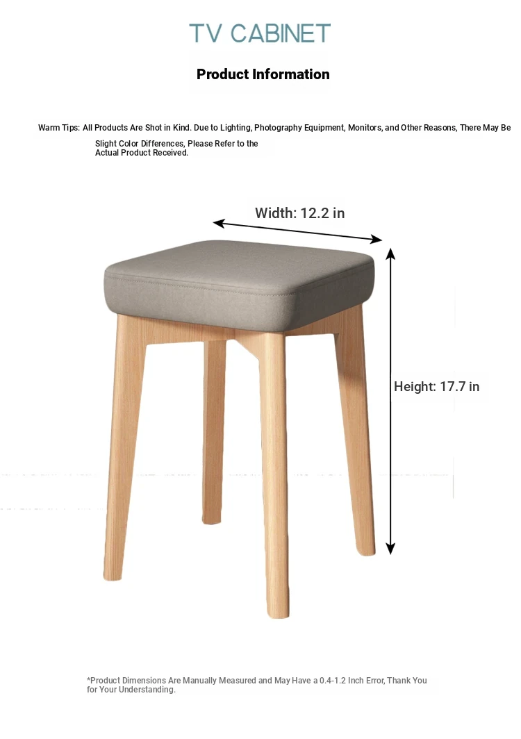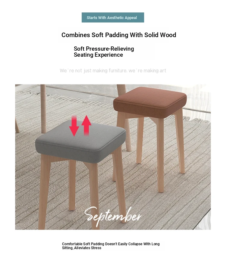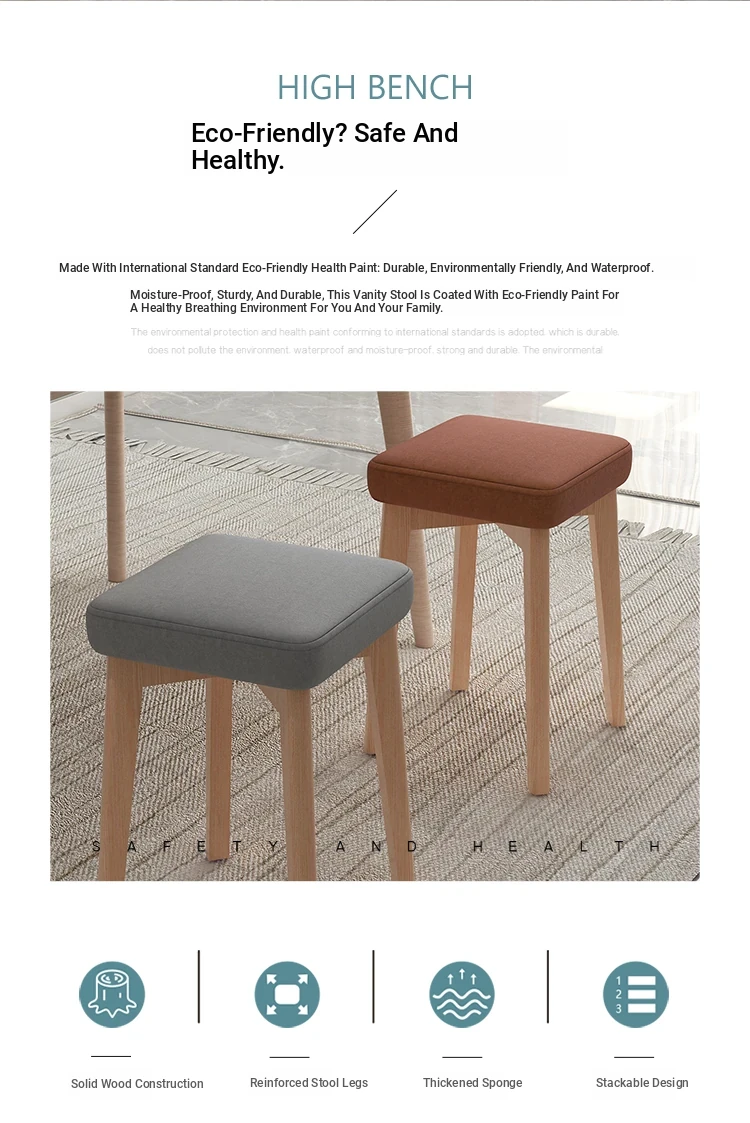 Versatile Makeup Stool - Soft Cushioned Vanity Chair for Home Use, Stylish Small Bench for Dining or Living Room, Solid Wood Design for Comfort and Durability