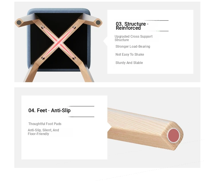 Solid wood stool-technology cloth light gray