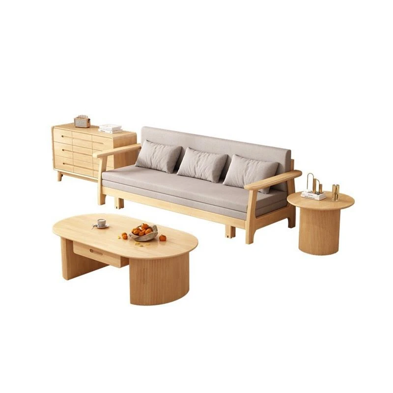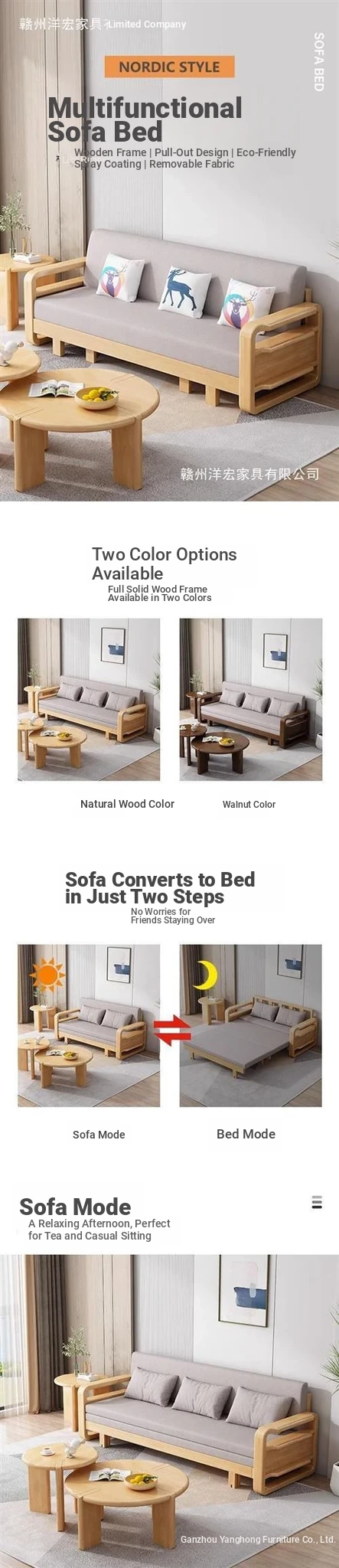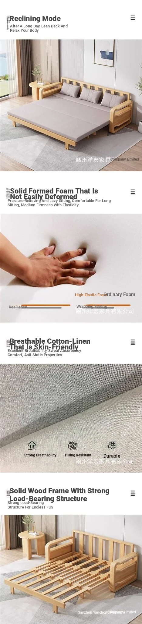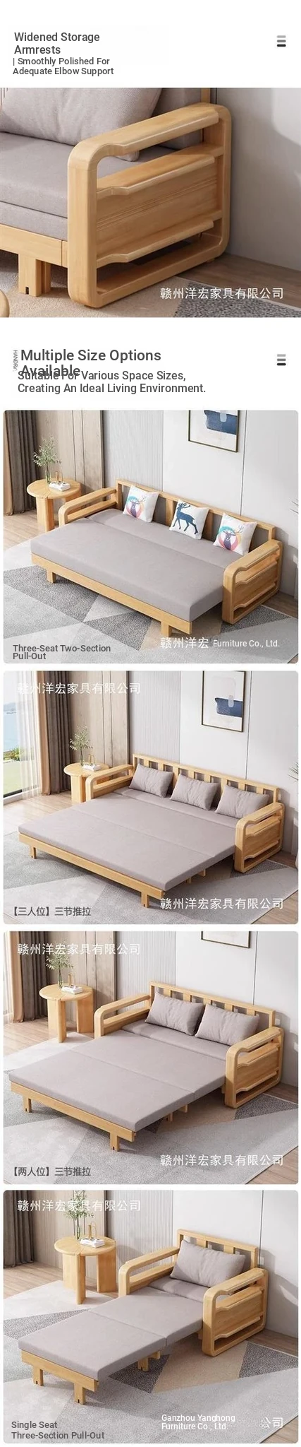Versatile Solid Wood Sofa Bed - Foldable & Extendable, Perfect for Small Spaces, Ideal for Singles & Couples, Multi-Functional Living Room Solution.