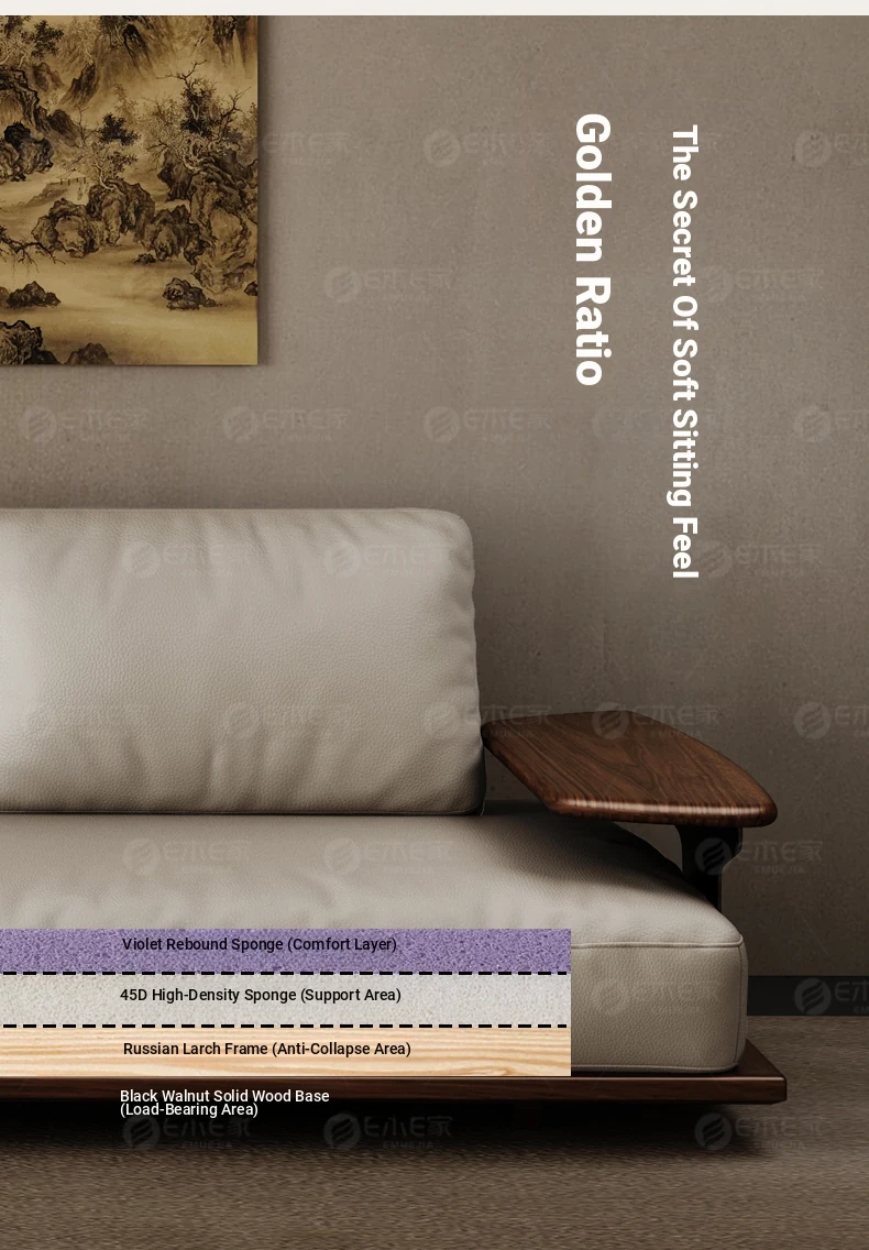 [Exclusive Edition 135.83in Big Five] thickened Top Leather + FAS Black Walnut + Super Soft Violet + High Resilience Honeycomb Breathable Integrated Sponge [Song Aesthetics]]