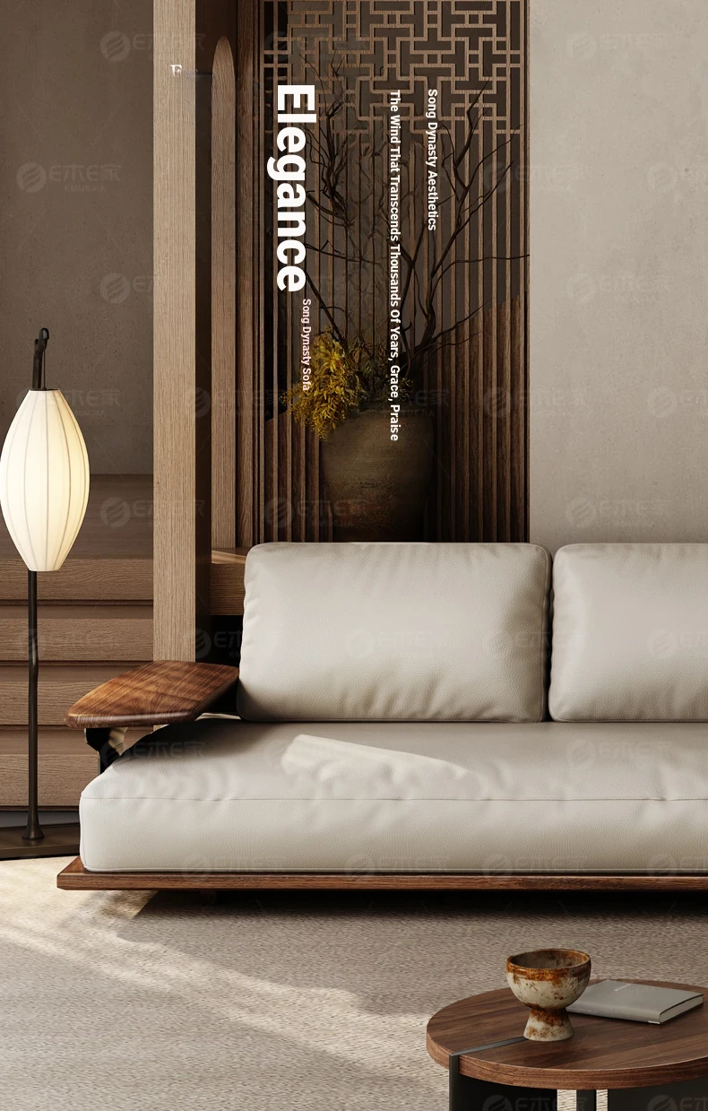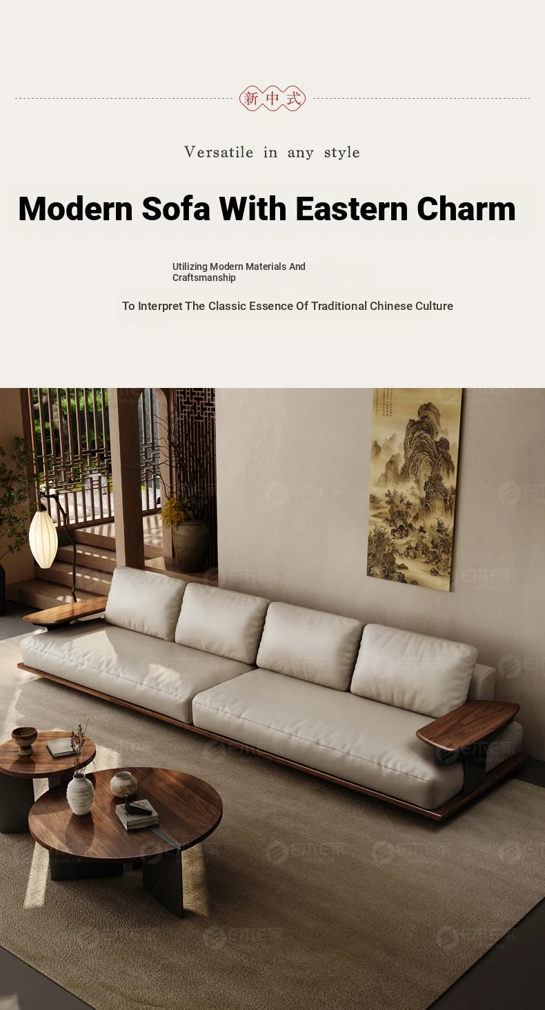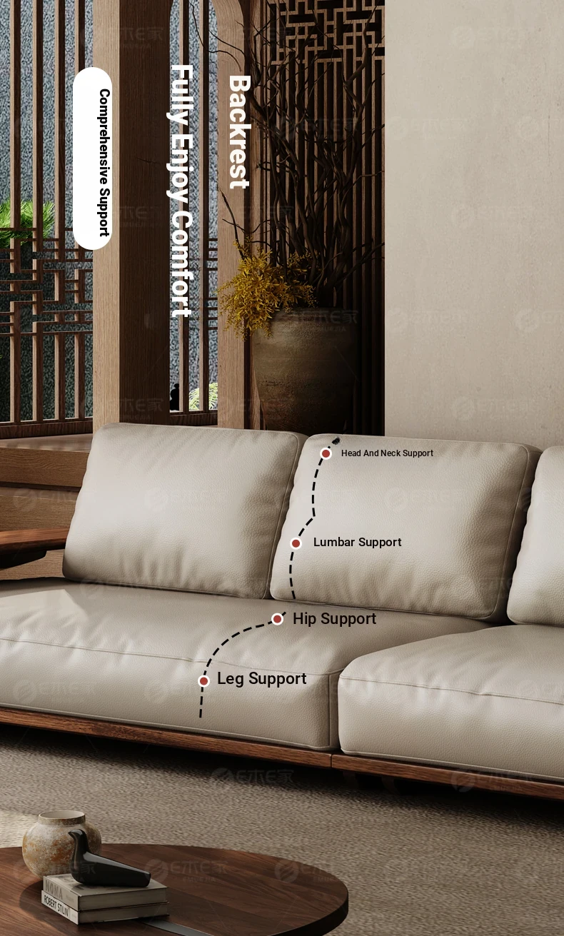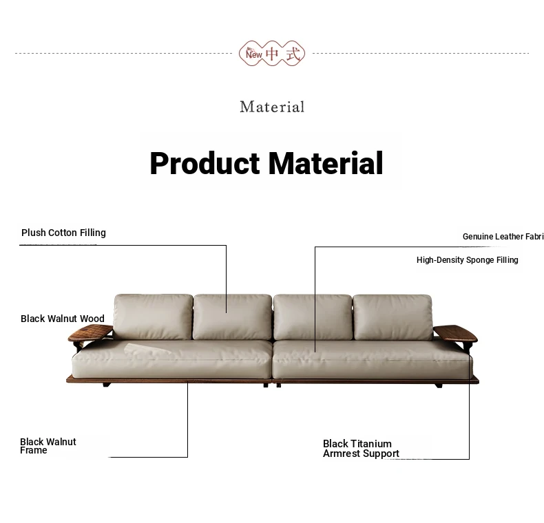 [Standard Edition 112.20in Four Persons] High Quality Ecological Leather + FAS Grade Black Walnut + High Resilience Honeycomb Breathable Integrated Sponge [Song Aesthetics]]