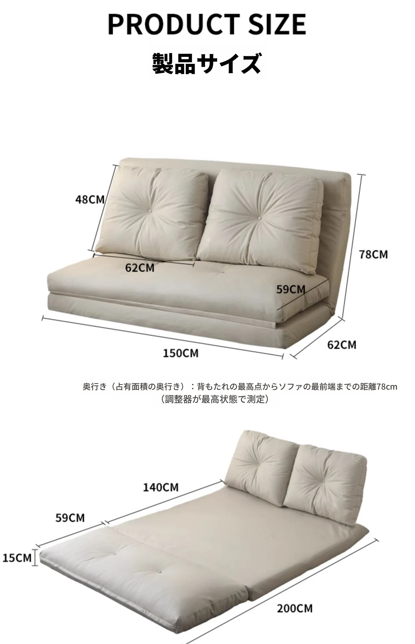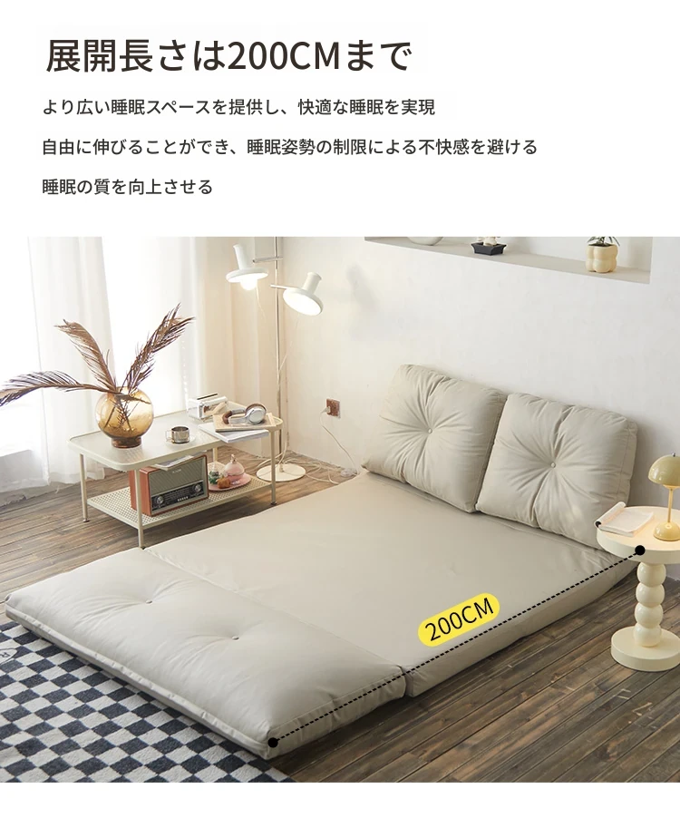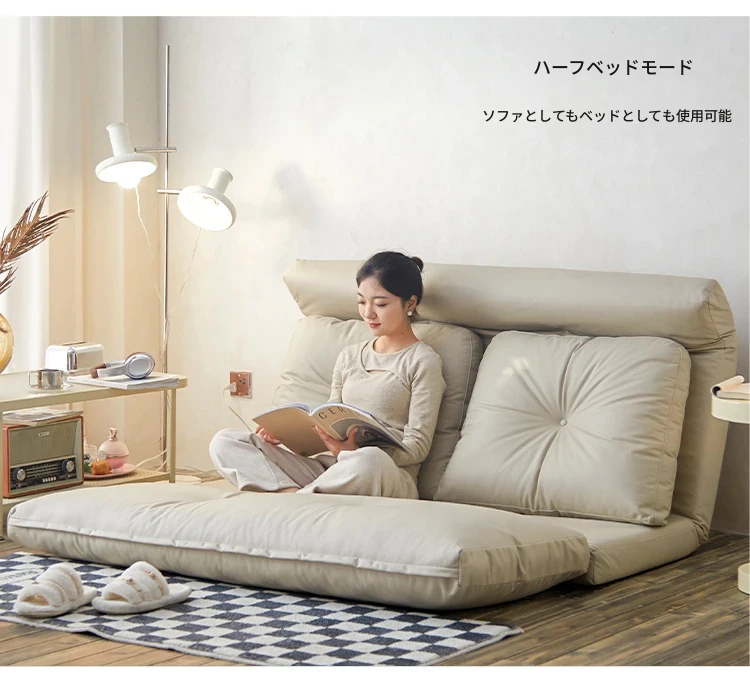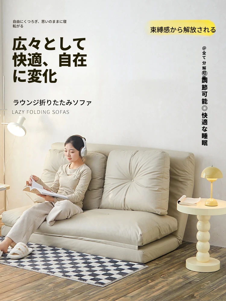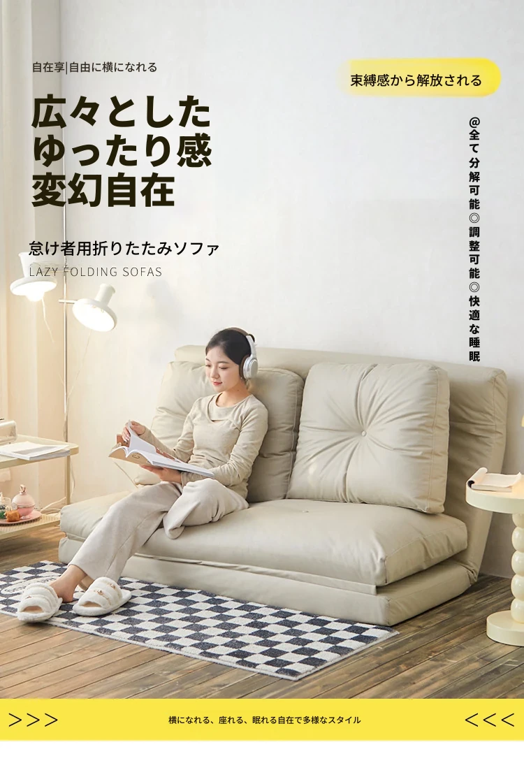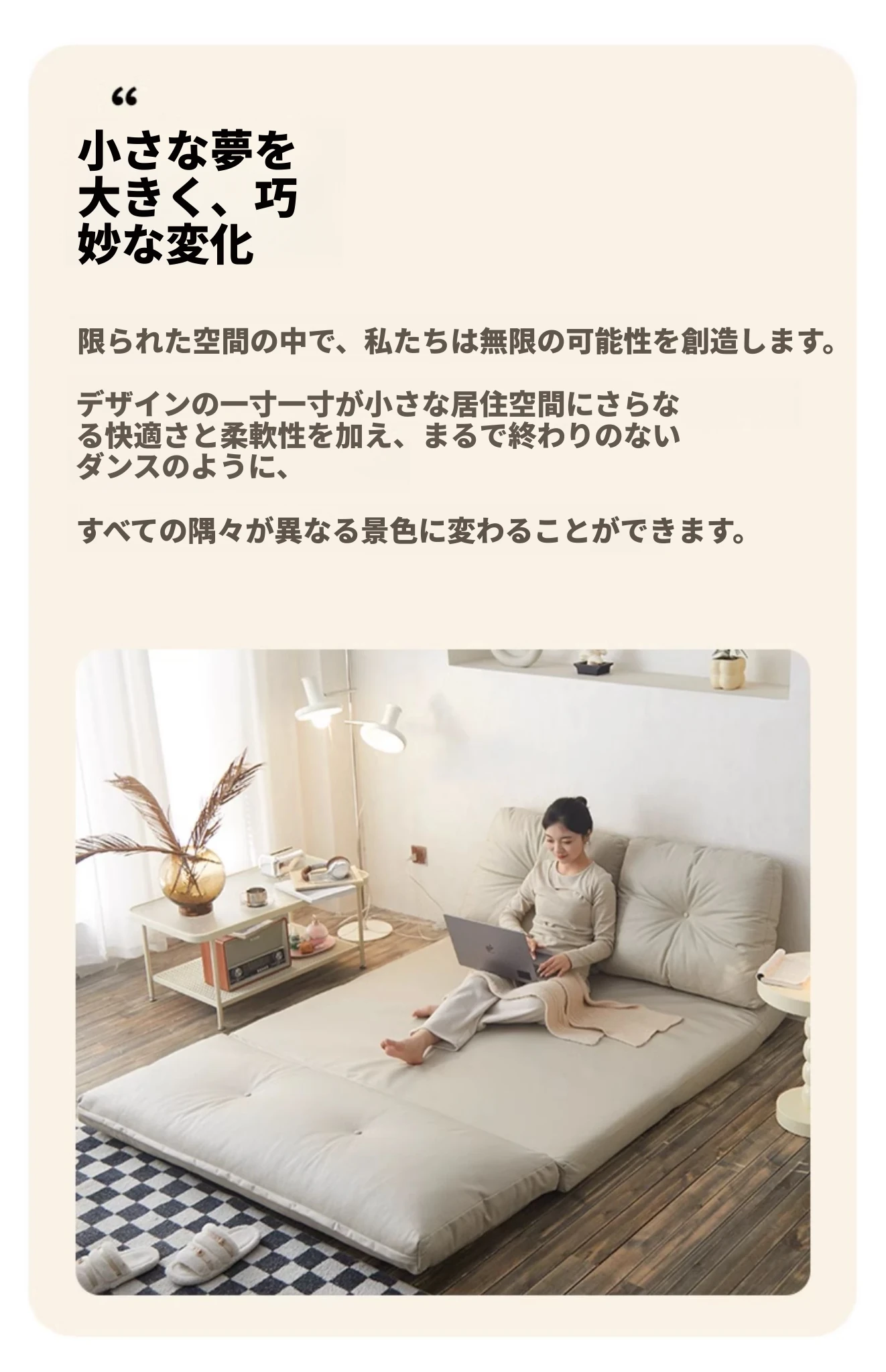リラックスできる折りたたみソファベッド|寝転びながらくつろげる、タタミスタイルの小型ソファ|狭い部屋にぴったりな二重機能|2024年新作!