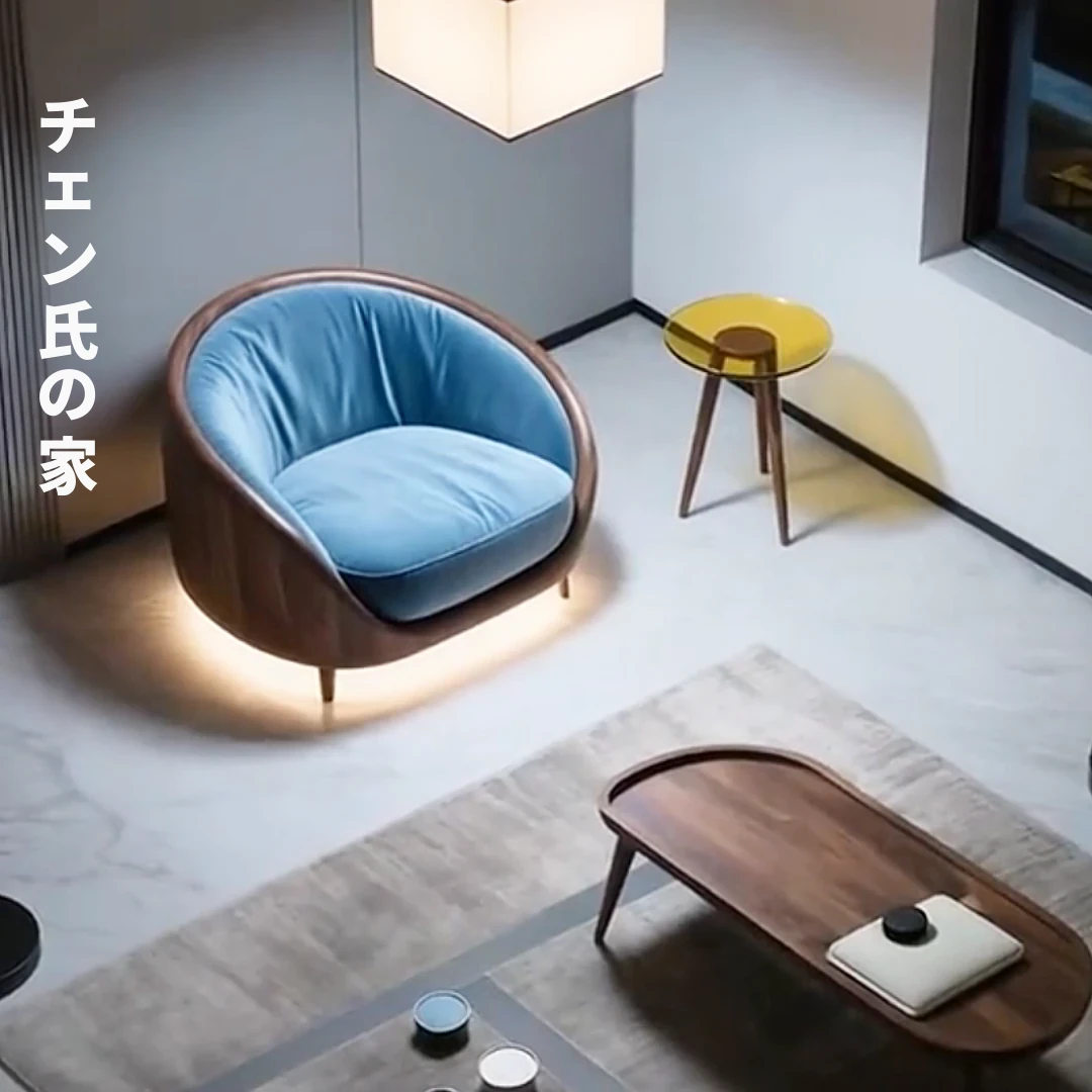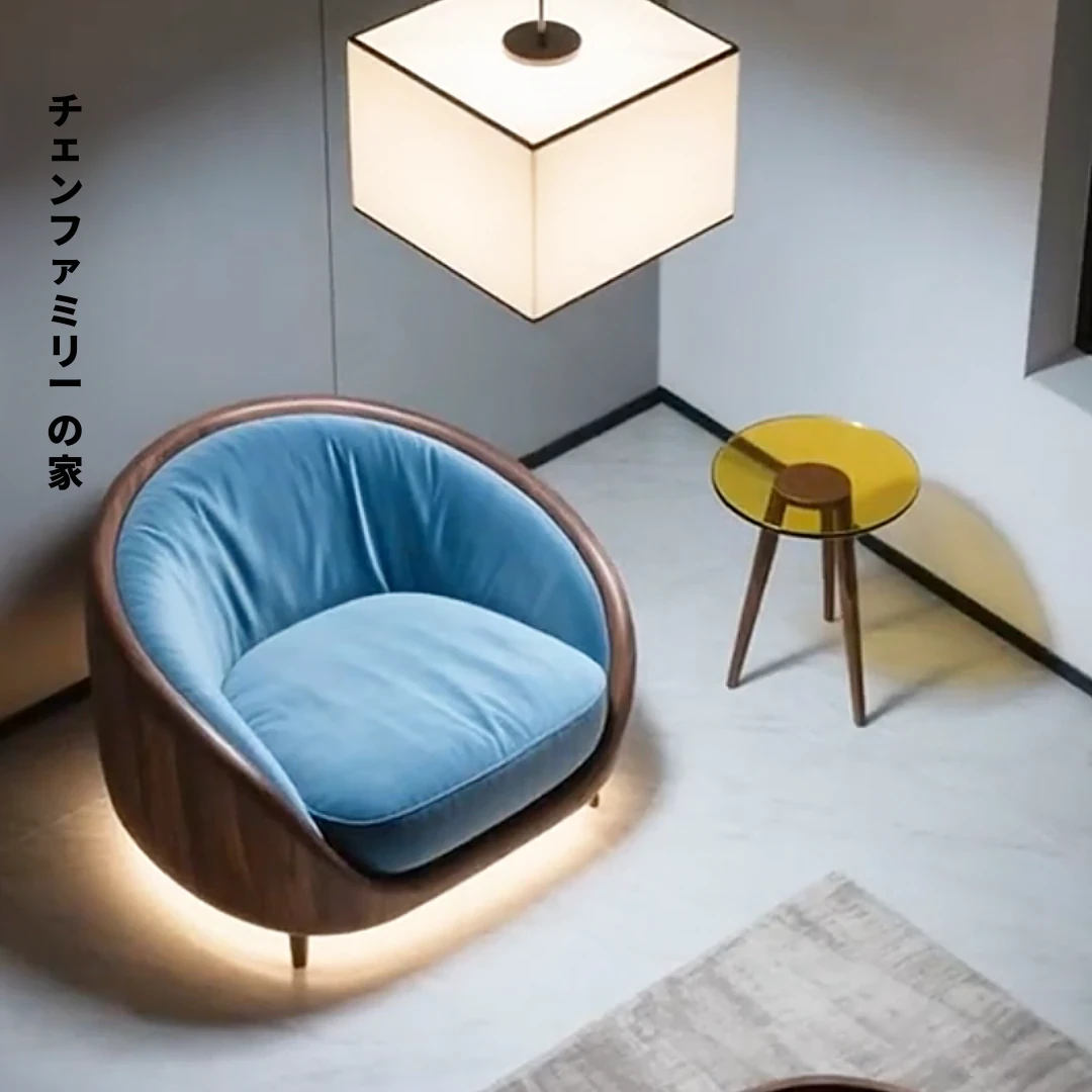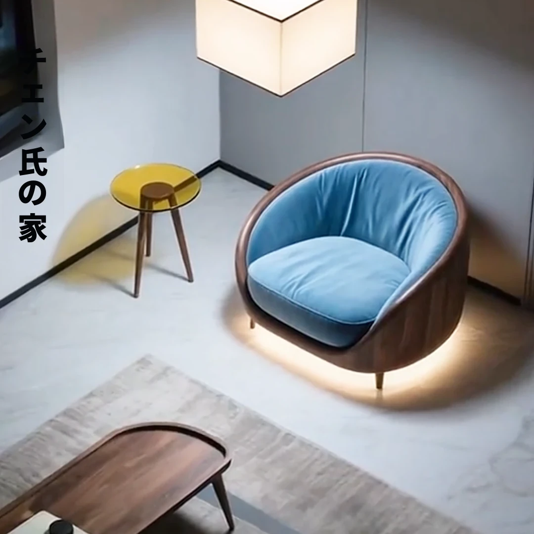 ウッドブラック木製シングルソファチェア2025新モデル、シンプルで現代的なデザイン!リラックスできるバルコニー用の快適なローチェアで、あなたの空間をスタイリッシュに演出します。