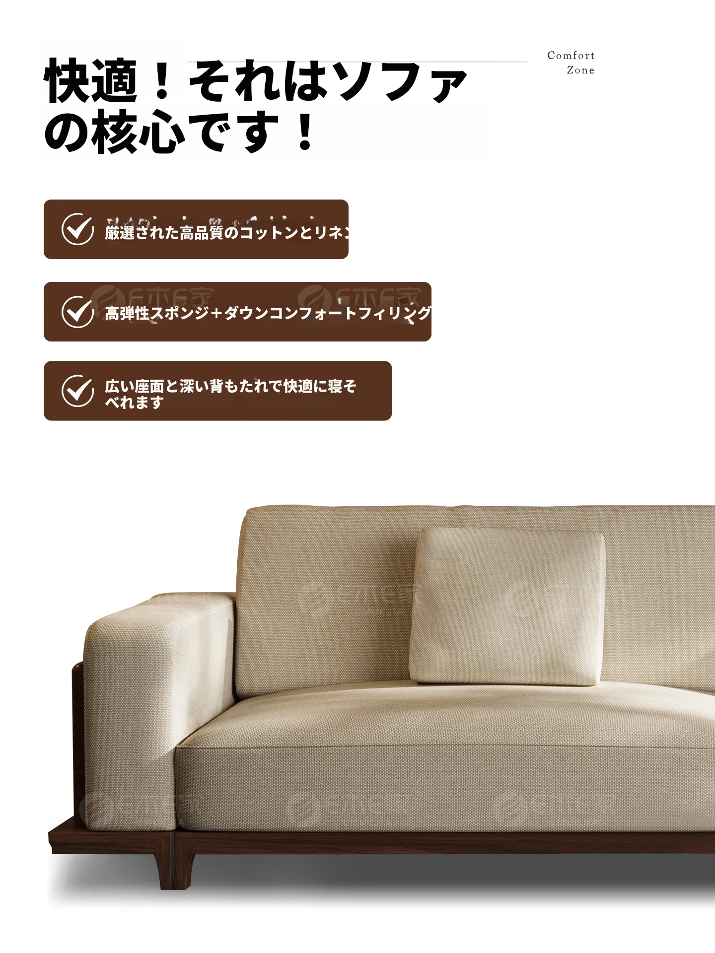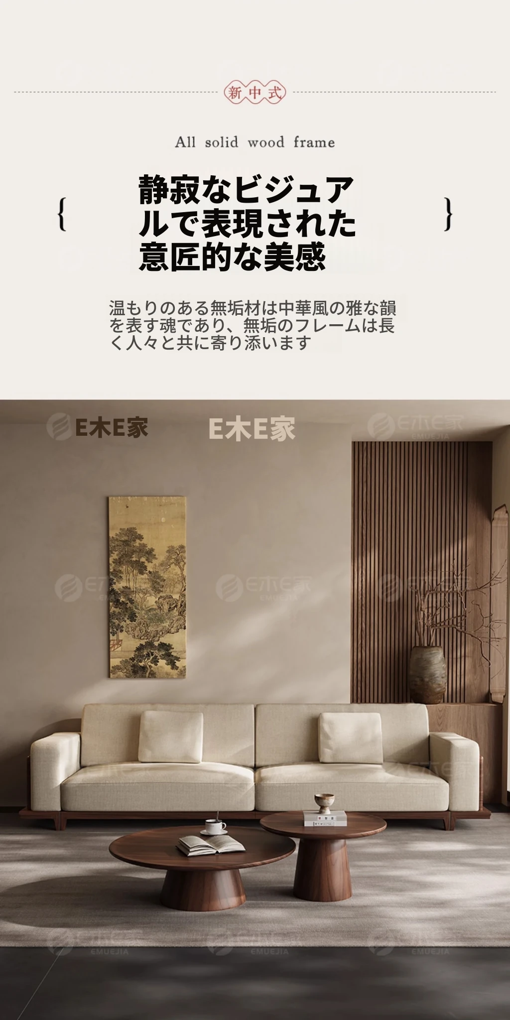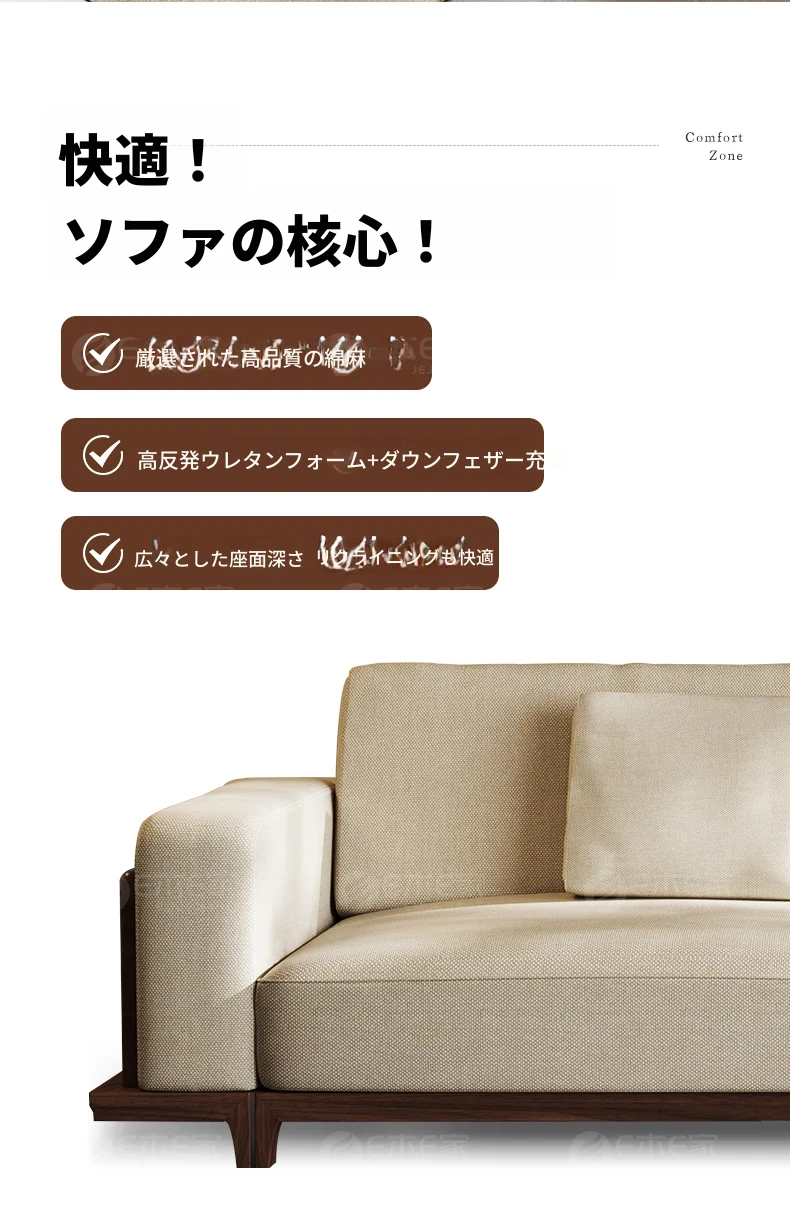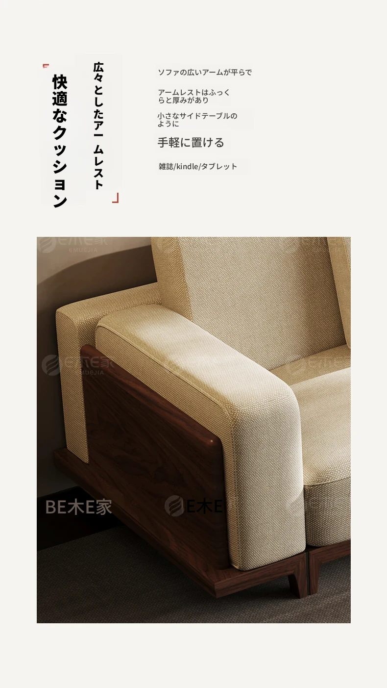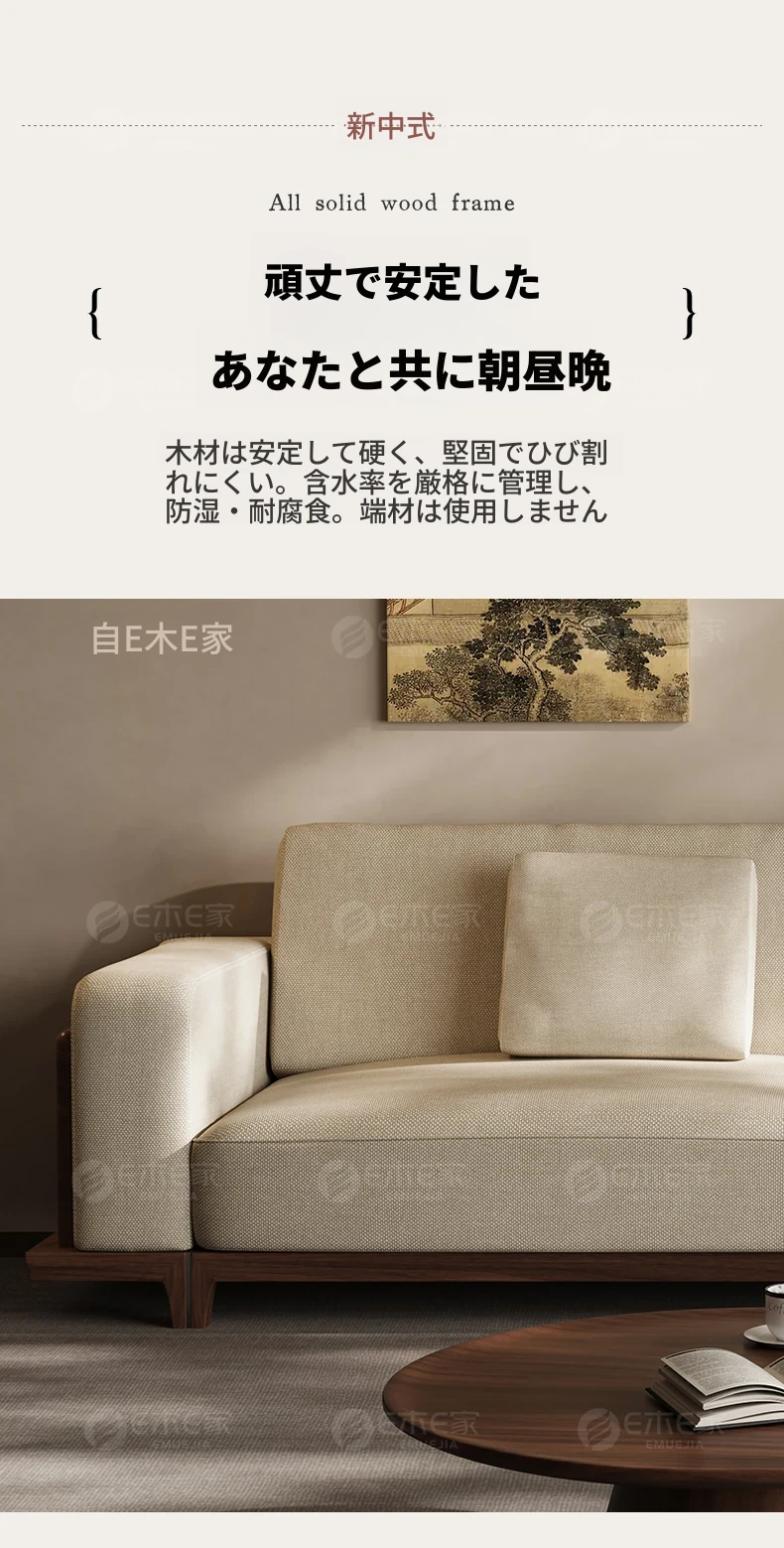 宋風美学のブラックウォールナット製コットンリネンソファー - Zenスタイルの直線デザイン、4人掛けの新中式ソファー、2025年新作登場!心安らぐひとときを提供します。