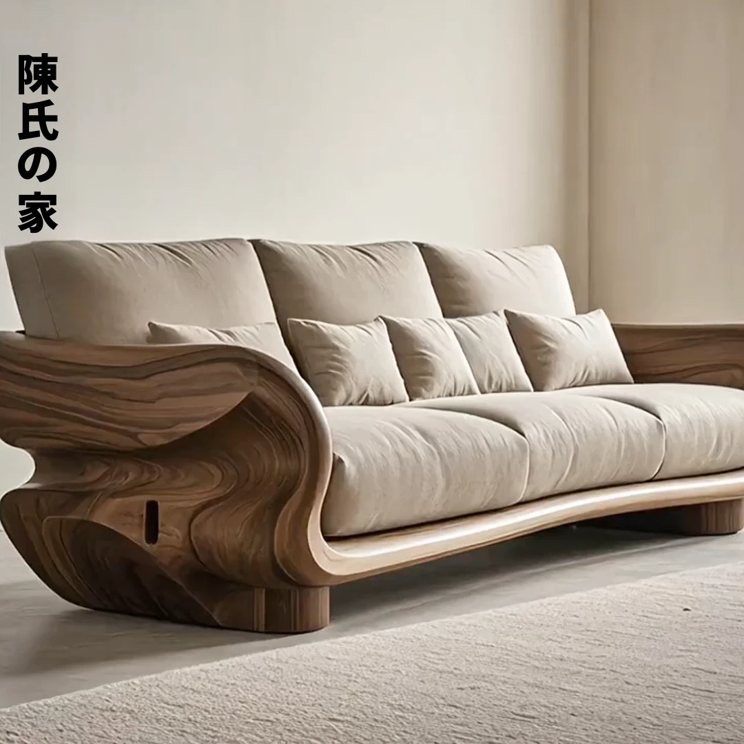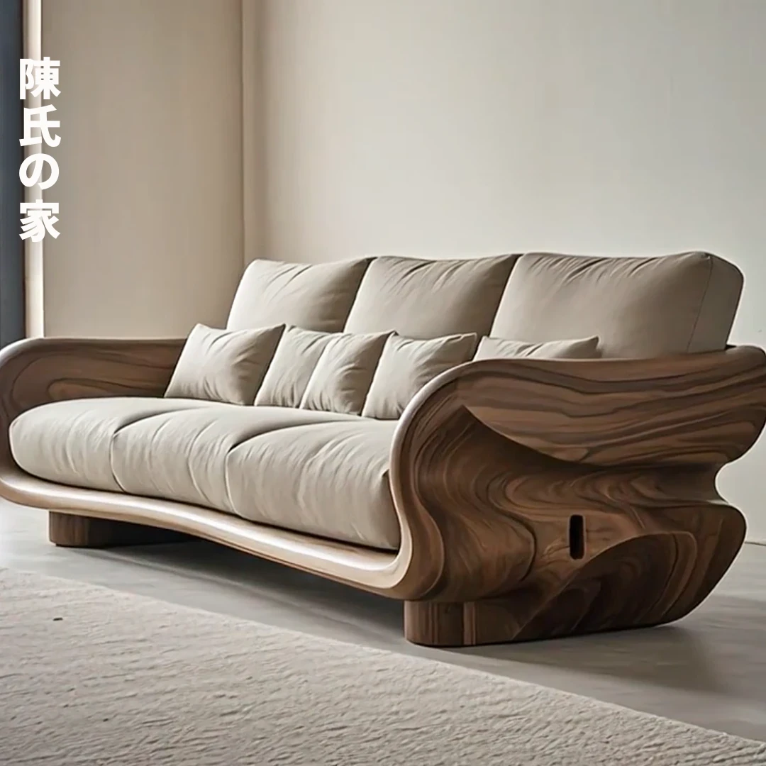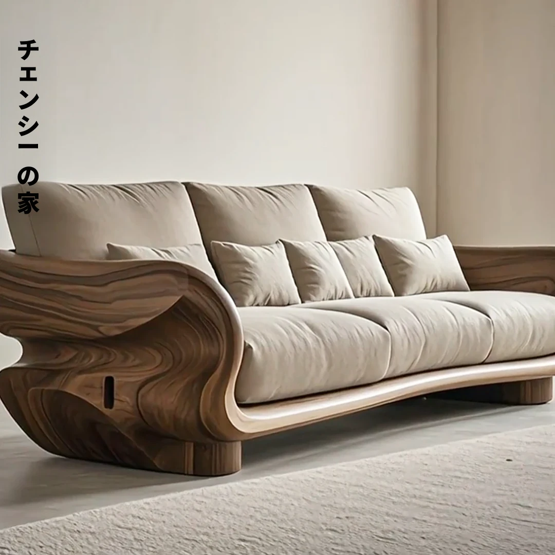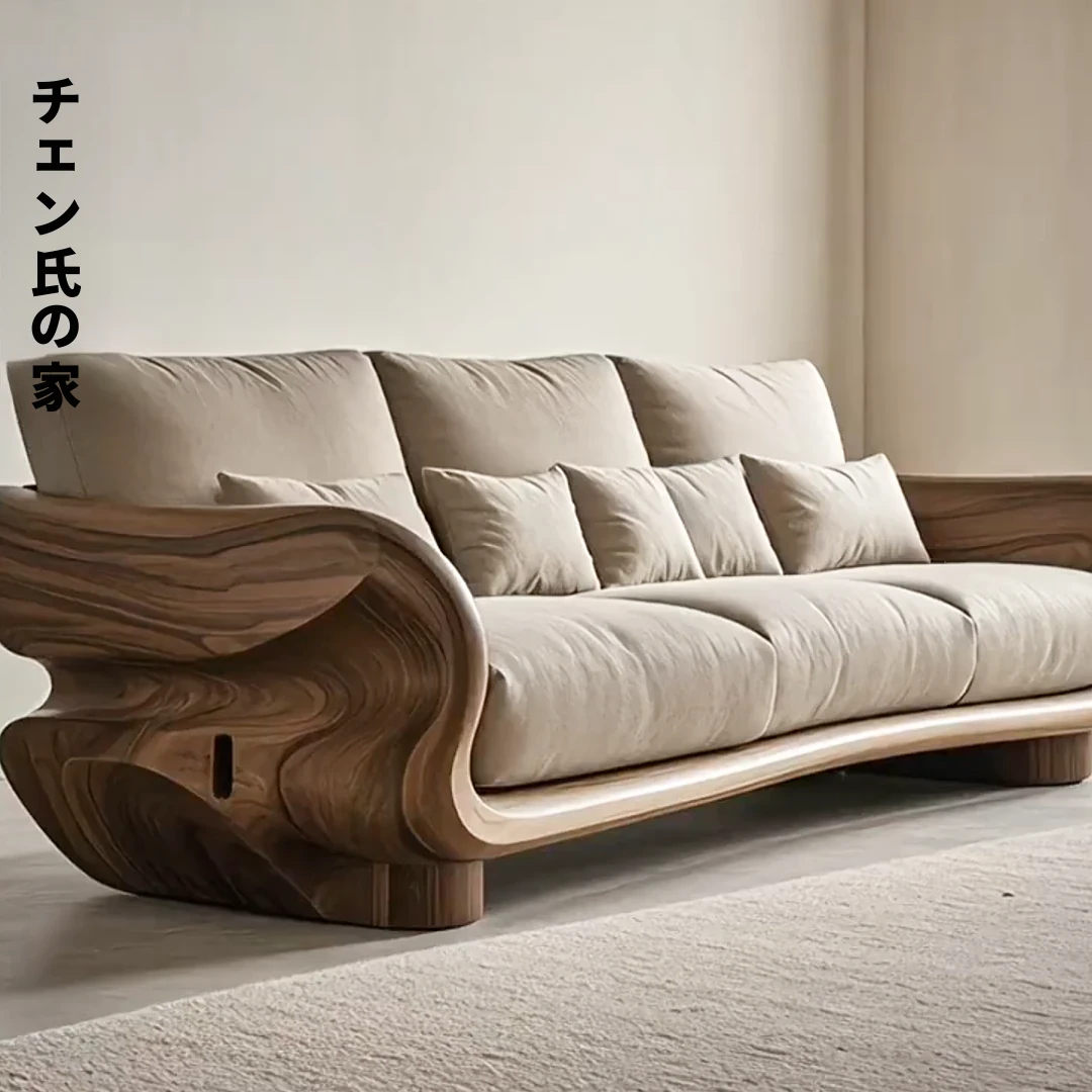 2025年新作!軽奢スタイル・小型サイズの新中式ウッディソファー。高級ウコン材を使用した家庭用リビングソファー、シンプルで洗練されたデザインでお部屋を格上げ!