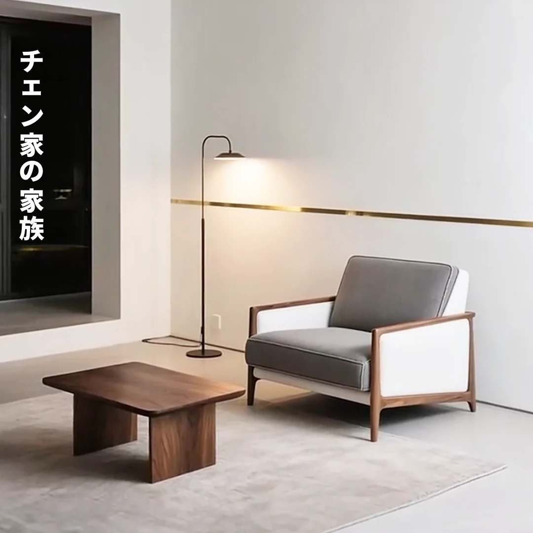 新中式ウルジン木無垢材ソファ モダンミニマリストリビング用 一人掛け 2025年版 極簡軽奢スタイルでおしゃれな空間を演出!