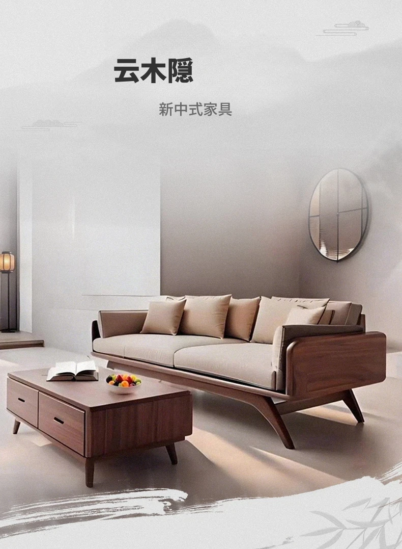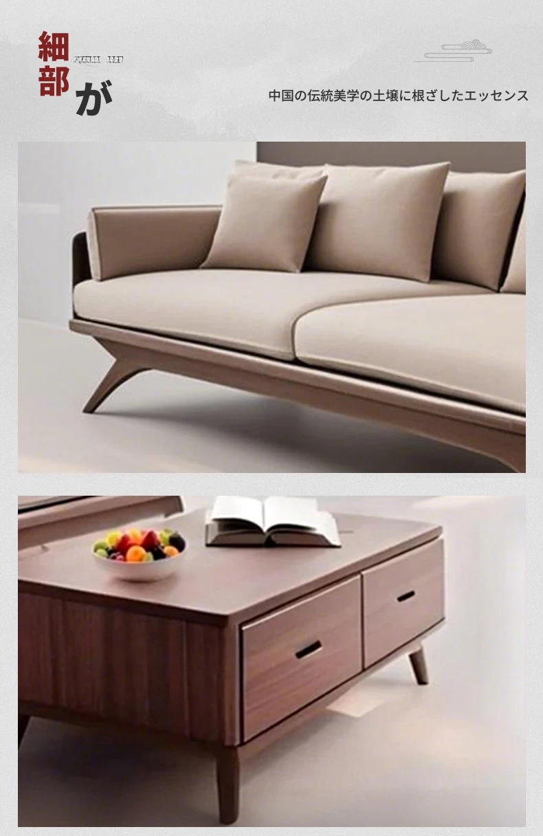 2025年新作!高級黒胡桃木使用の新中式実木ソファ。シンプルでスタイリッシュな布張りデザイン、リビングルームにぴったりの上質な家具。快適な座り心地と洗練された美しさを兼ね備えた一品!