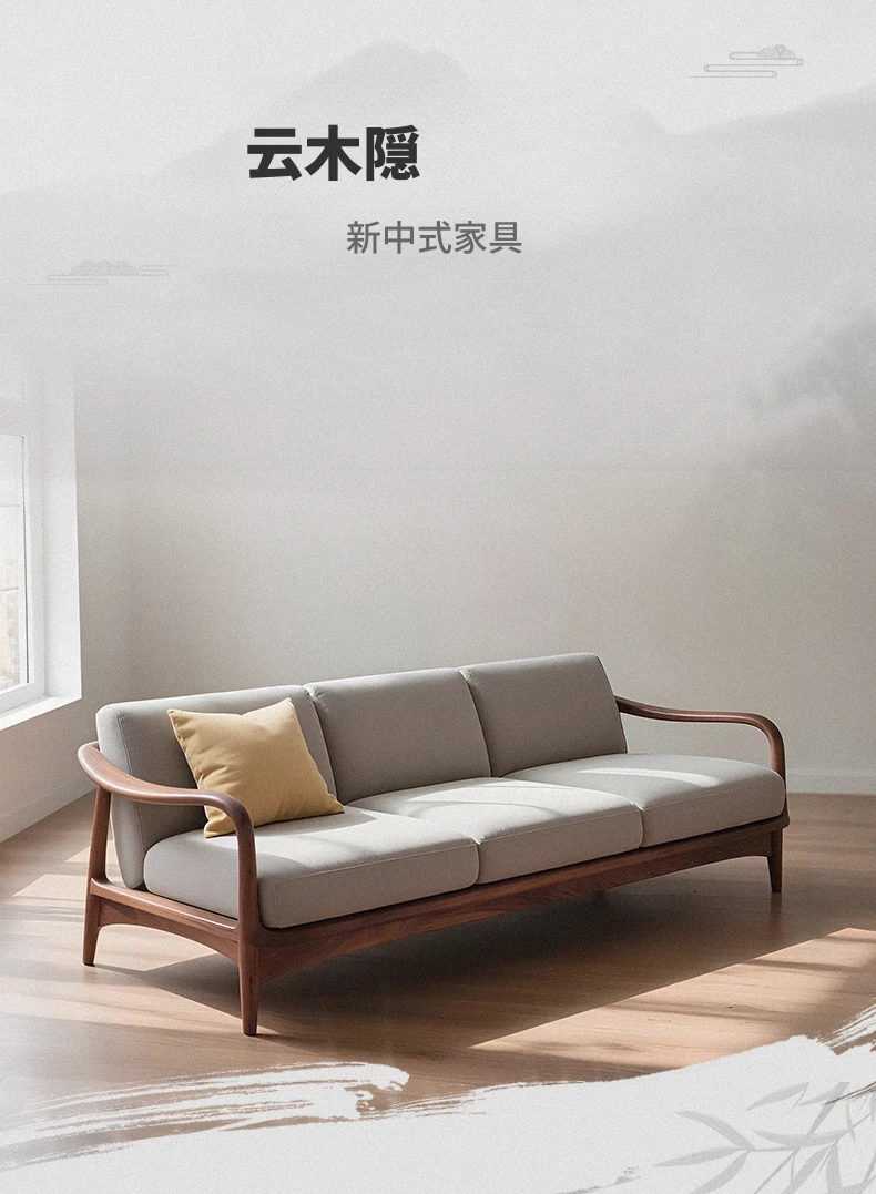 新中式ブラックウォールナット製シンプルソファ 2025年新作 イタリアンミニマリズムの本革3人掛け 小型住宅に最適!洗練されたデザインで、お部屋をスタイリッシュに演出します。