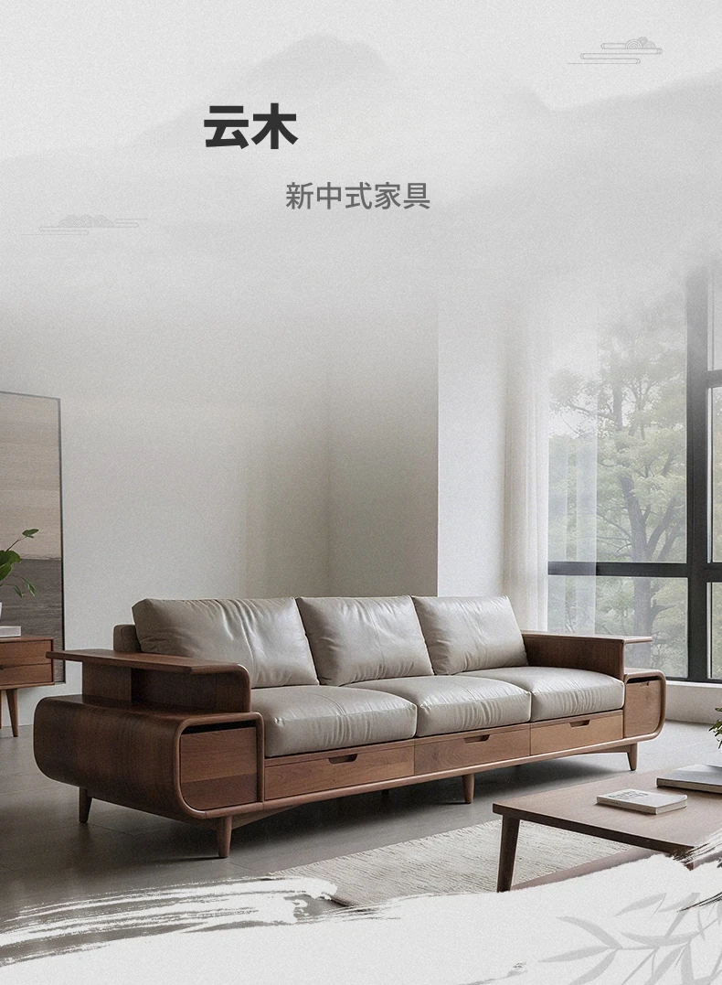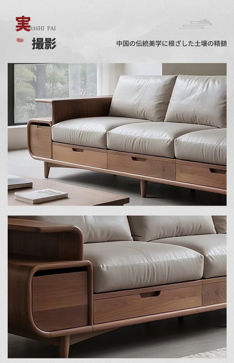 2025年新作!高級感溢れる中古風の無垢木ソファ。ブラックウォールナットデザインで、洗練されたリビングやサロンにぴったり。直列収納機能付きで、スタイリッシュさと実用性を両立!