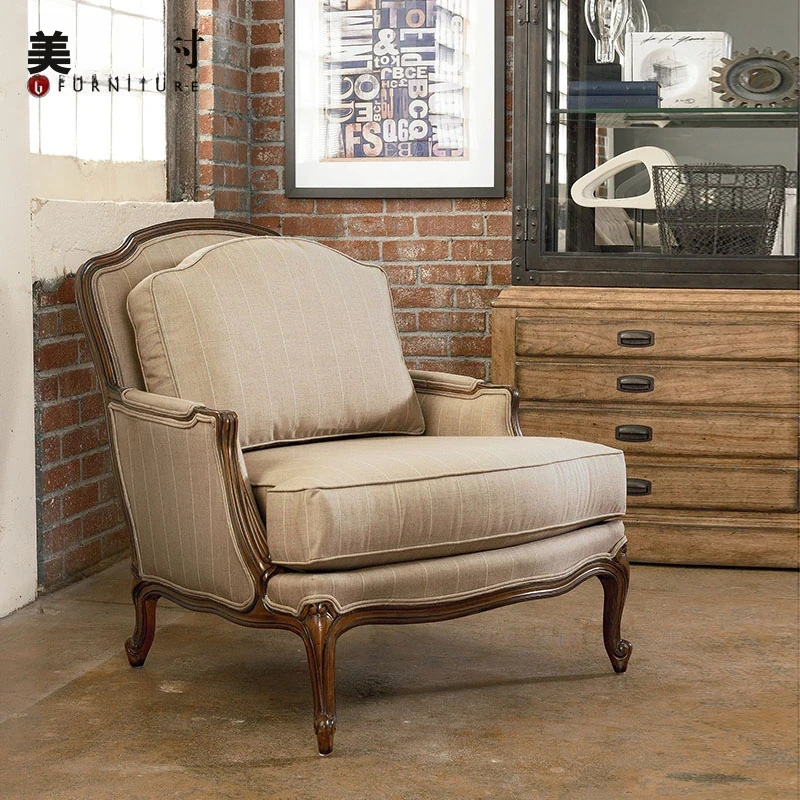 【オリジナル高級】デザイナー中古の無垢材使用、ホテルや民宿に最適な布製リラックス一人掛けソファ!快適な座り心地で、上質な空間を演出します。