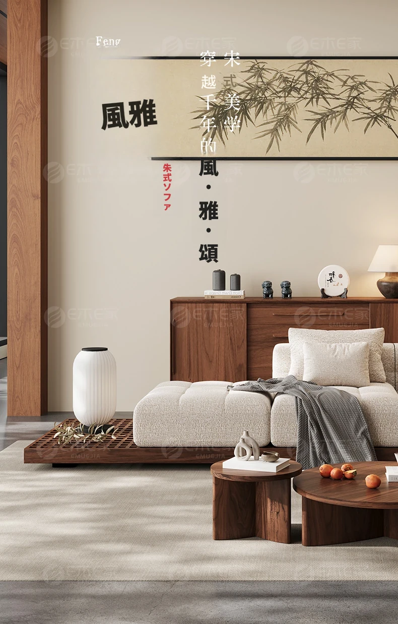【スタンダード版】4人掛け3.0M【高品質オーガニックコットンリネン】FAS級ブラックウォールナット【宋式美学】