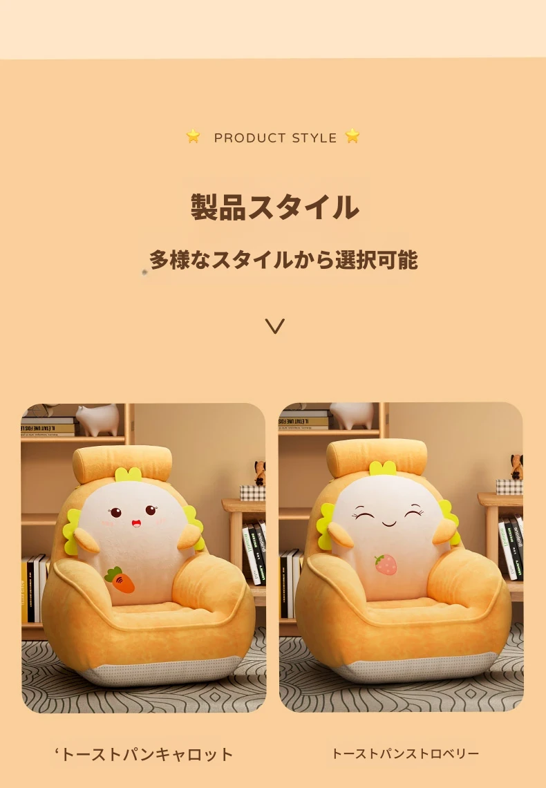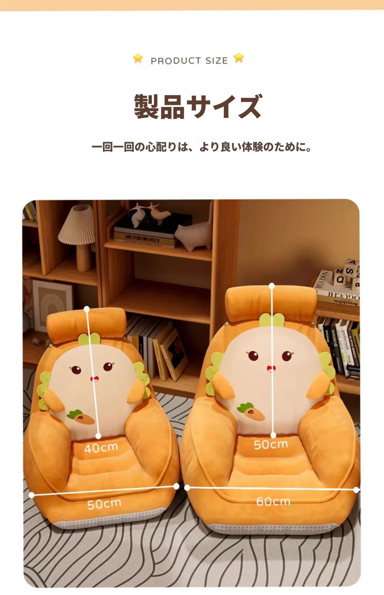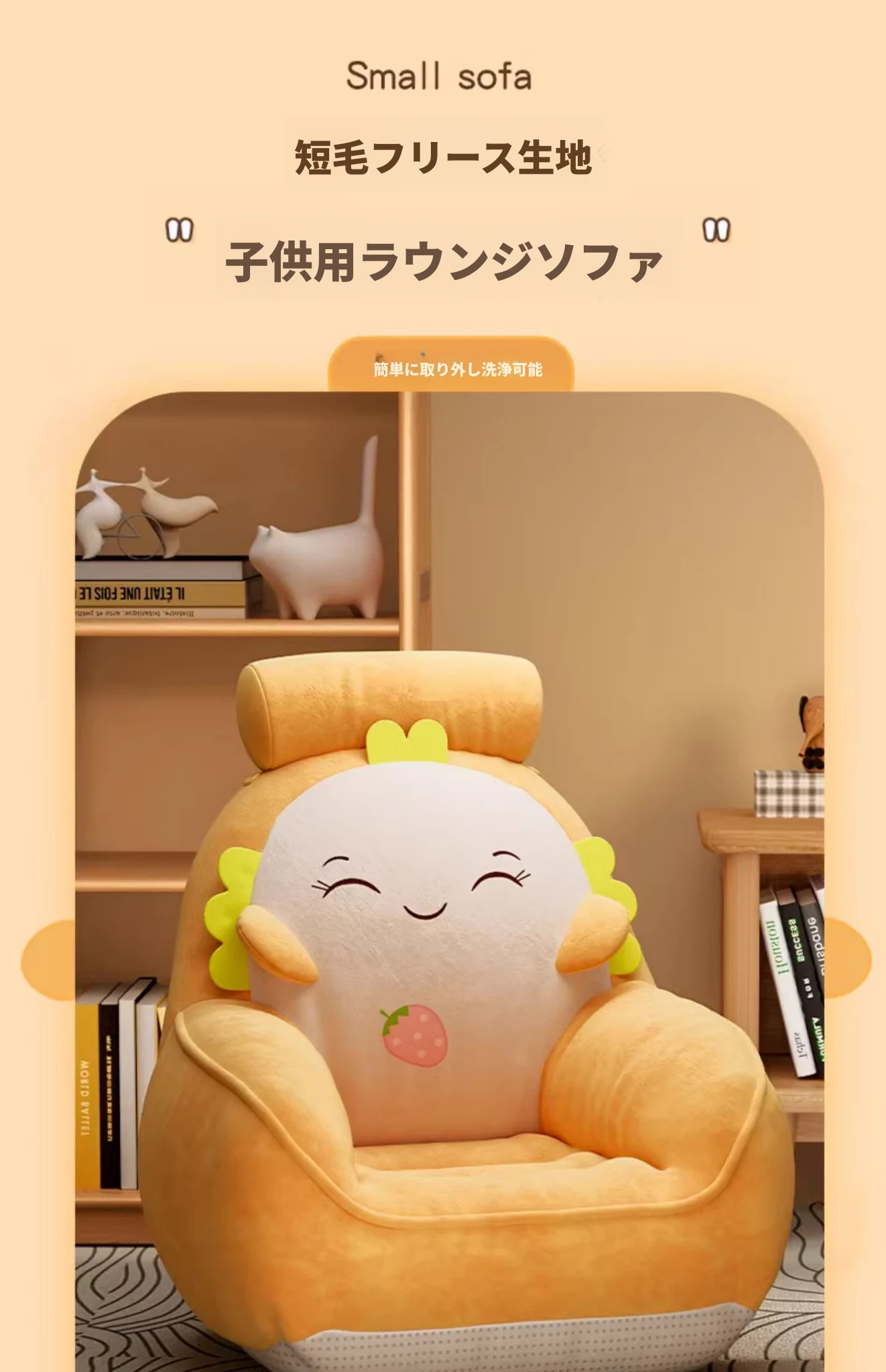 カラフルなキャラクターのリラックスソファ!バルコニーやリビングにぴったりの小型チェア。快適なクッションと背もたれで、読書やくつろぎタイムに最適。子供にも大人気のデザインで、お部屋を楽しく彩ります!