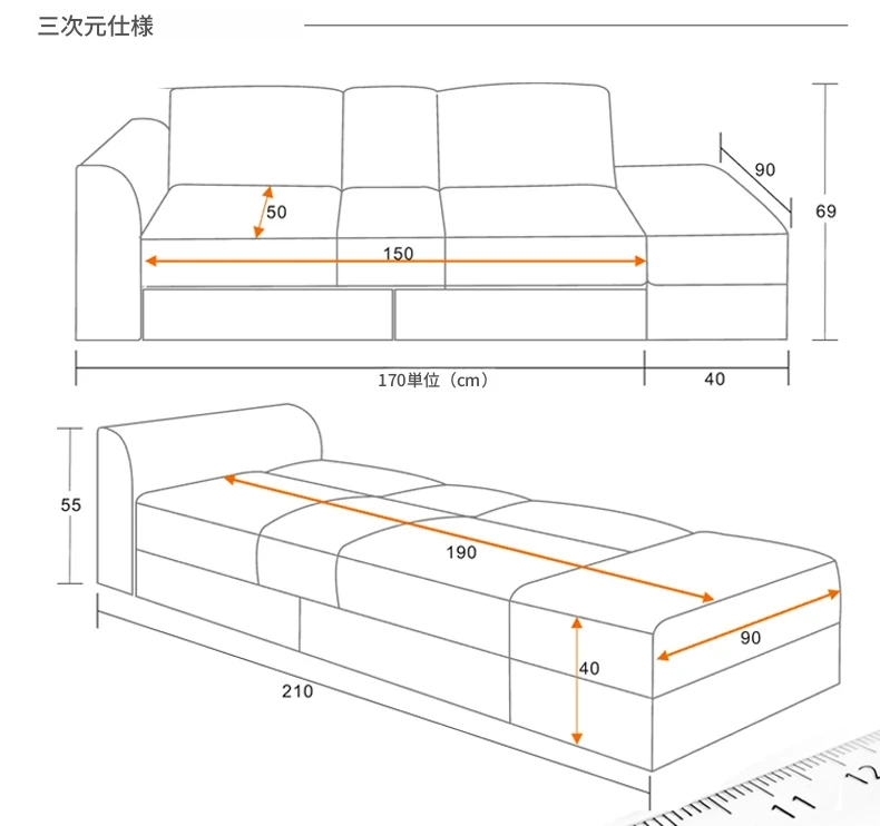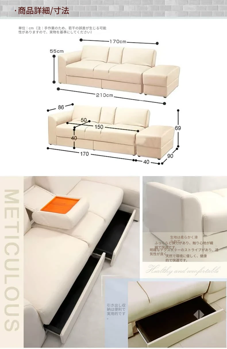 コンパクトで収納力抜群!モダンミニマリストの高箱タタミソファ - 引き出し式カウチで多機能、リビングに最適なスタイルを実現!