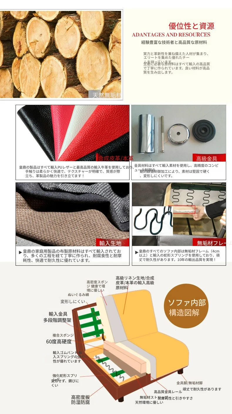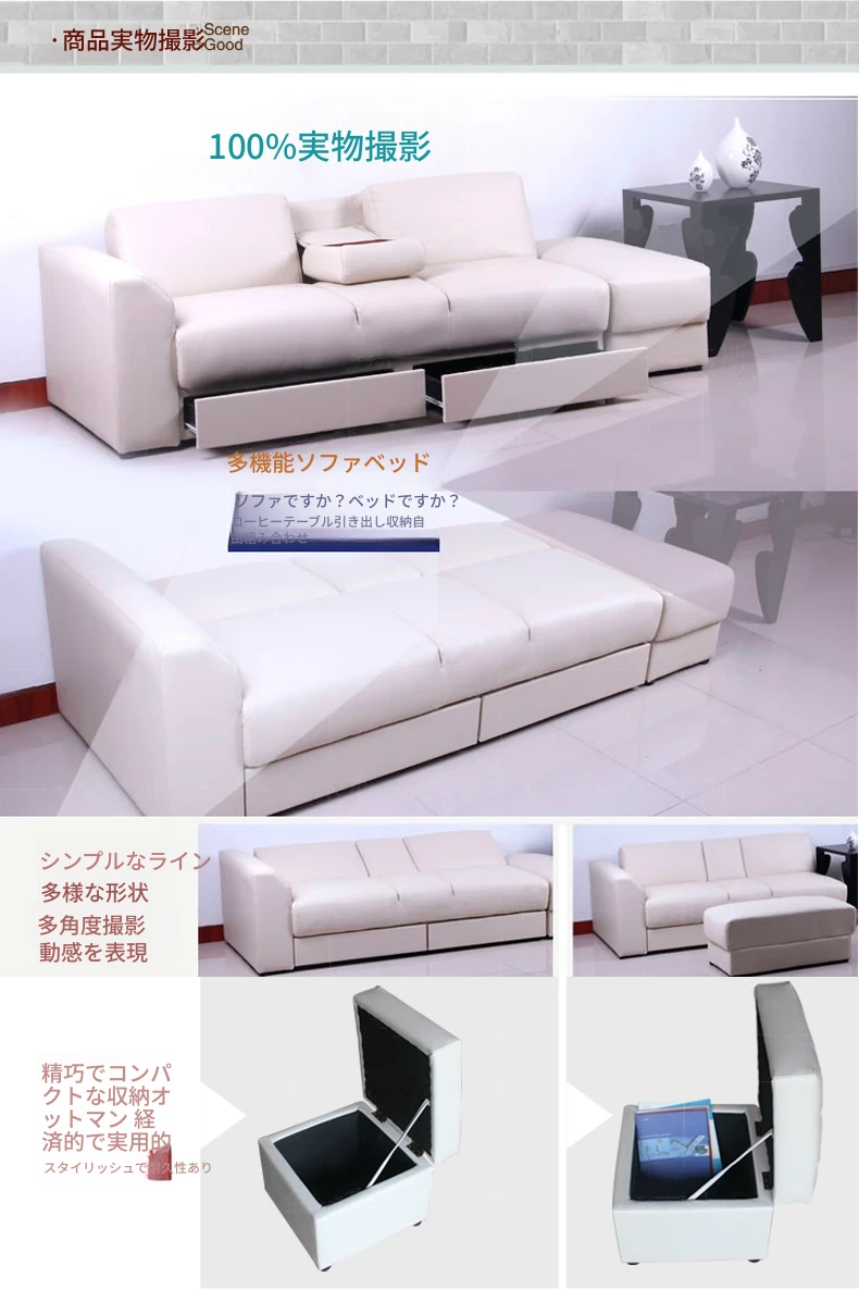 中華風のレザー折りたたみソファベッド、引き出し付きオットマン&コーヒーテーブルセット!小型・中型住居に最適、配送無料でお届けします!