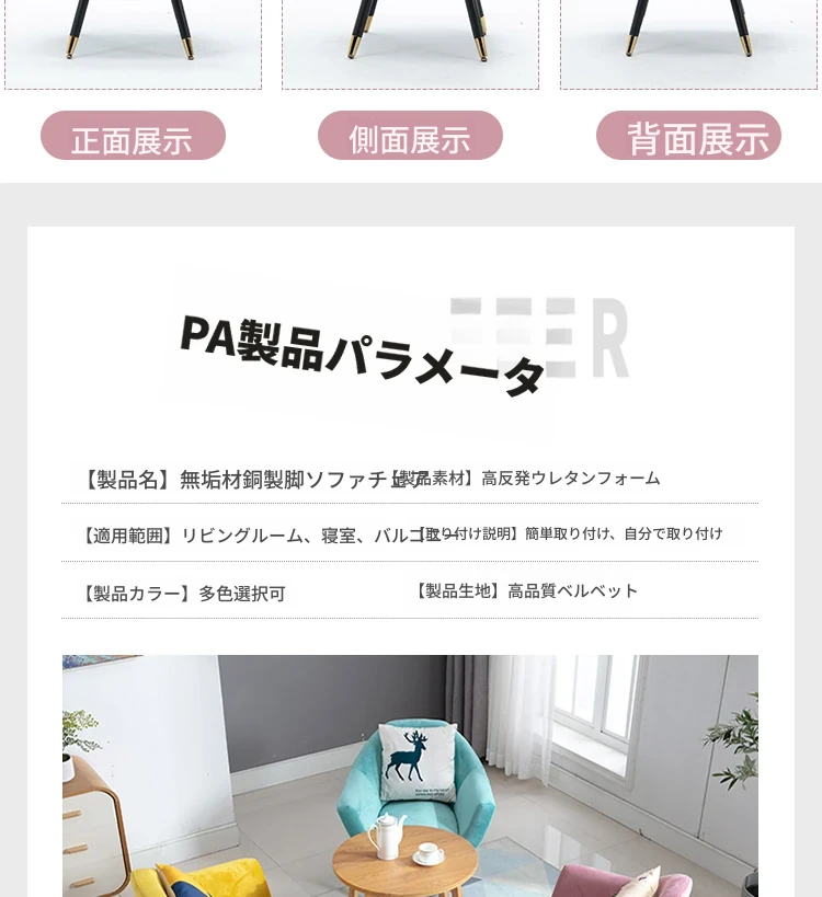 2椅子1テーブル+三脚色のコーヒーテーブル カラーコメント