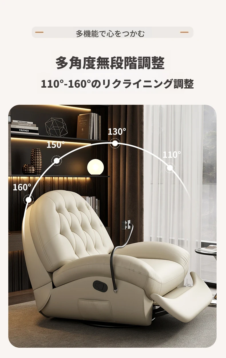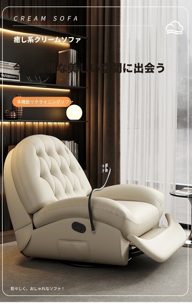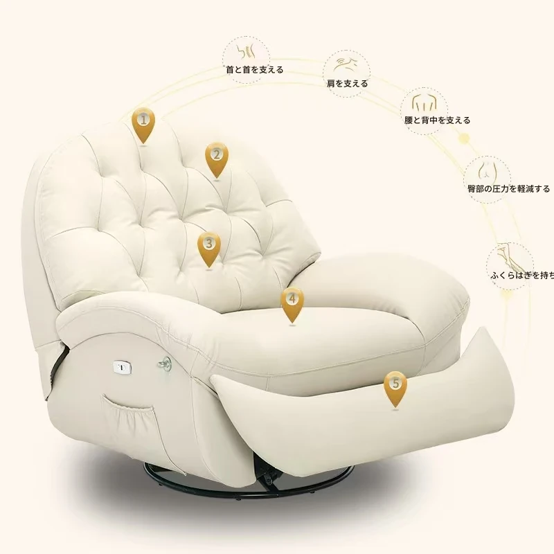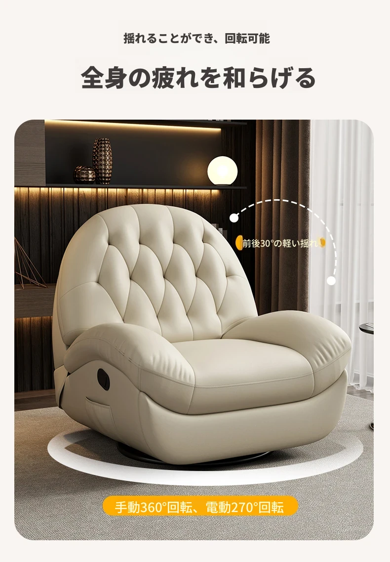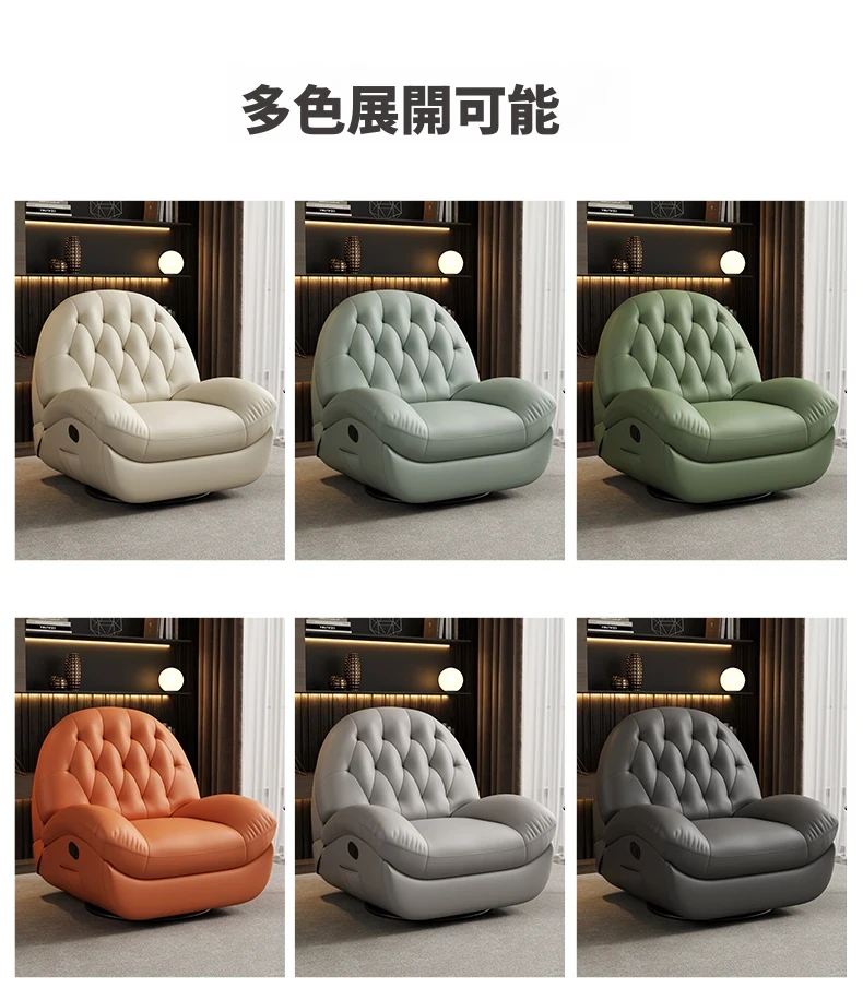 小スペースに最適!スマート一人用リクライニングソファ・宇宙型シェルチェア。ゆったりとくつろげる電動リクライニング機能付き、リビングにぴったりなラグジュアリーなデザイン。
