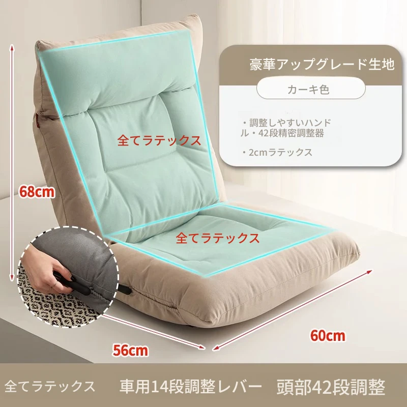 ラグジュアリーファイバーベロア カーキ色 ヘッド42段+腰部調整ハンドル+全身ラテックス