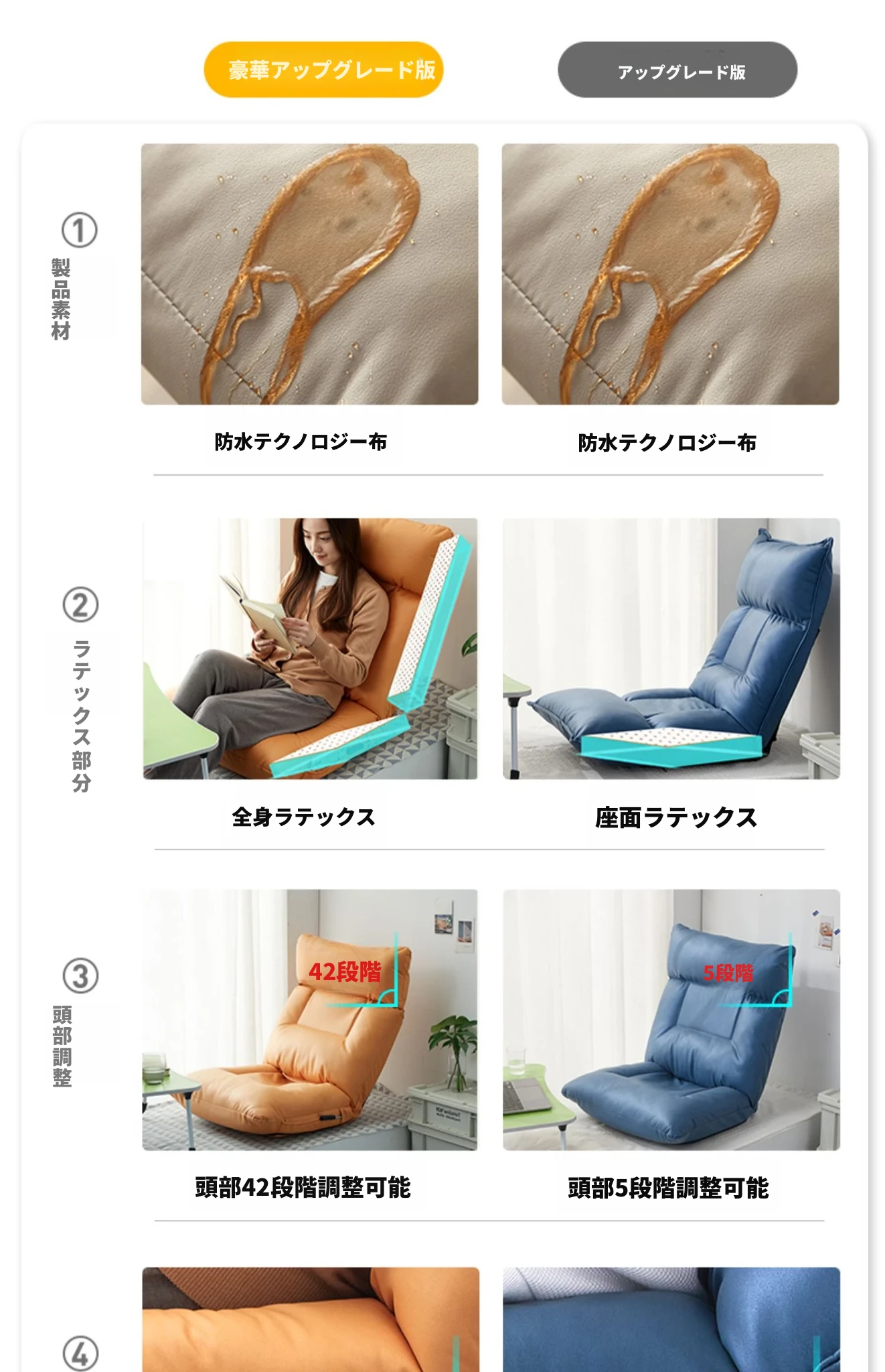 アップグレードウォッシャブルテクノロジー布 貴妃オレンジ ヘッド5段 腰42段+座部ラテックス
