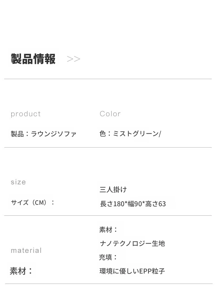 霧緑【3人用】テクノロジー布+フットレスト 配送入居